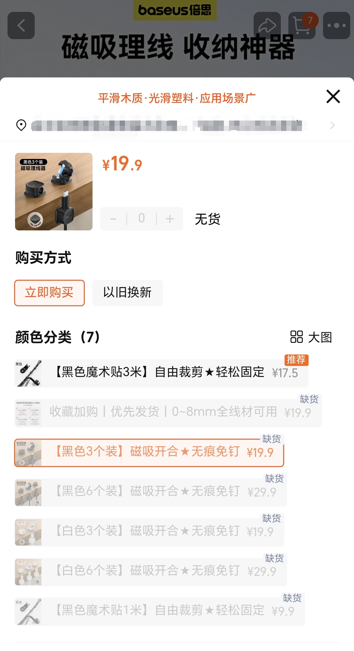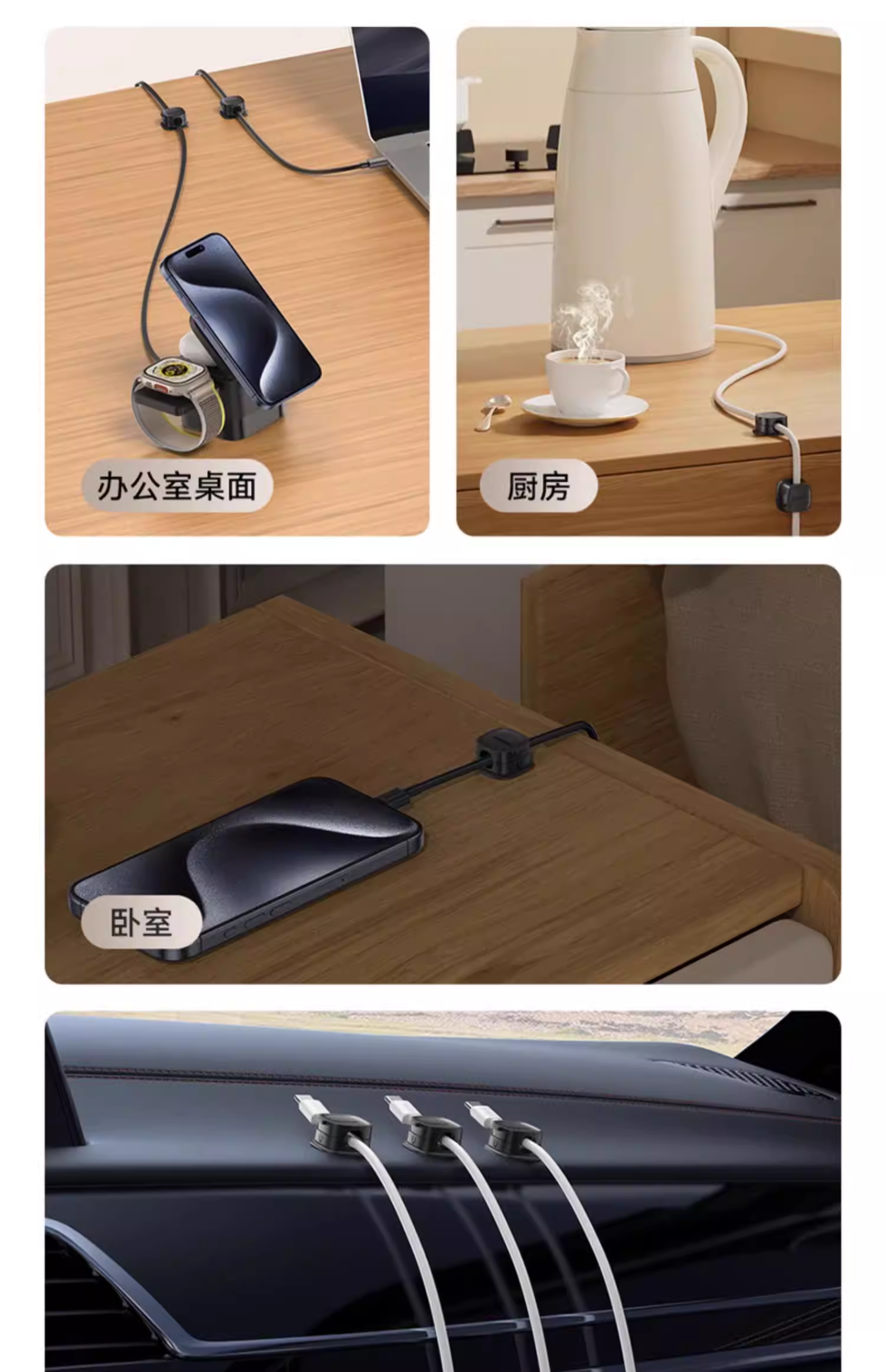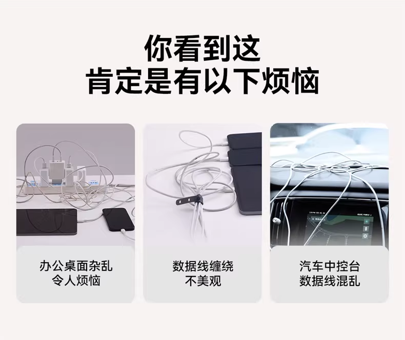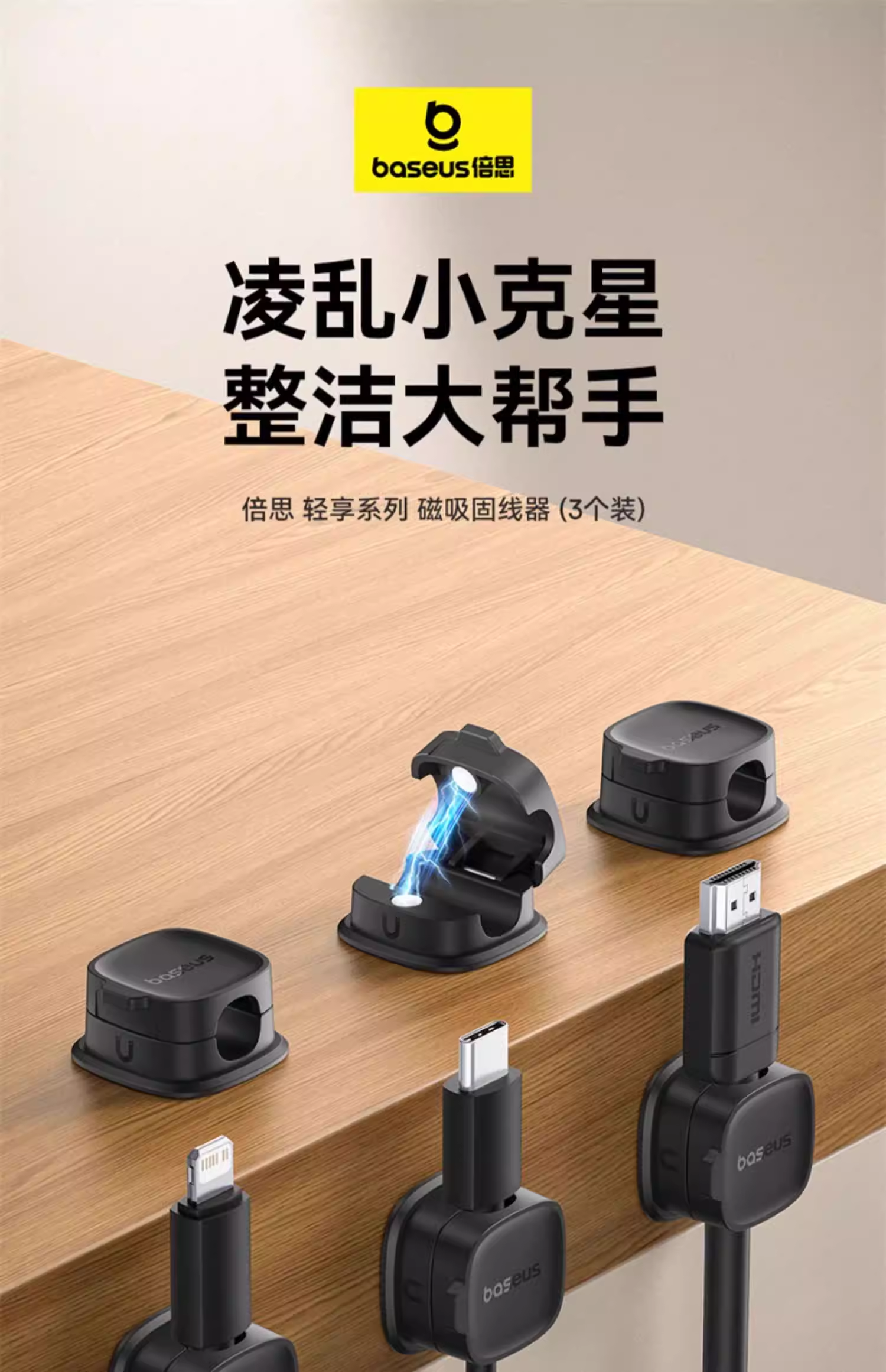 倍思 轻享系列磁吸固线器(3个装)桌面数据线磁吸固线器收纳整理