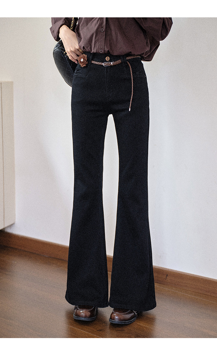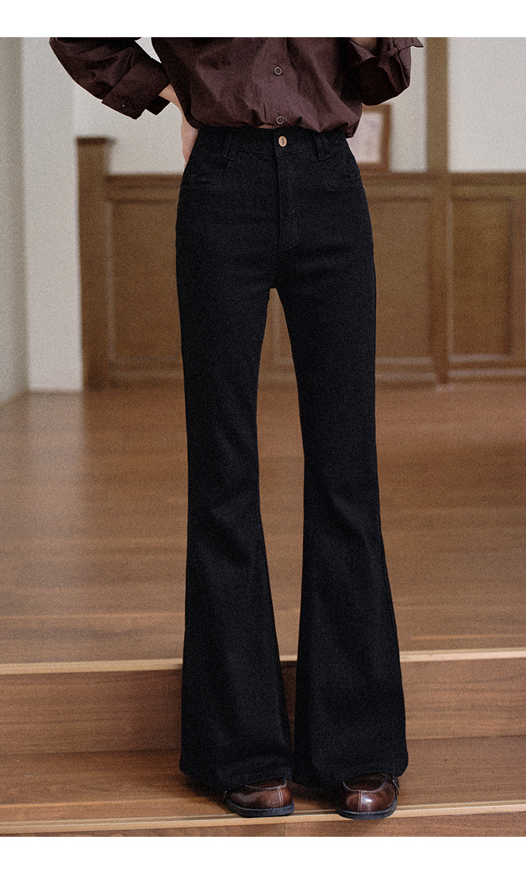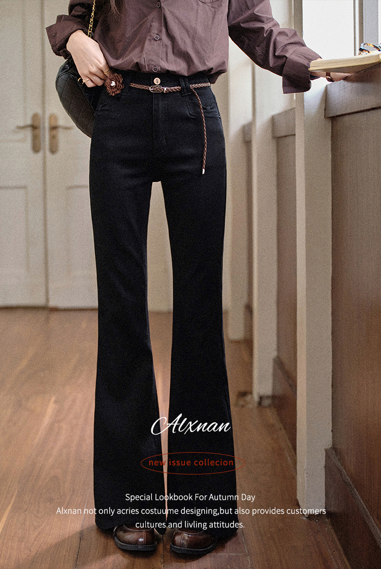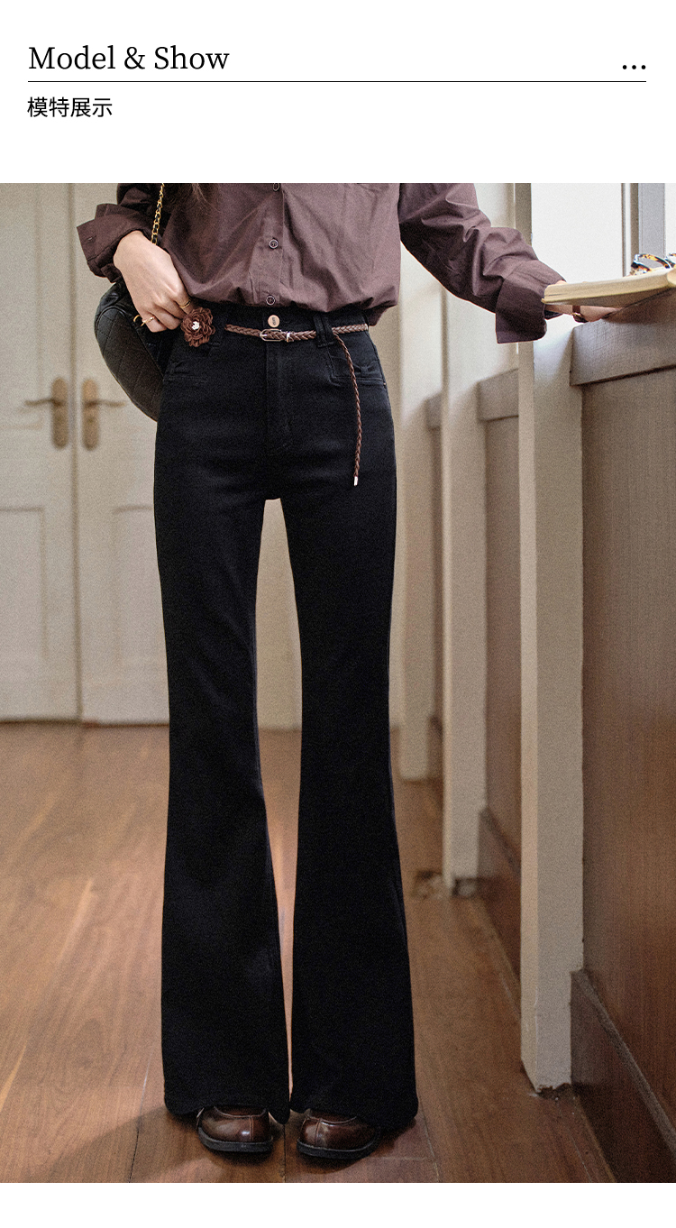 鹿向南「罗曼油画」黑色高腰微喇牛仔裤女初秋修身显瘦直筒长裤子
