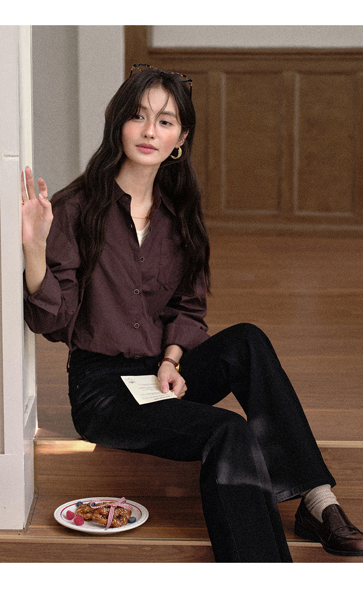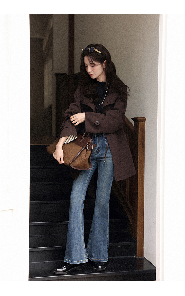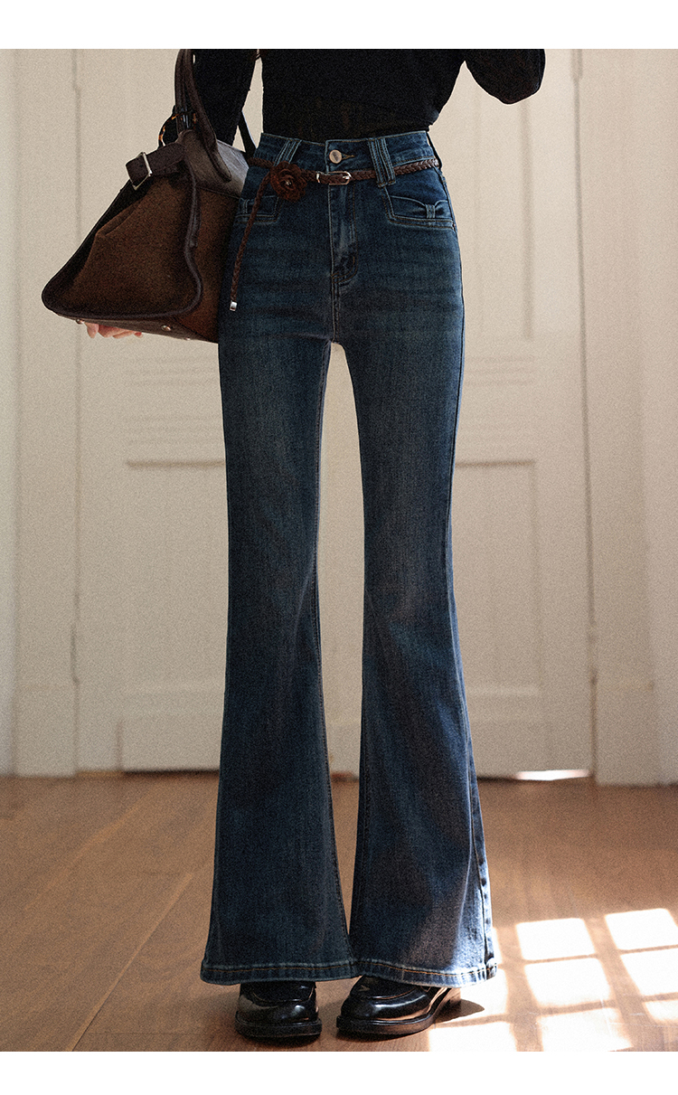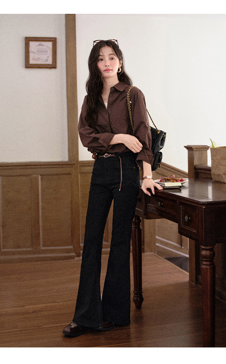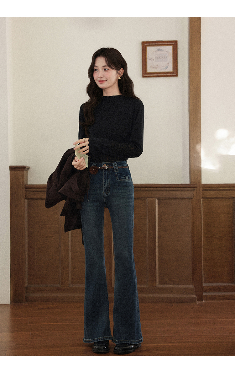 鹿向南「罗曼油画」黑色高腰微喇牛仔裤女初秋修身显瘦直筒长裤子