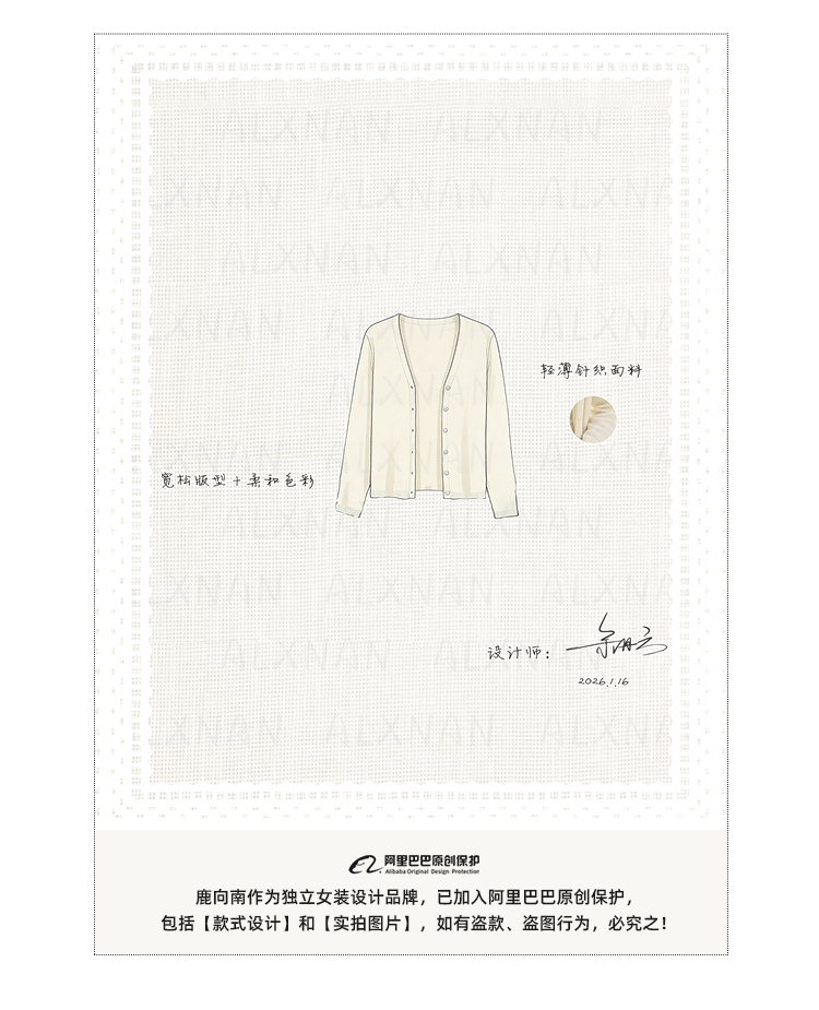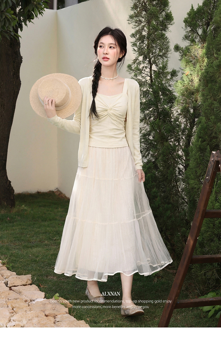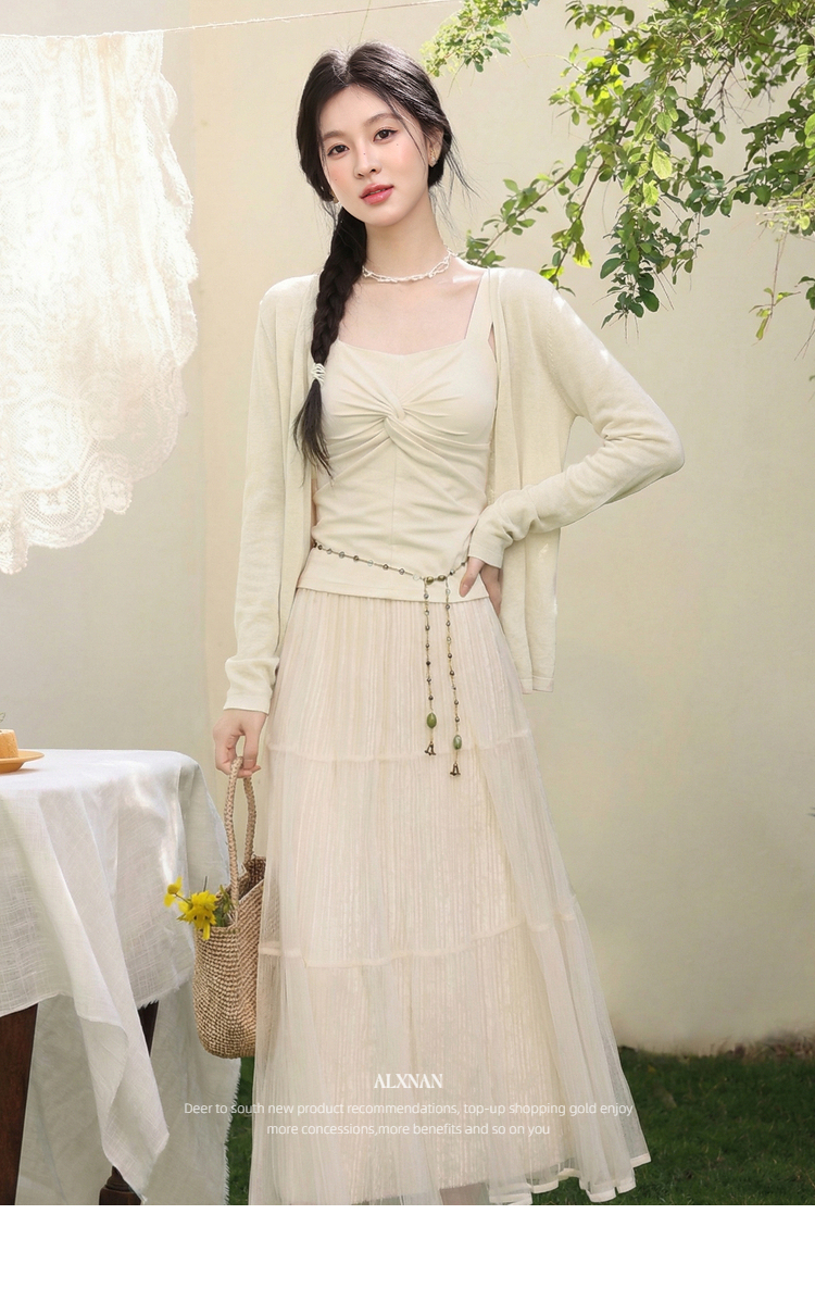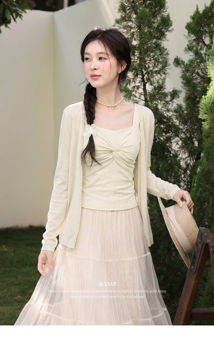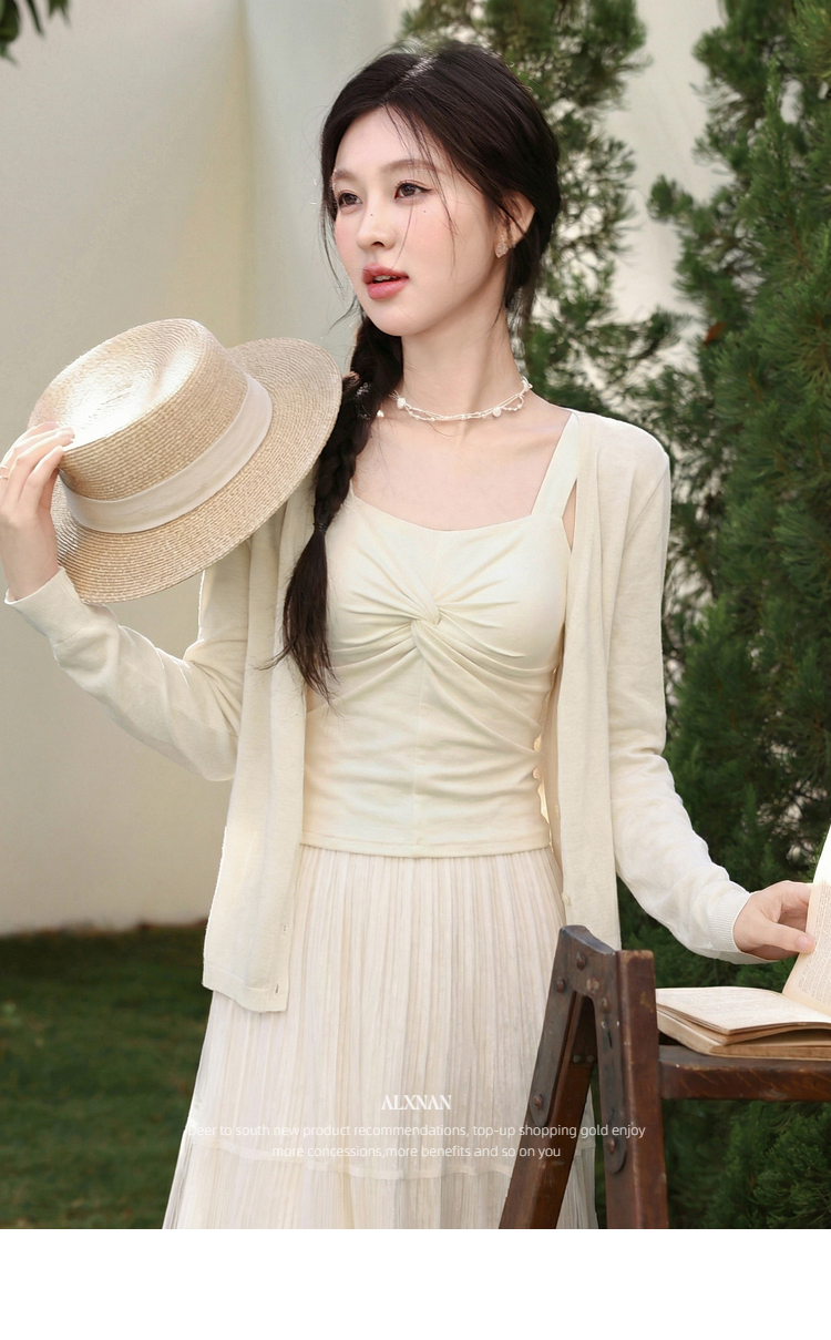 鹿向南「云柔春序」杏色针织开衫女春新款短款无袖背心休闲裤套装