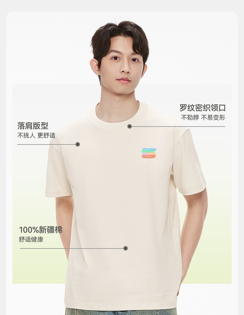 「棉的美学」纯色圆领T恤纯棉彩虹印花上衣休闲内搭宽松短袖多色系