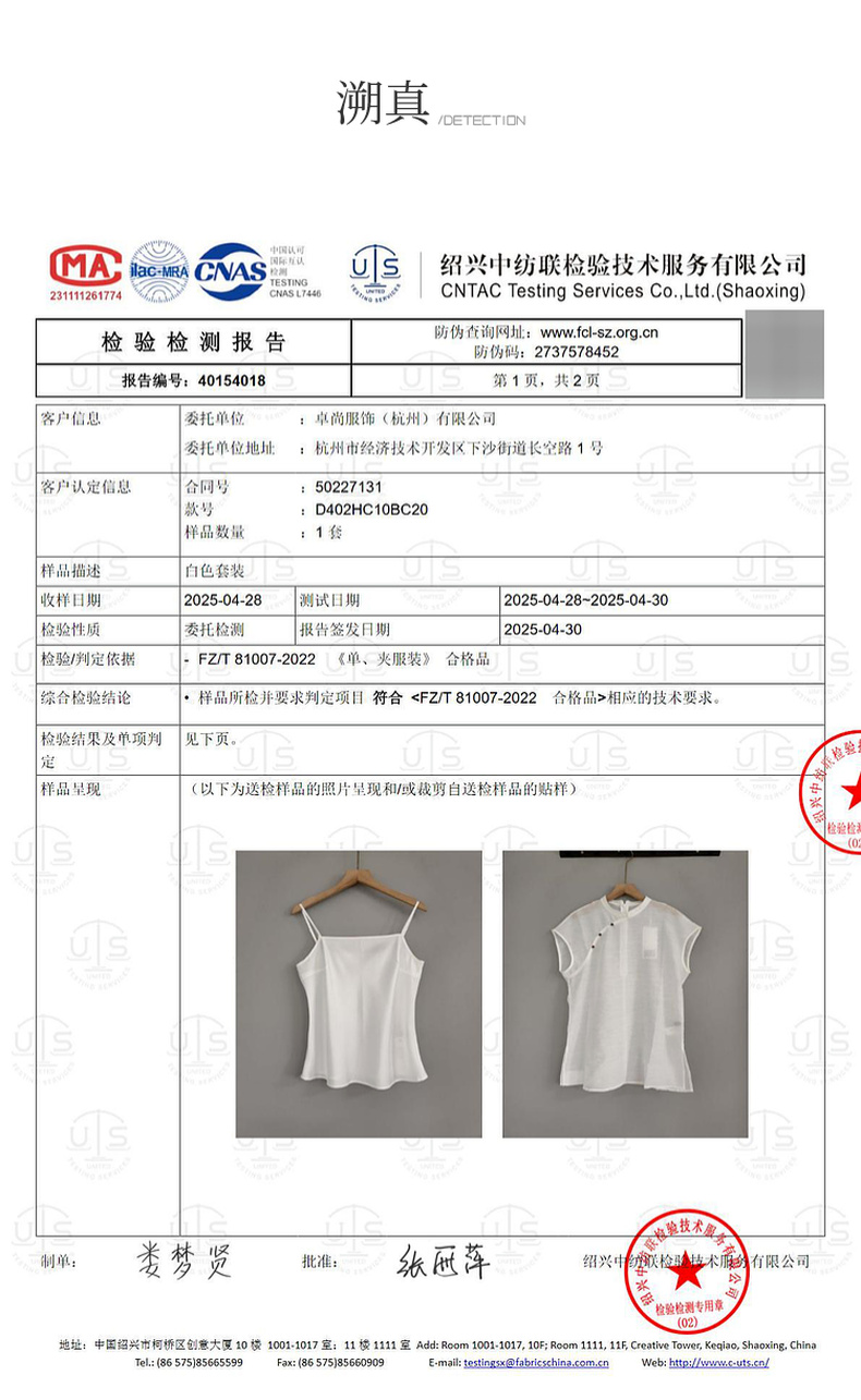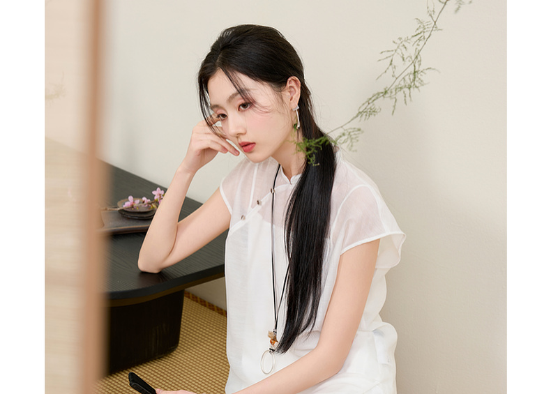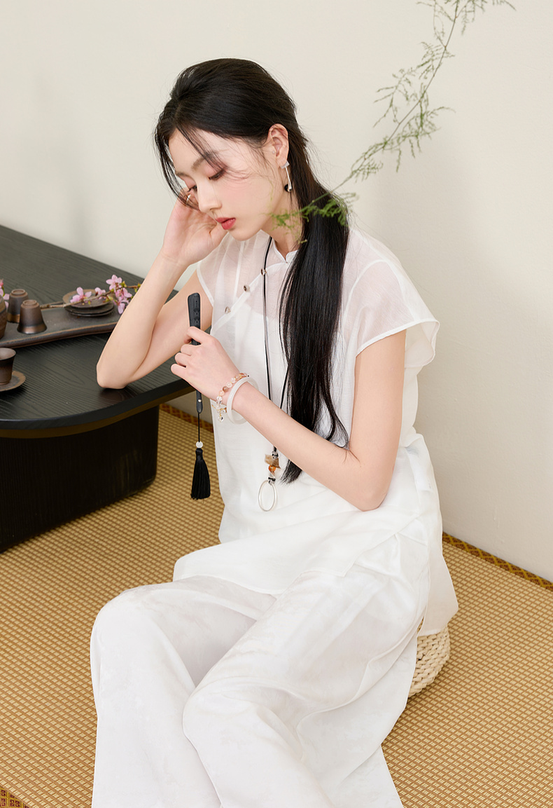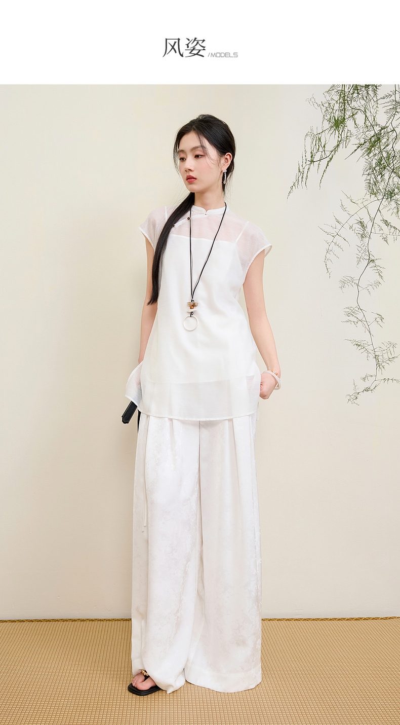 三彩【云白微澜】2025夏季新款新中式立领衬衫吊带两件套宽松C