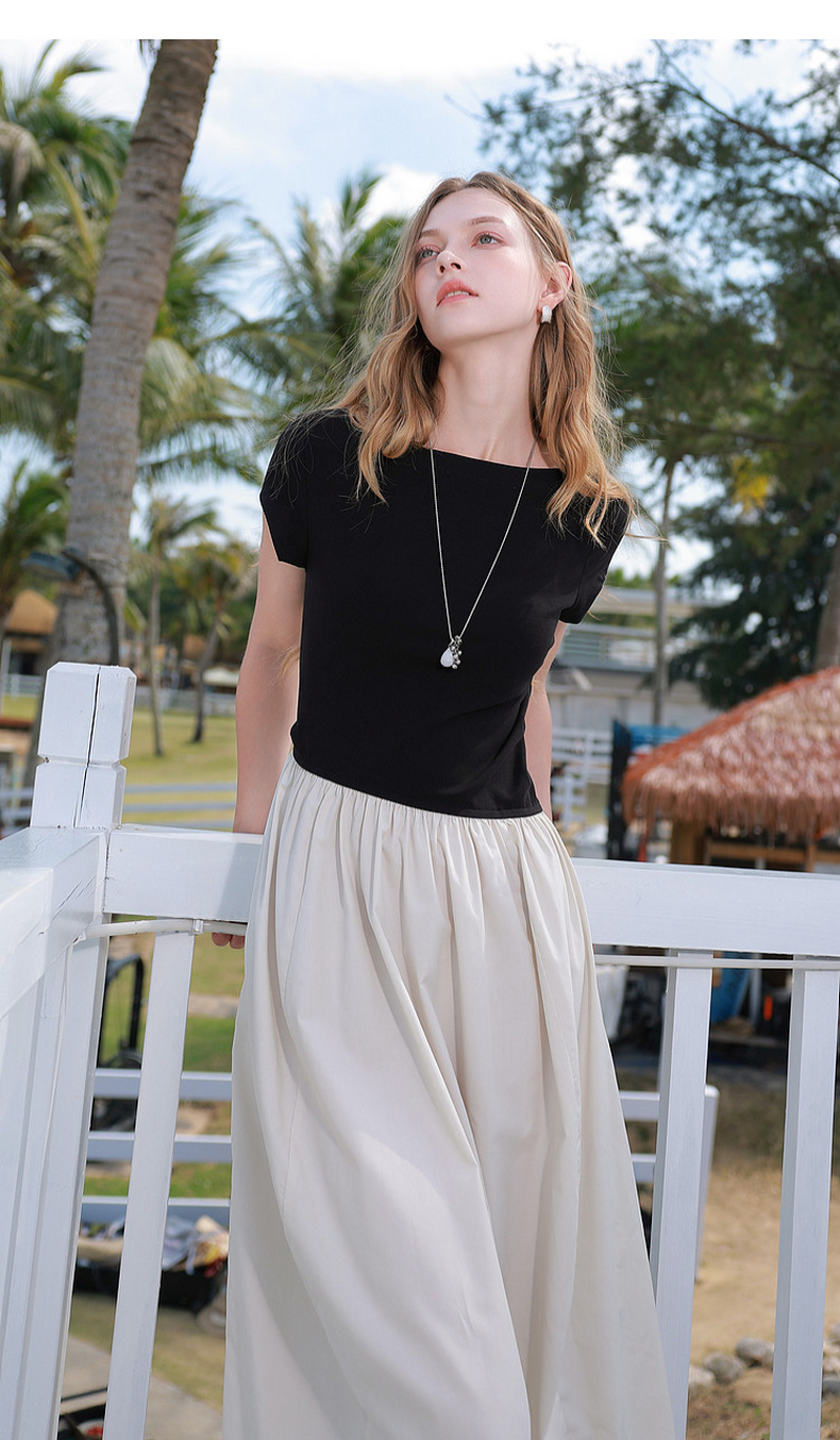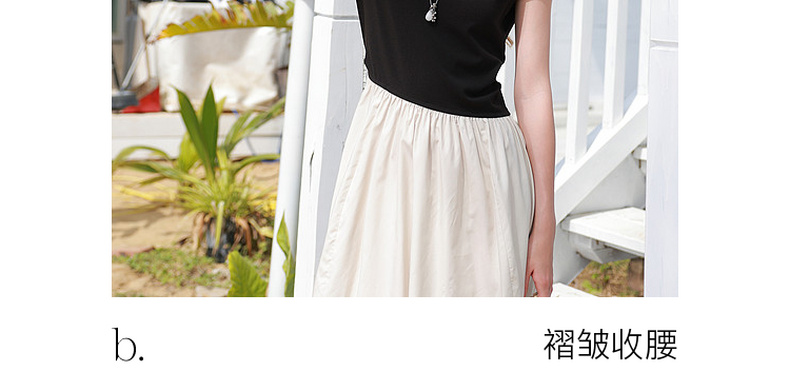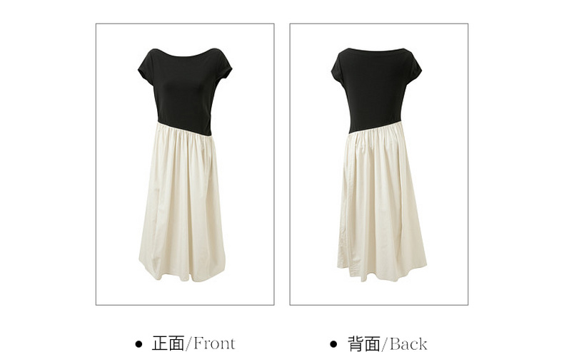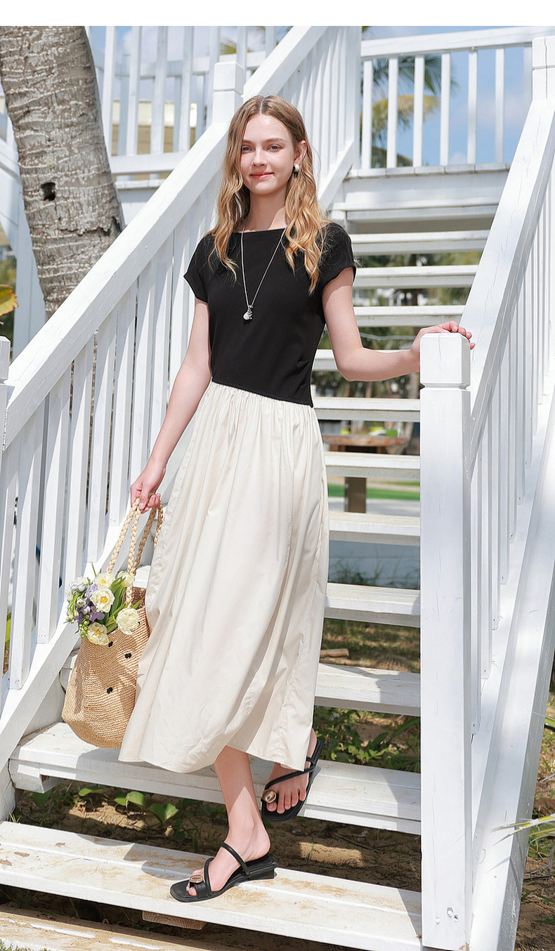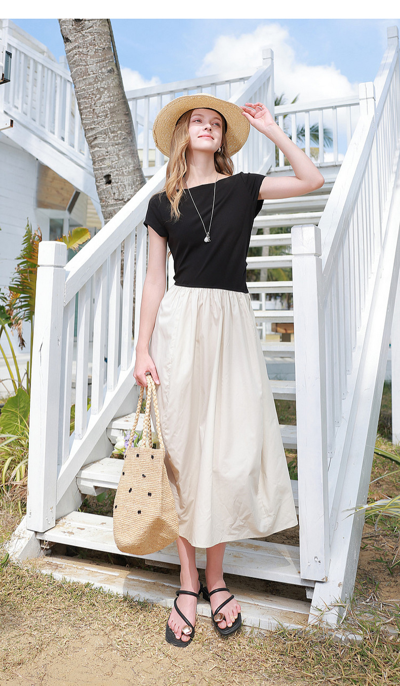 三彩2026夏季新款简约设计感假两件连衣裙一字领收腰A字长裙M