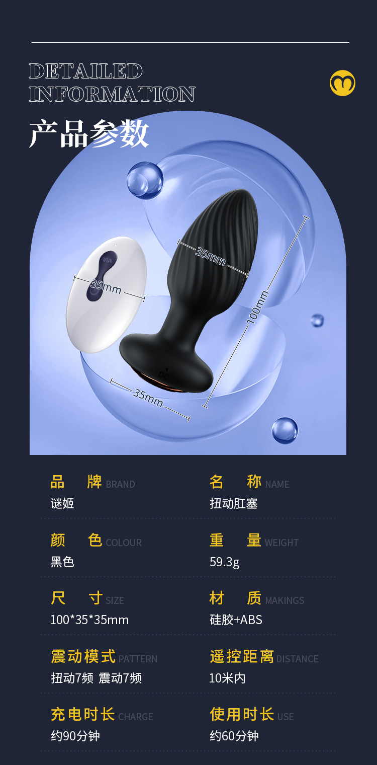 【谜姬】扭动肛塞摇摆遥控款另类玩具道具情趣用品男女用