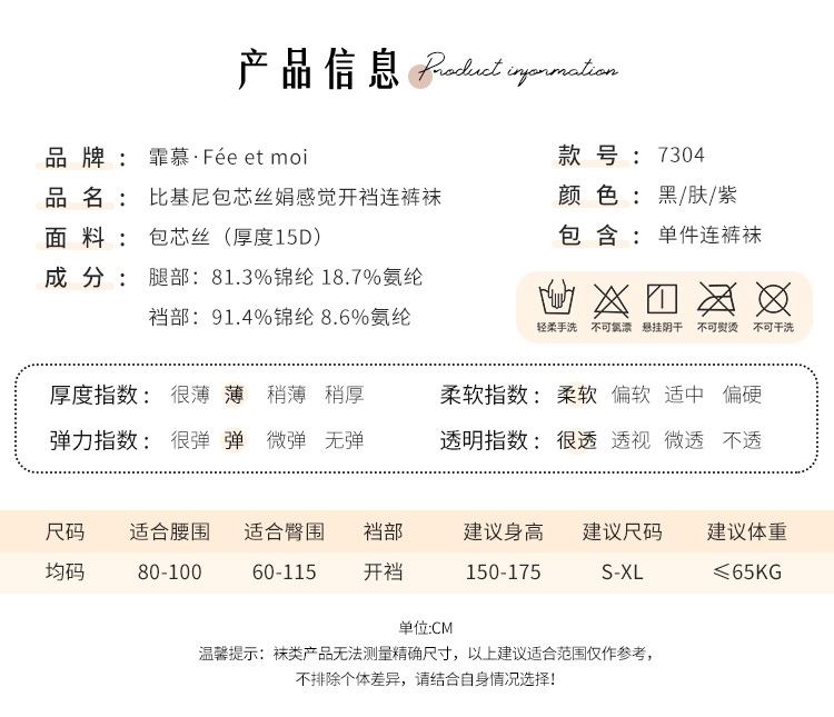 【情趣内衣】霏慕比基尼开裆连裤袜丝袜7304