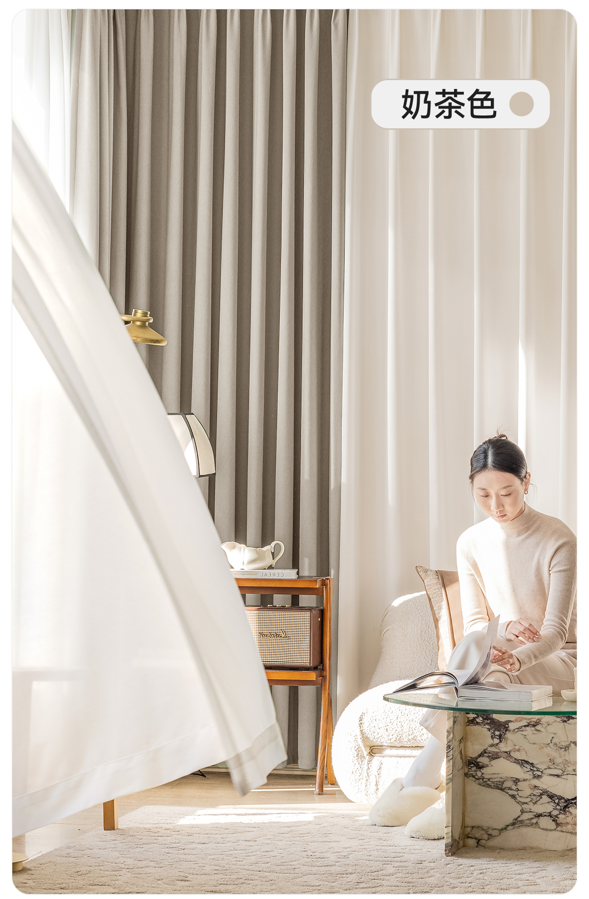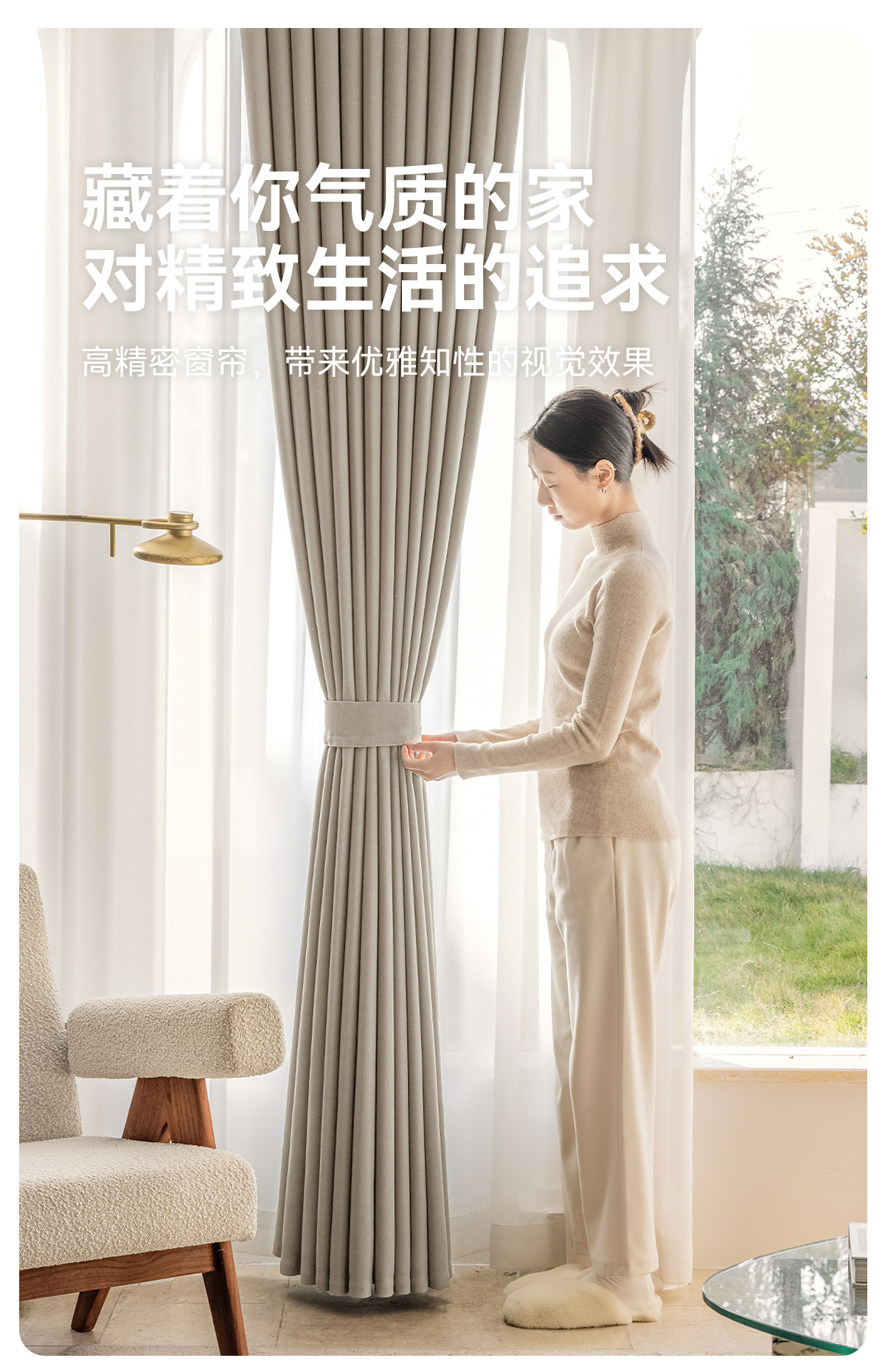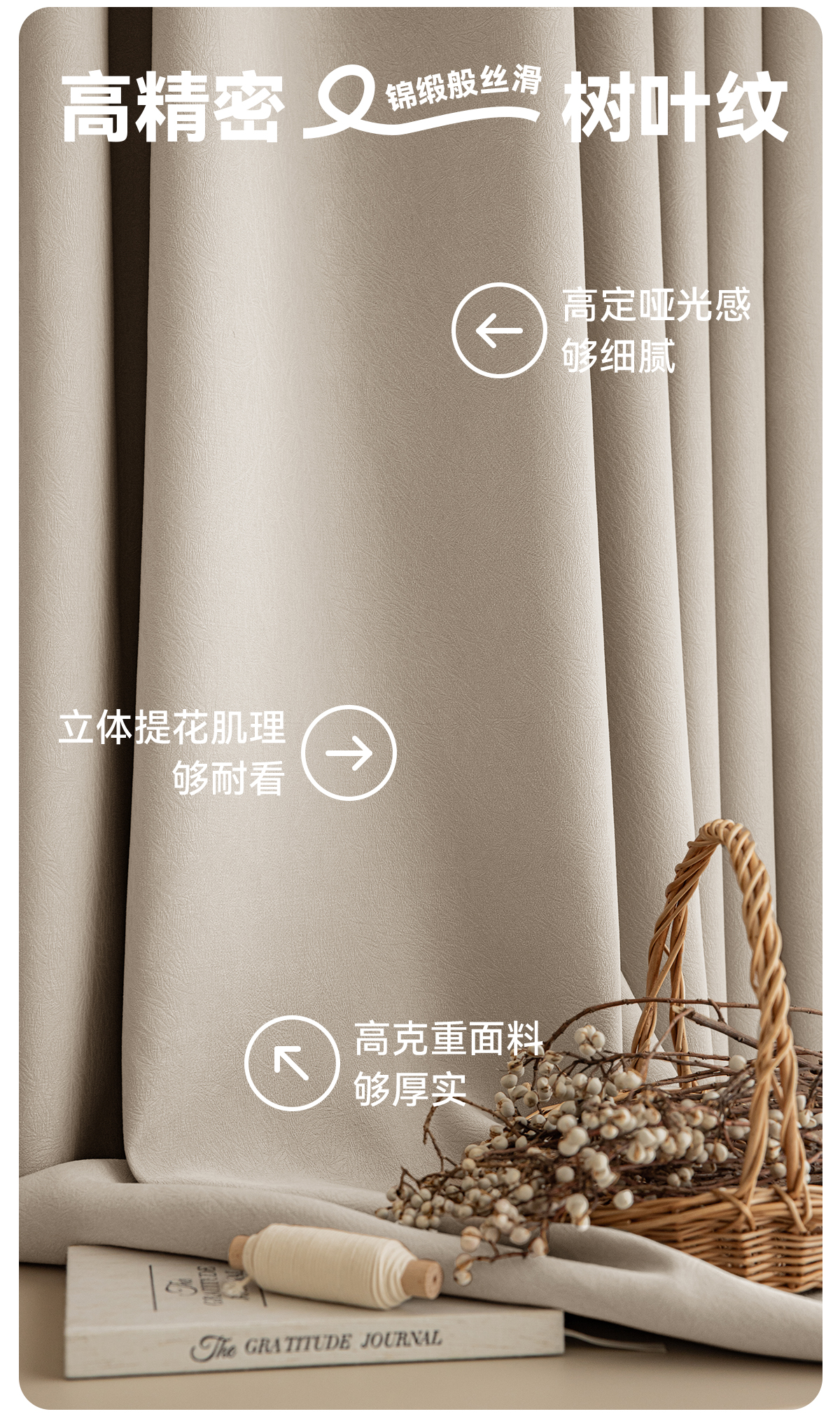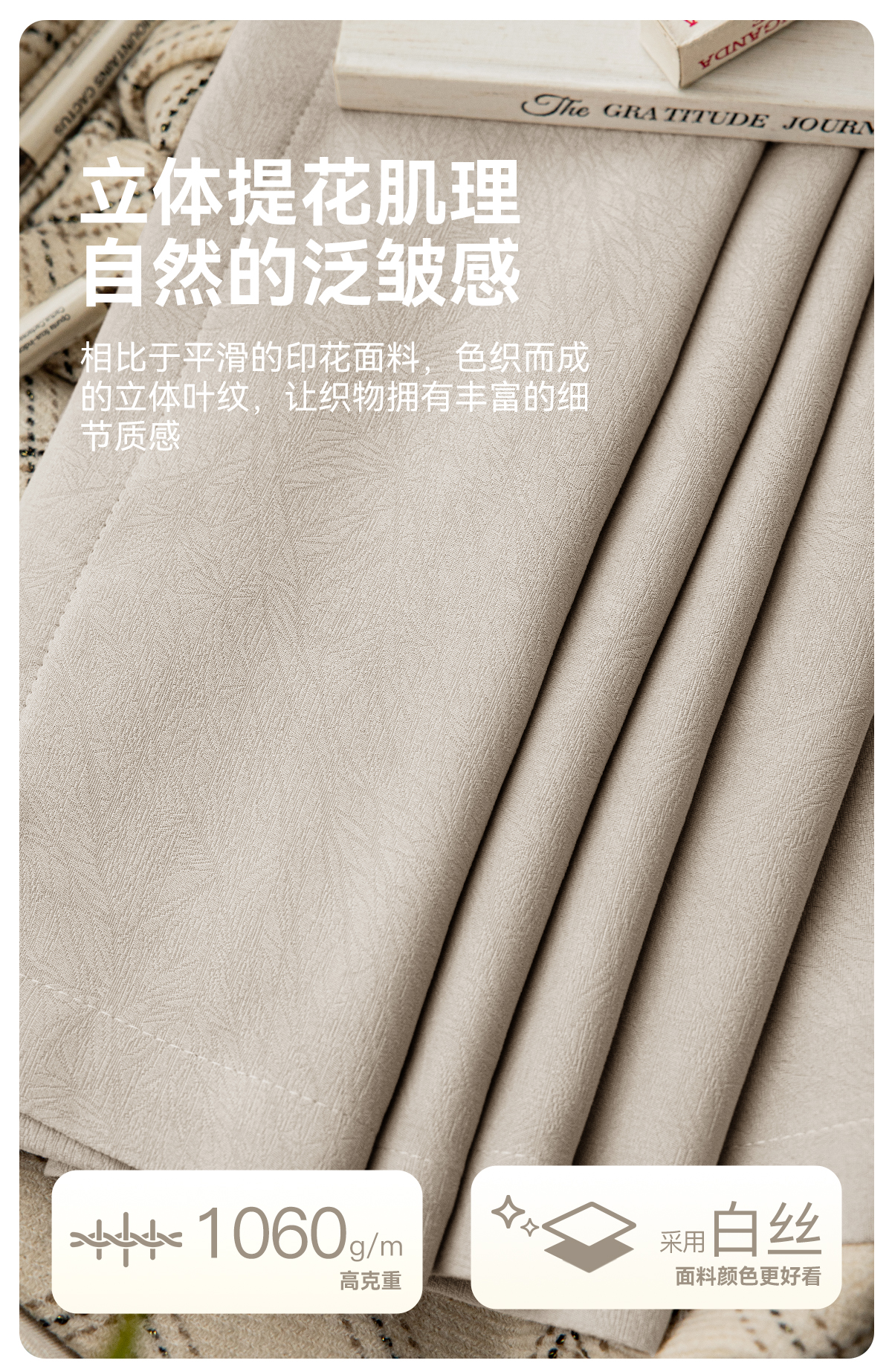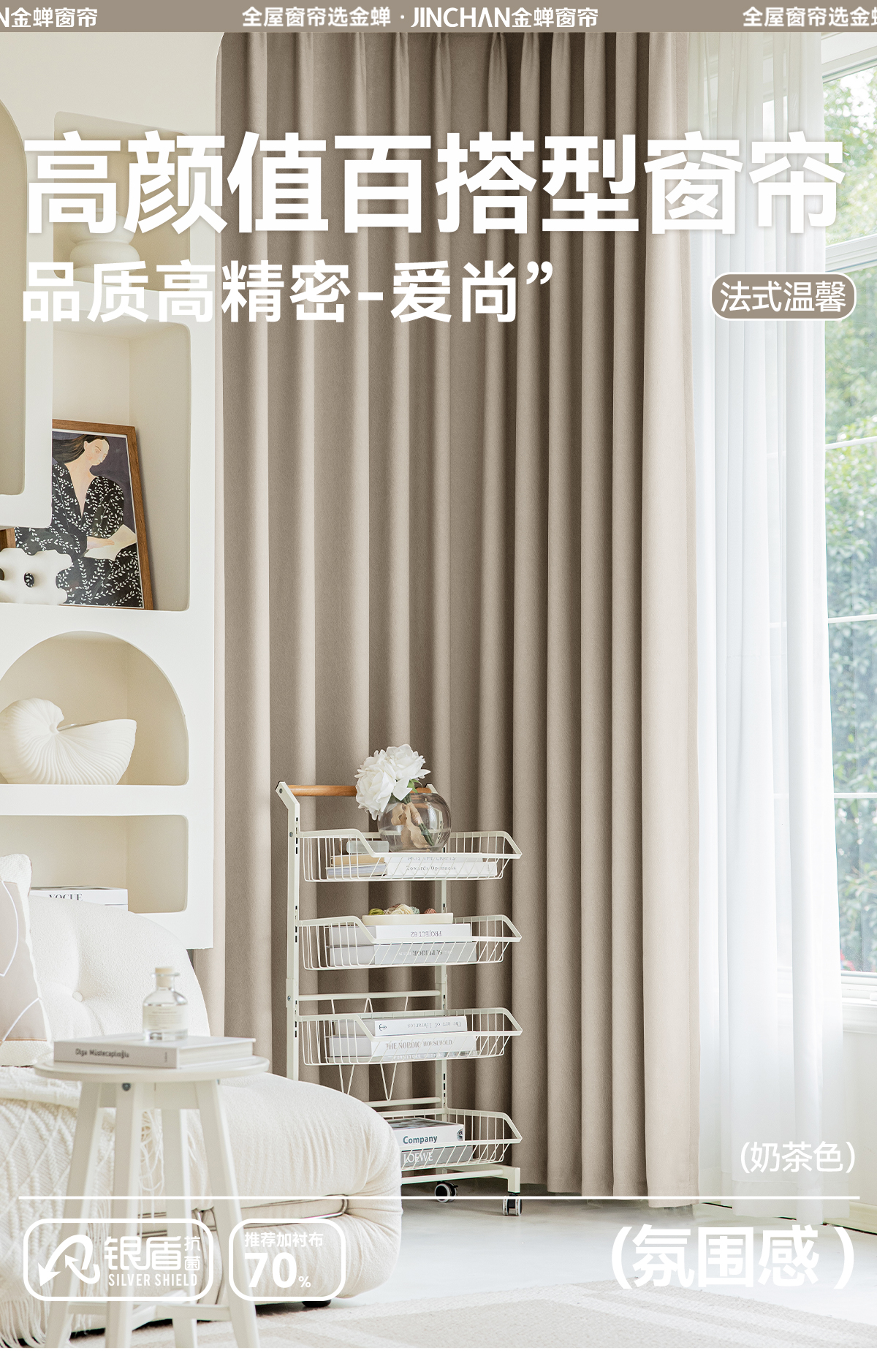 【爱尚】金蝉新款抗菌遮光窗帘高精密奶油卧室客厅现代简约轻奢