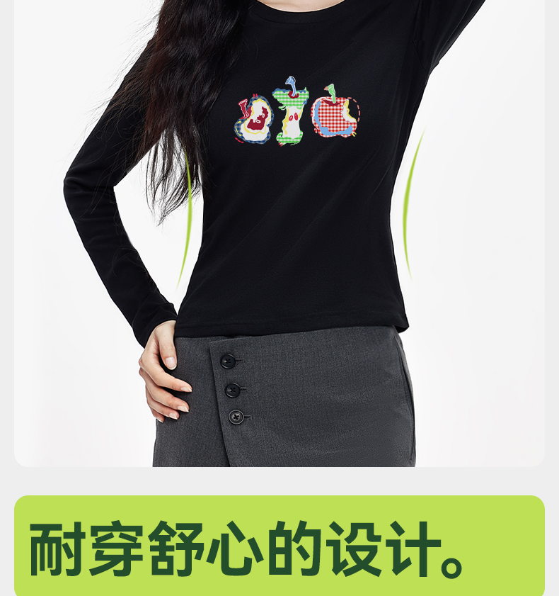 「棉的美学」秋冬可爱风长袖T恤女印花软糯修身高弹力打底衫上衣