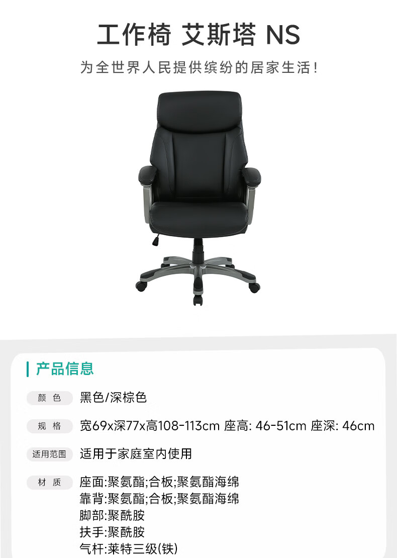【家具】工作椅 艾斯塔 NS(需自行安装)