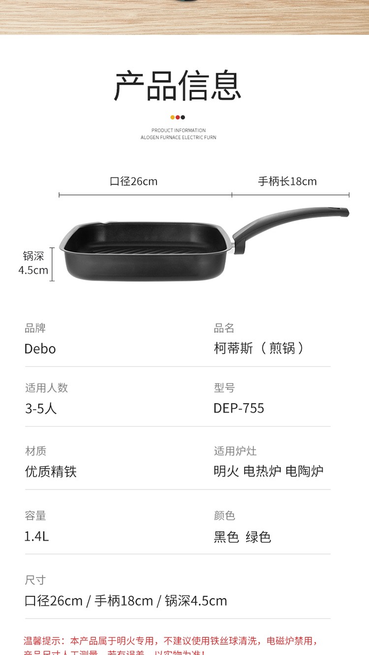 Debo德铂 煎锅不粘平底锅明火专用24cm 黑色/绿色