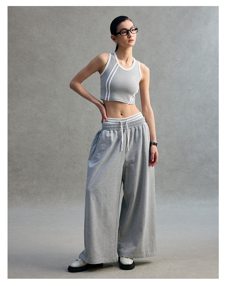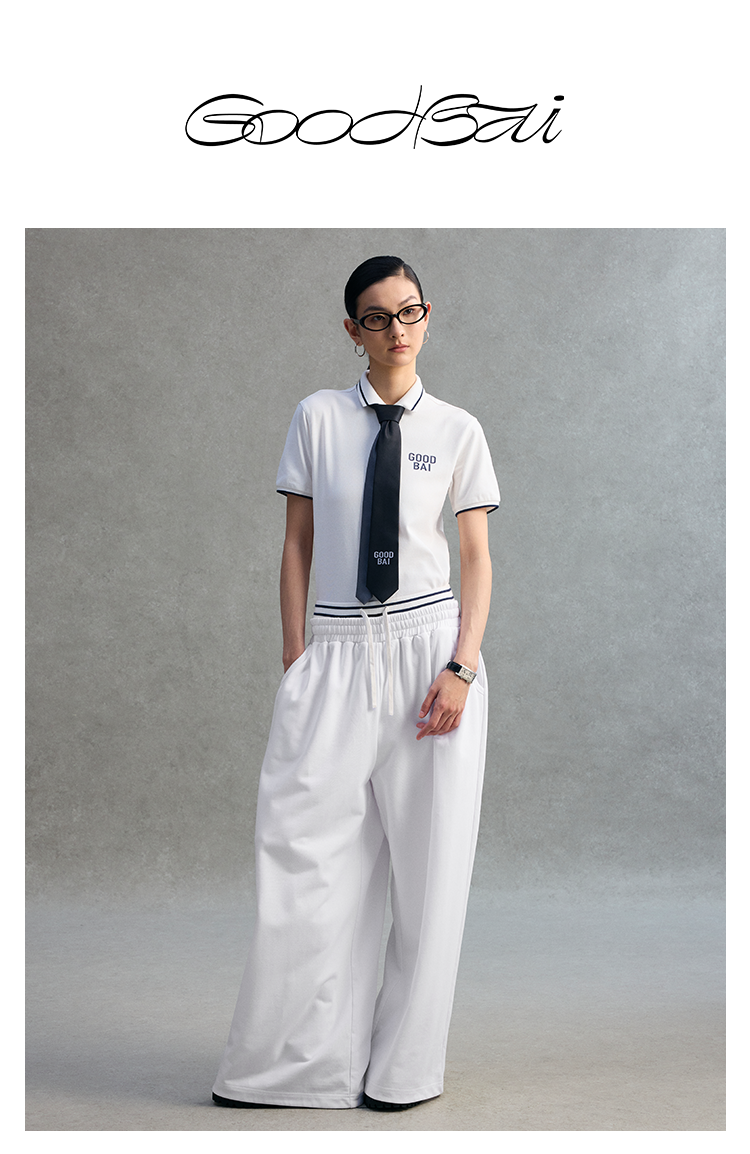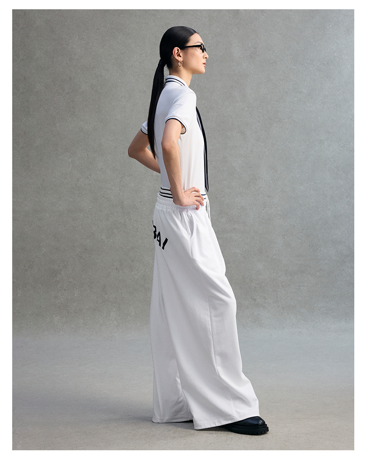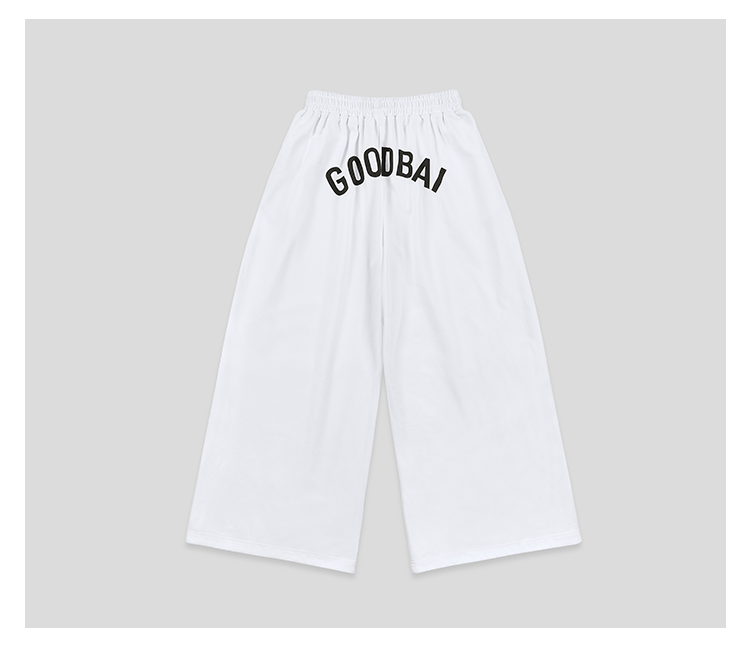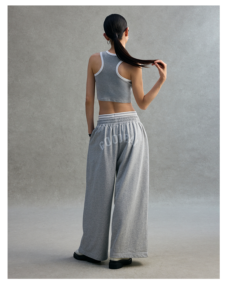 GOODBAI logo撞色印花收腰阔腿休闲卫裤