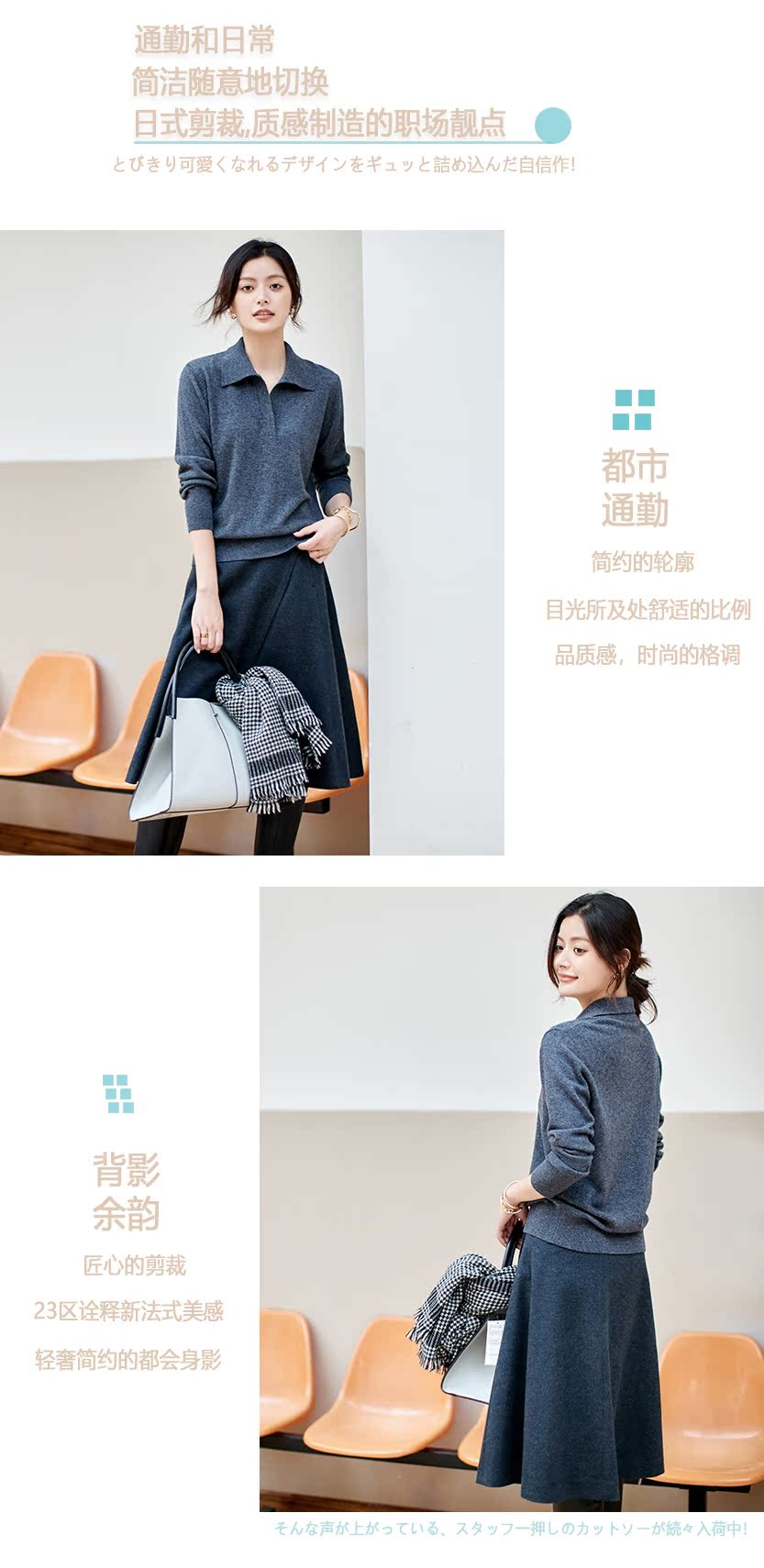 23区日系秋冬季通勤纯羊毛中长款半身裙休闲小喇叭A字裙商场同款