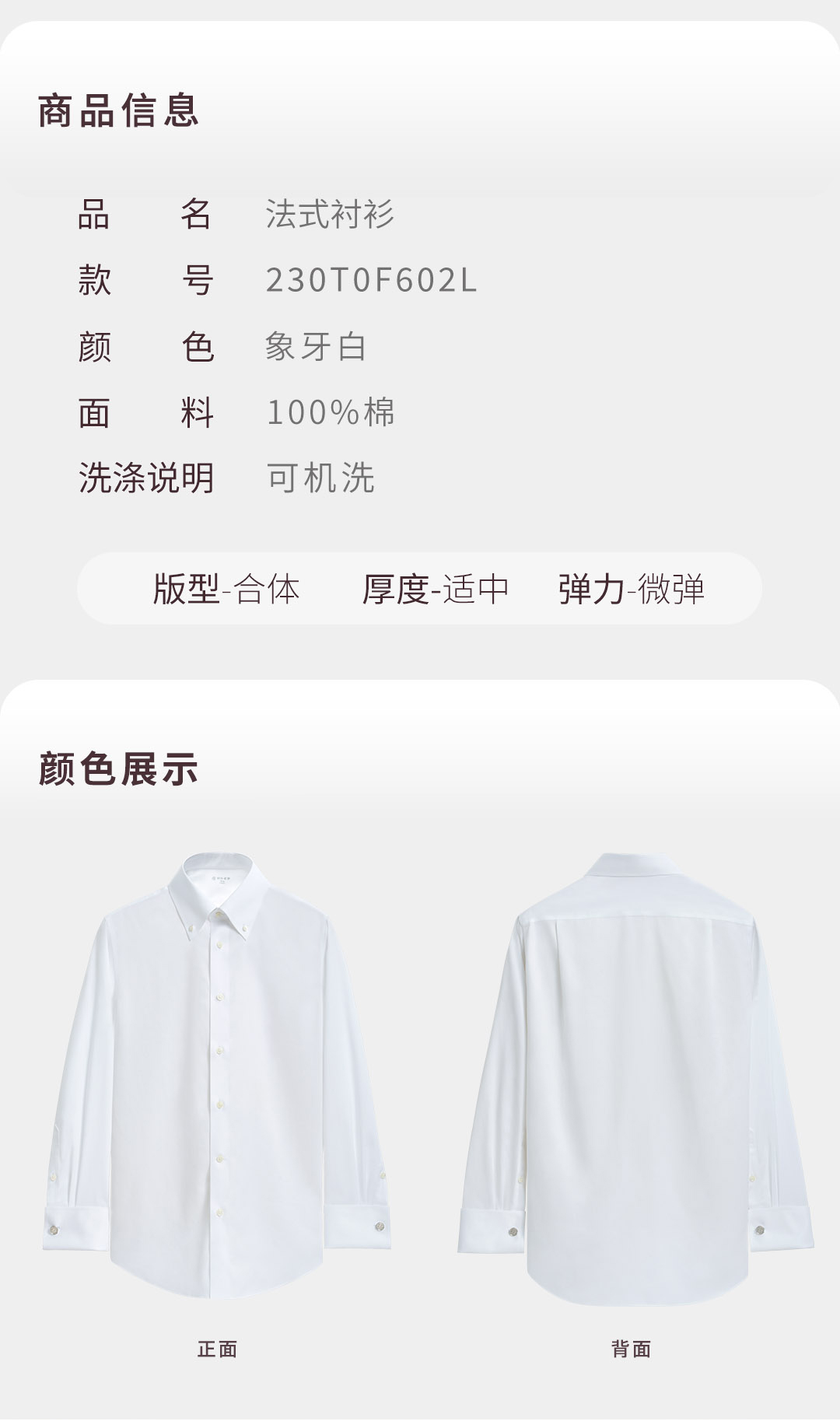 【经典六号】法式领袖口宴会典礼高档长袖衬衫230T0F602L
