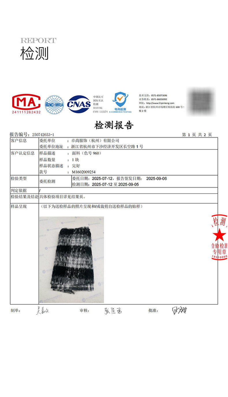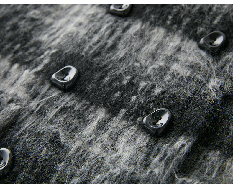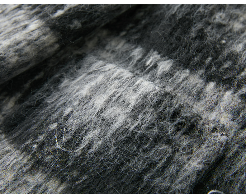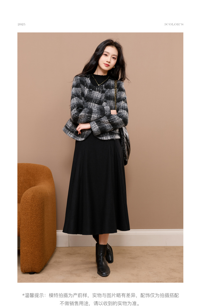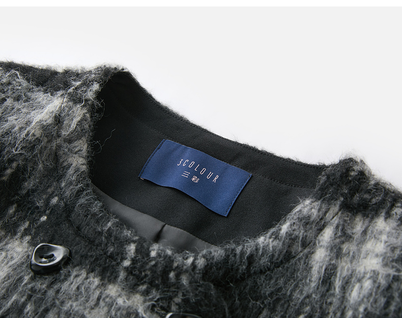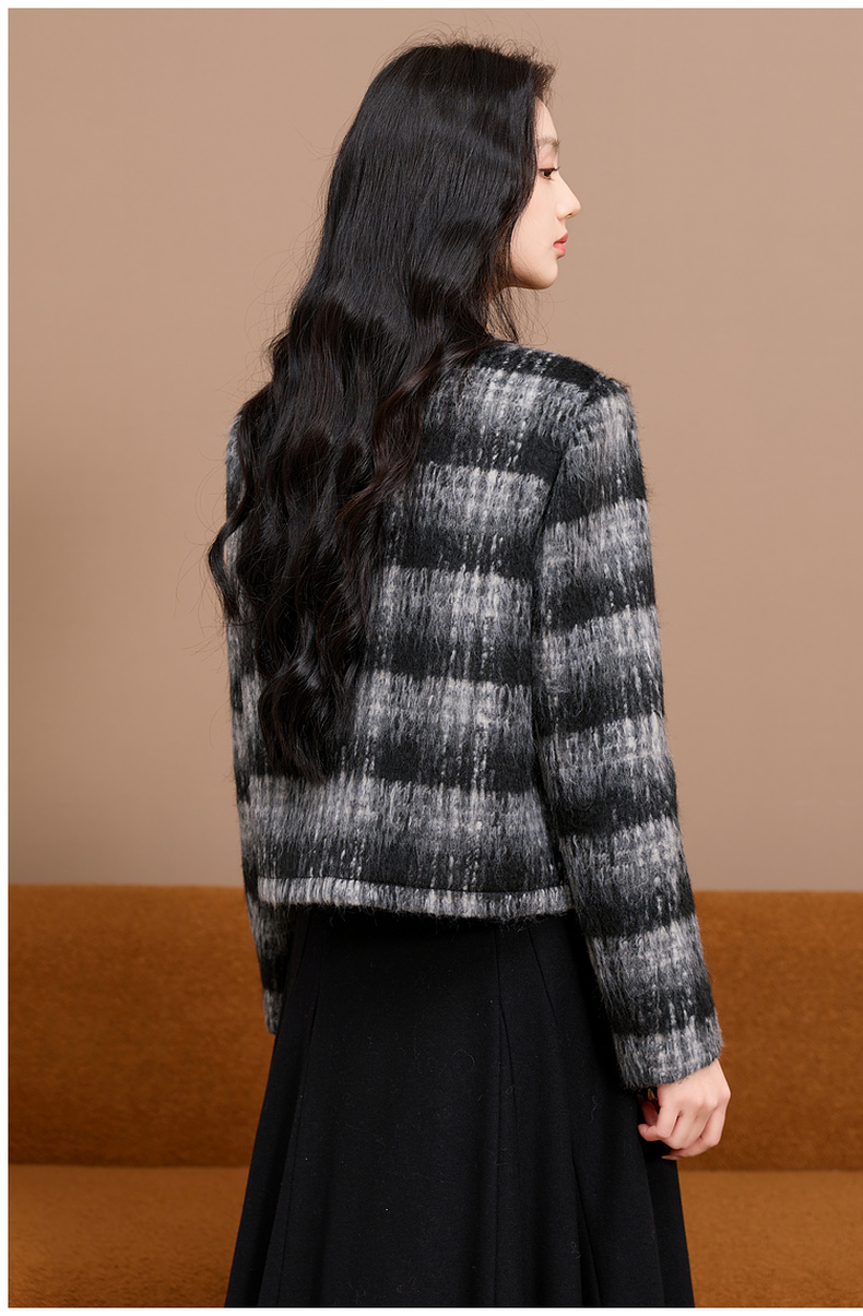 三彩2025冬季新款格纹毛呢外套复古轻奢双排扣短款宽松大衣S