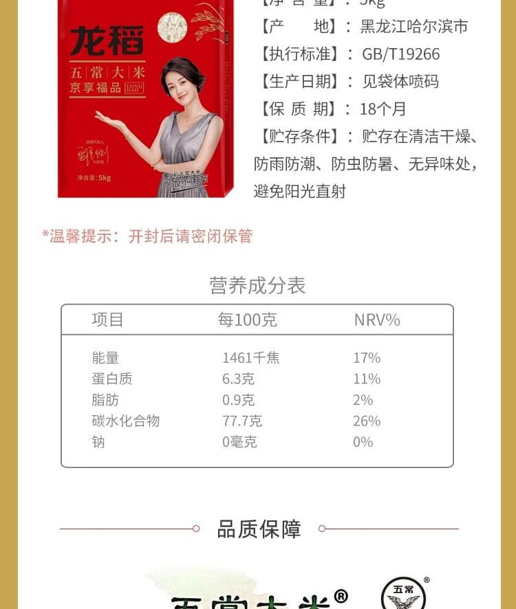 【龙稻】五常大米 京享福品 5KG