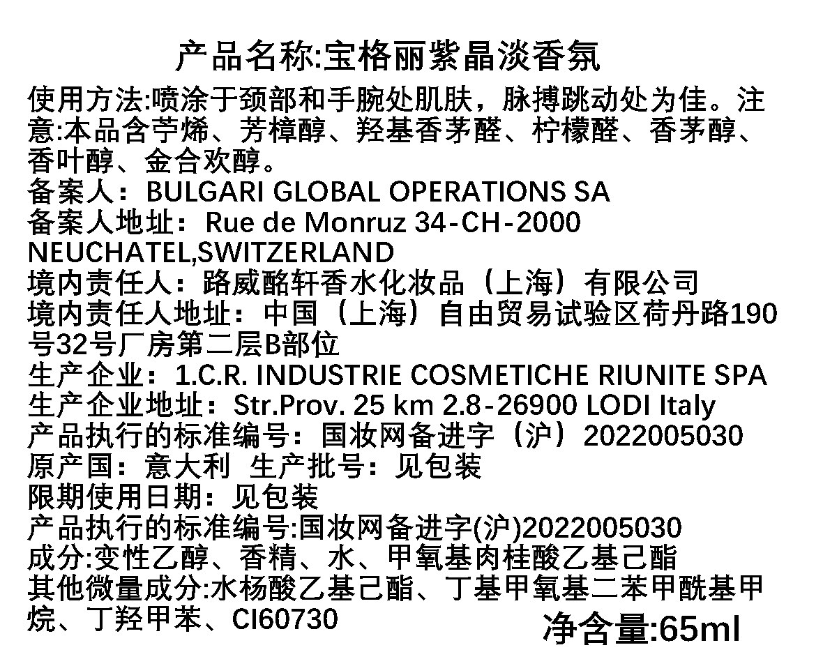 BVLGARI宝格丽 花舞轻盈 (紫晶) 香水