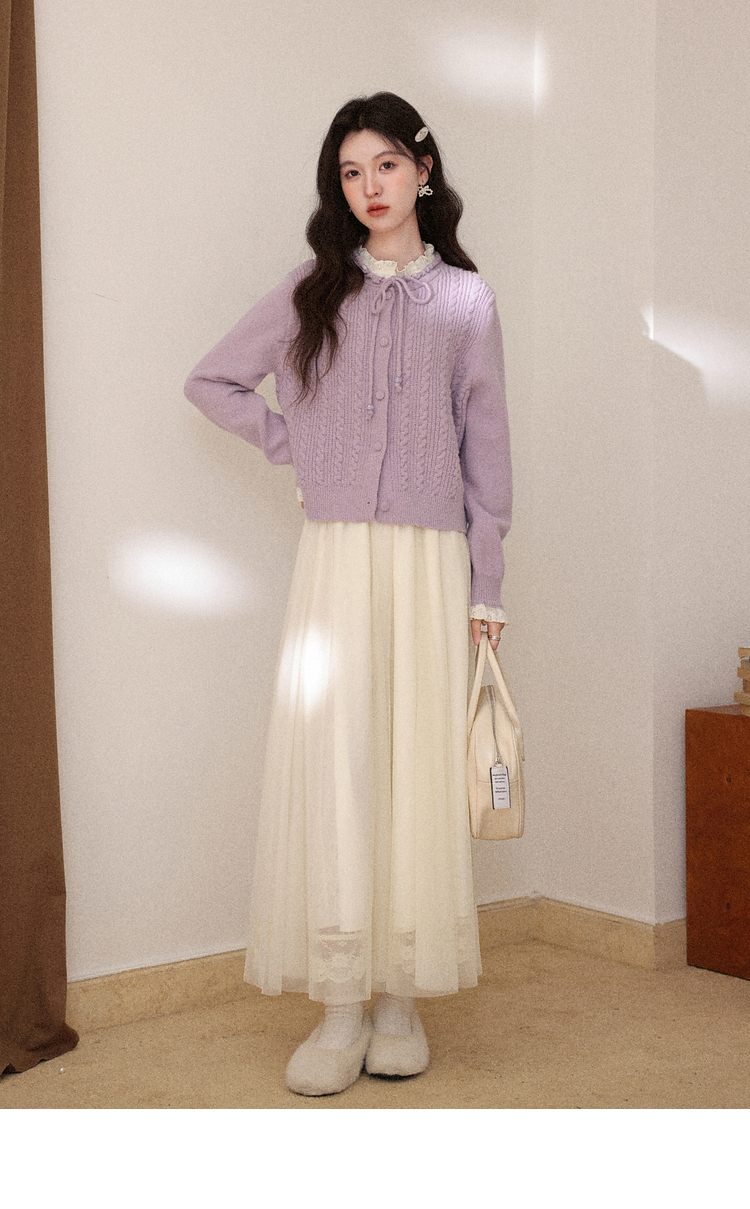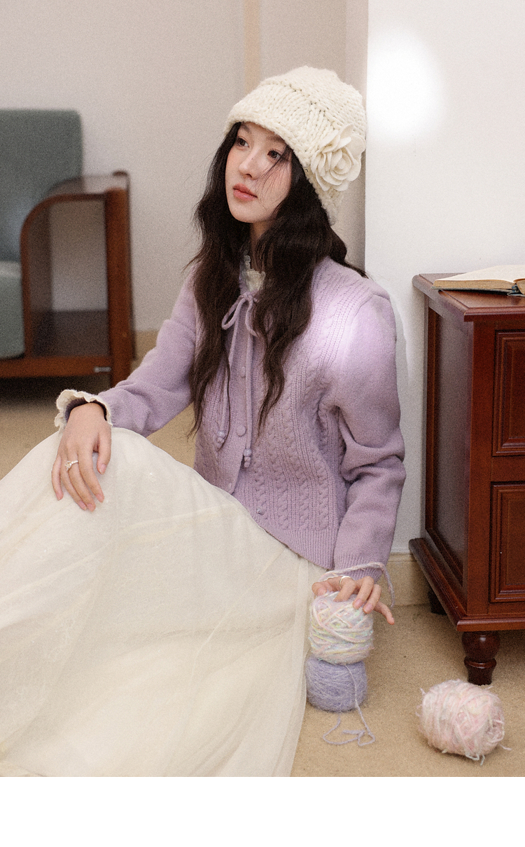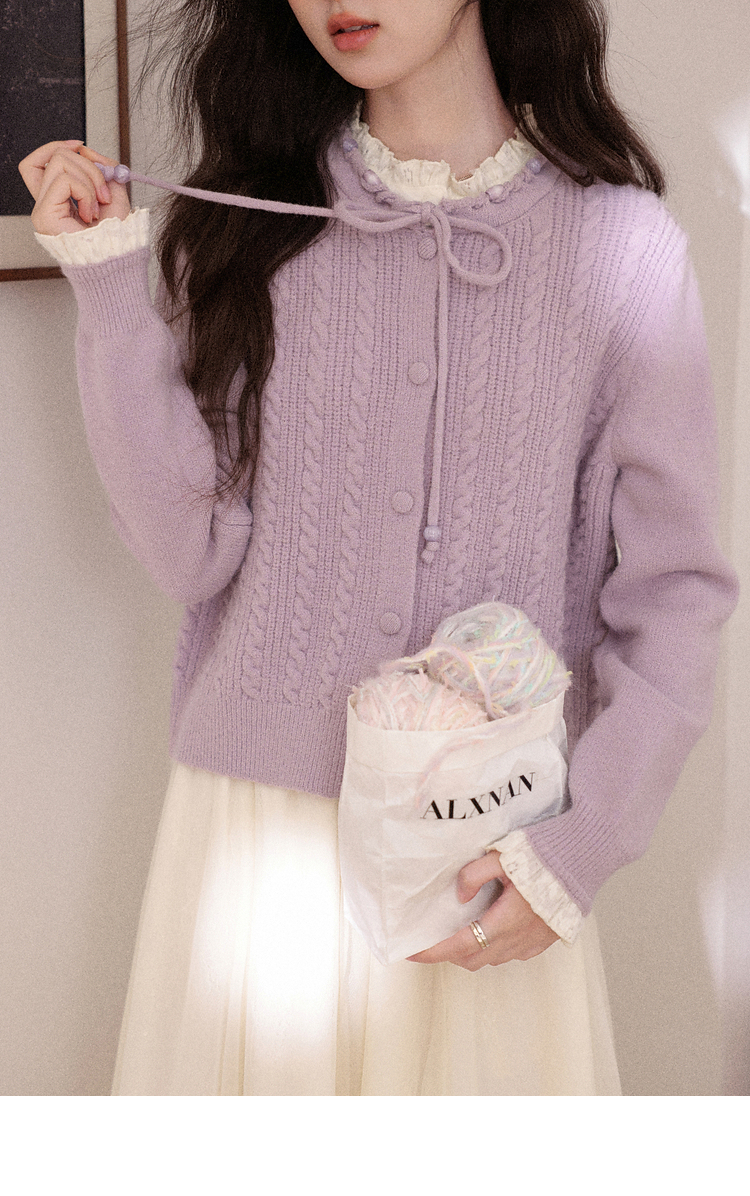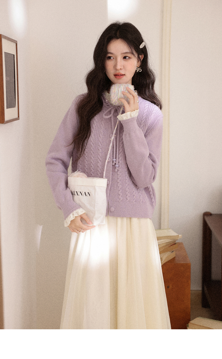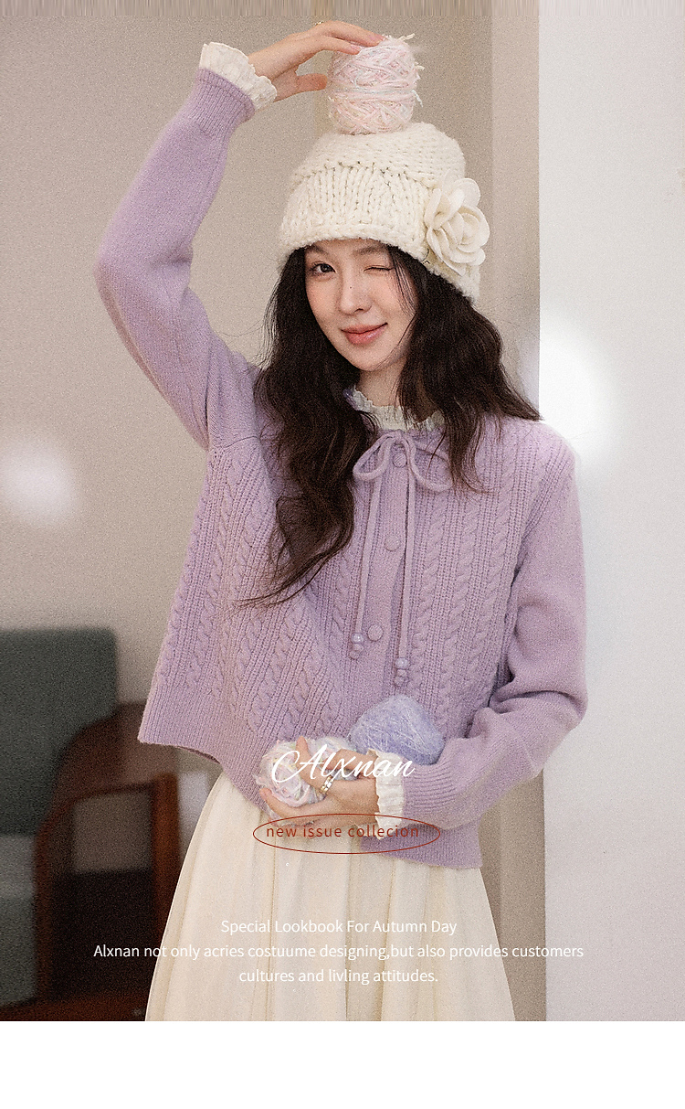 鹿向南「桔梗童话」紫色长袖短款毛衣女秋冬季宽松百搭修身上衣女