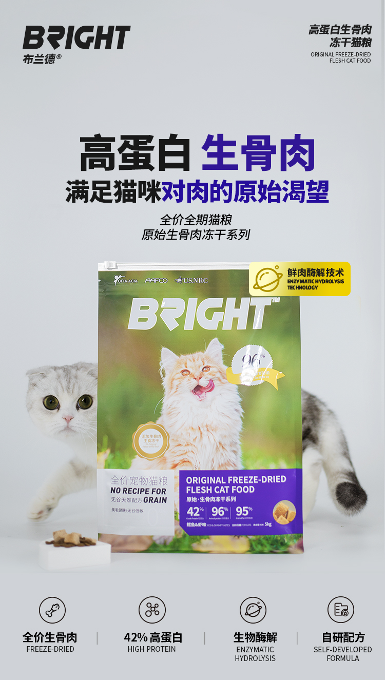 布兰德全价猫粮成猫全阶段配方无谷生骨肉冻干猫粮5kg