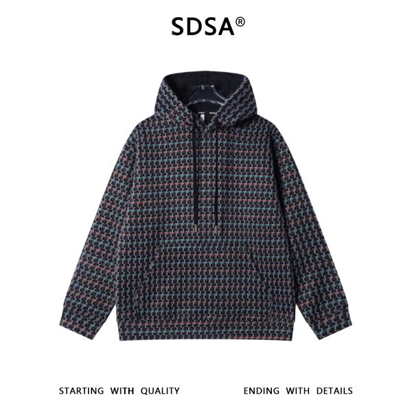 SDSA男士秋冬新款痞帅男装韩版彩色条纹绒毛套头连帽卫衣百搭时尚