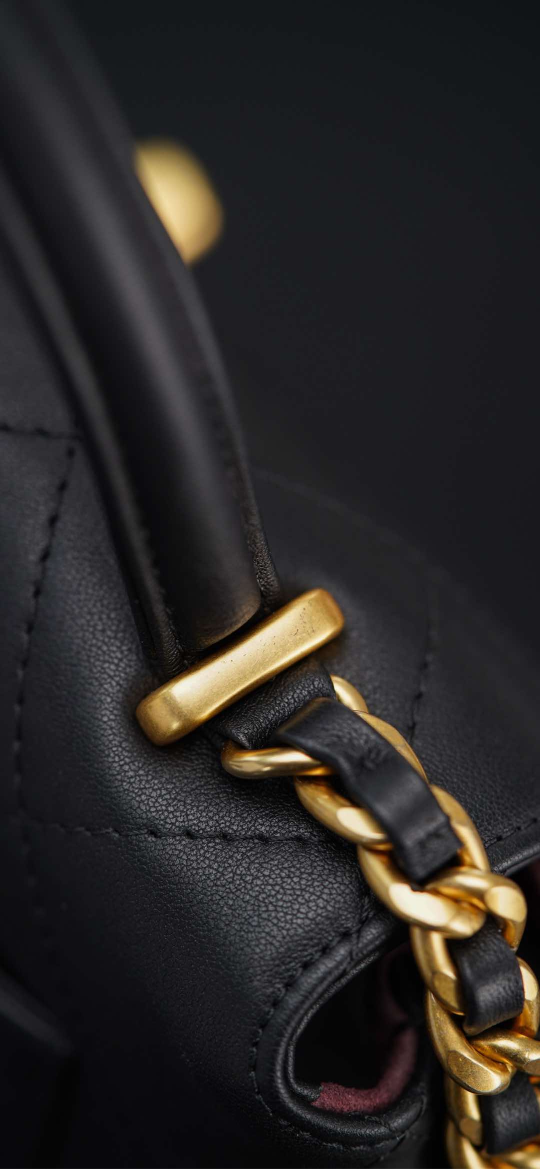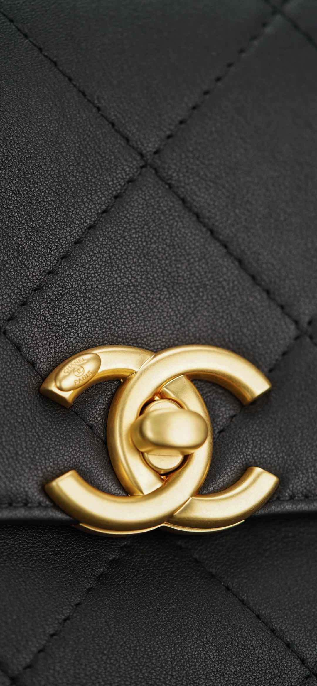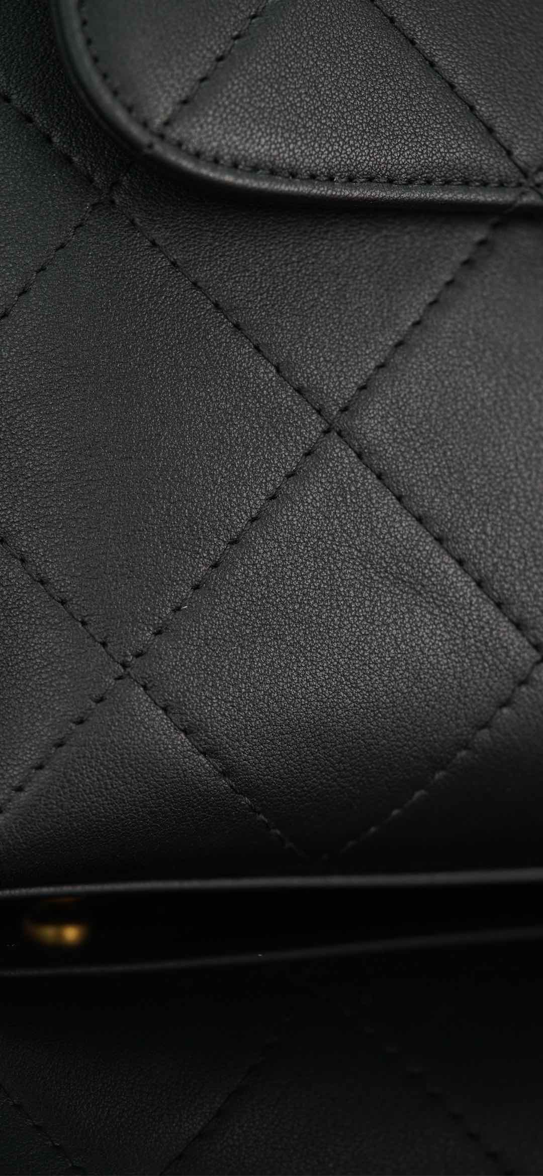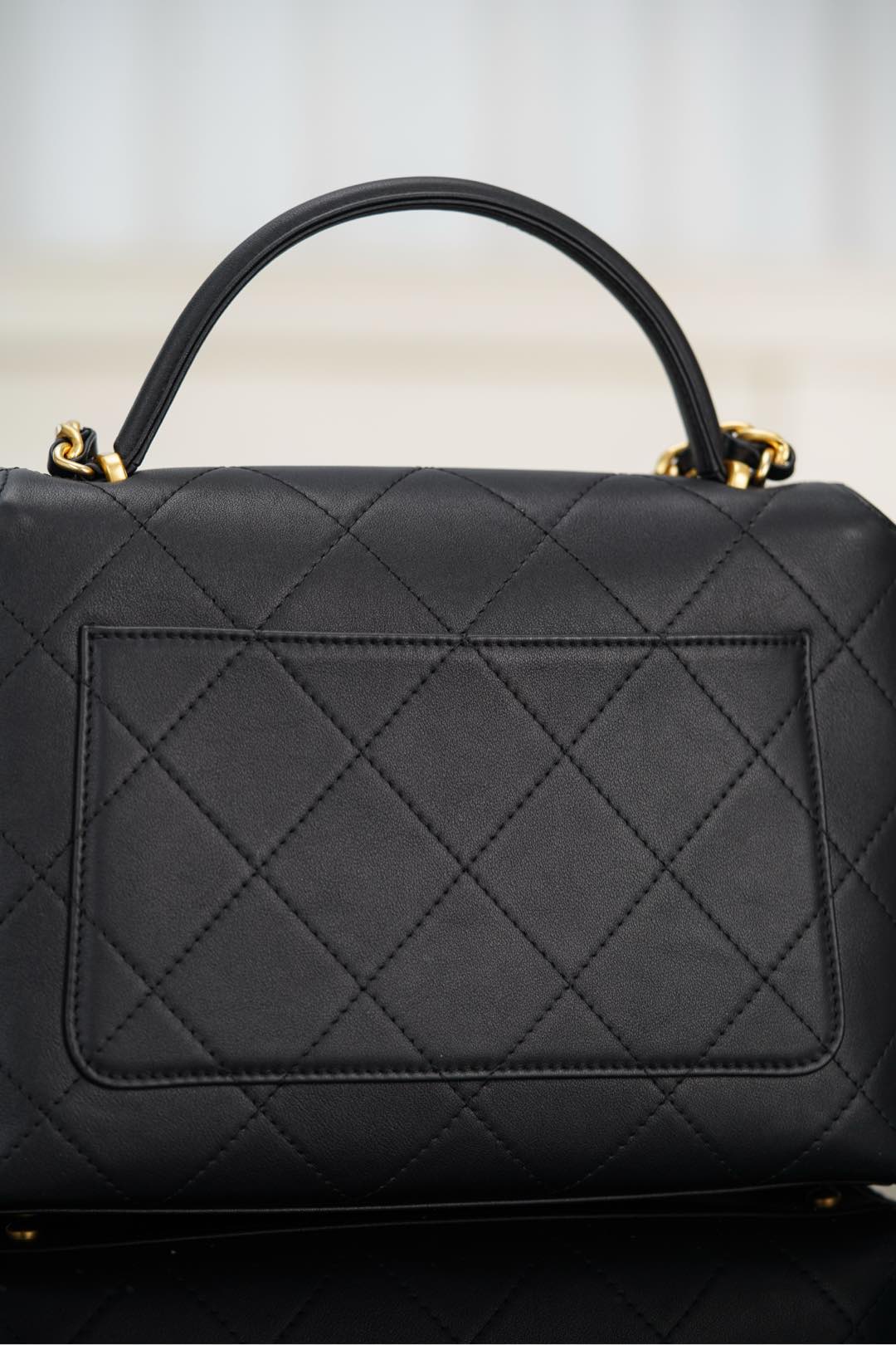 𝐂𝐡𝐚𝐧𝐞𝐥 𝟐𝟓𝐬 手提口盖包 黑金🖤大号 气场全开、很适合职场人士的黑金公文包💼;可见容量非常感人🤩!大大的菱格搭配砂金双𝐂扣、复古感十足;会衬托的整个人非常干练利落! 手拎很🆒、单肩又很随性大方、有点学院风的即视感~ 采用小牛皮🐂耐用好打理👏🏻 大包爱好者、实用主义必入! 尺寸:𝟐𝟎.𝟓𝐱𝟐𝟖𝐱𝟗.𝟓𝐜𝐦 材质:小牛皮与金属