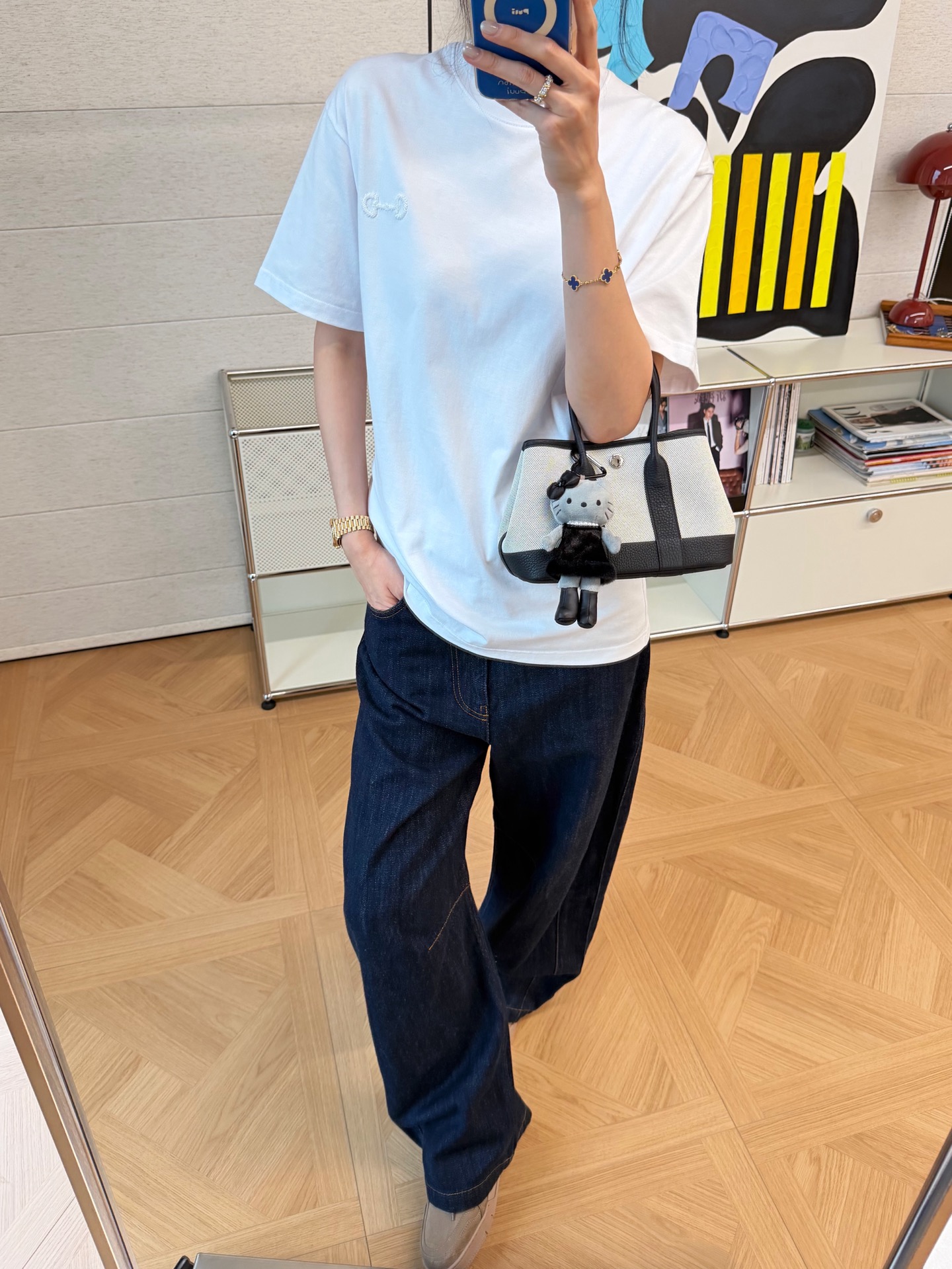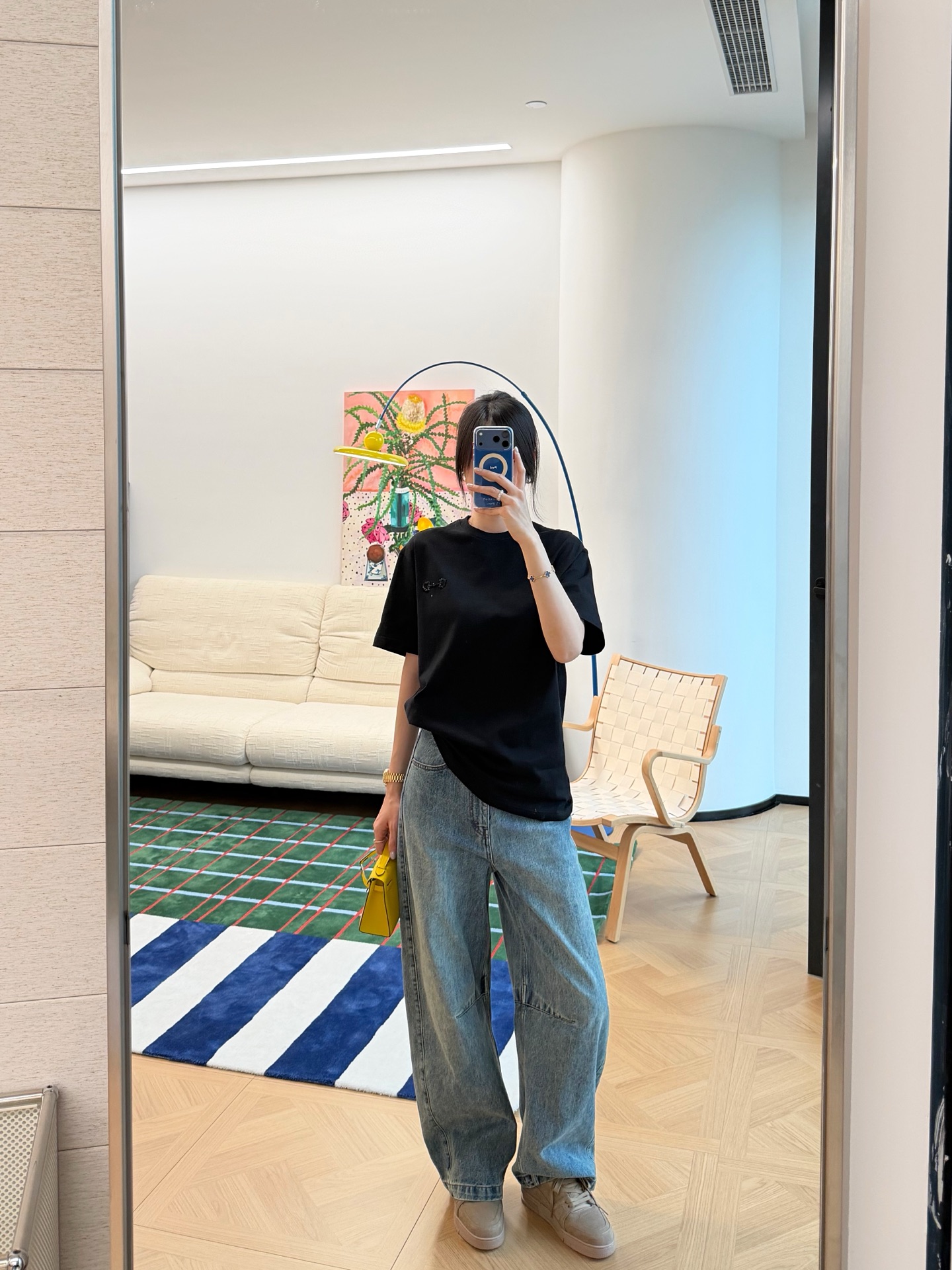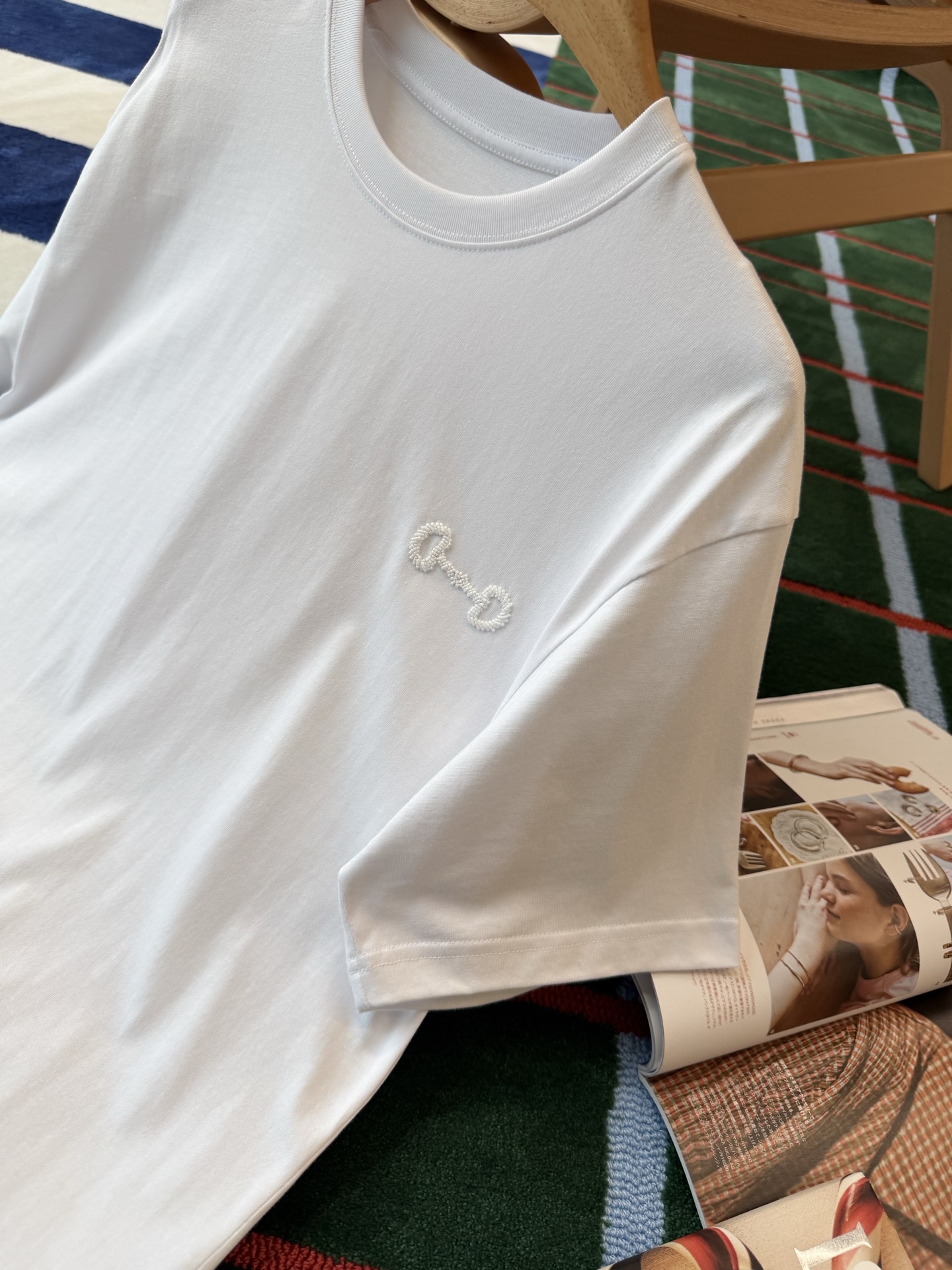 最新款 T恤,巧妙融入饰珠粒马衔扣刺绣,一展别致韵调〰️以其优质的面料、舒适的触感、精致的工艺和百搭的设计,成为了衣柜中不可或缺的一款单品, 胸前钉珠设计提升精致度🔝宽松版型,适合各种体型的人群穿着,无论是喜欢休闲风格的你,还是追求简约设计的你,都能在这款T恤中找到属于你的那份风格💗黑/白两个色,码数SML