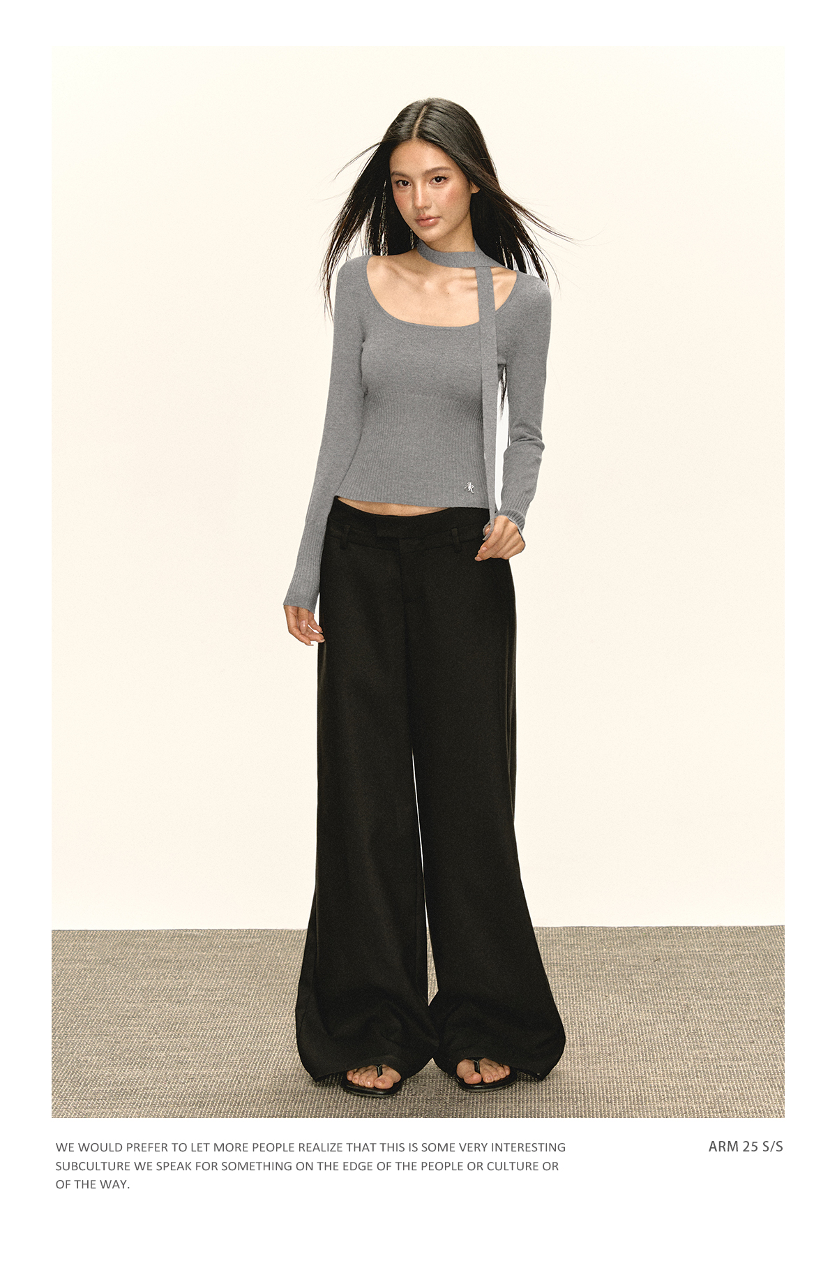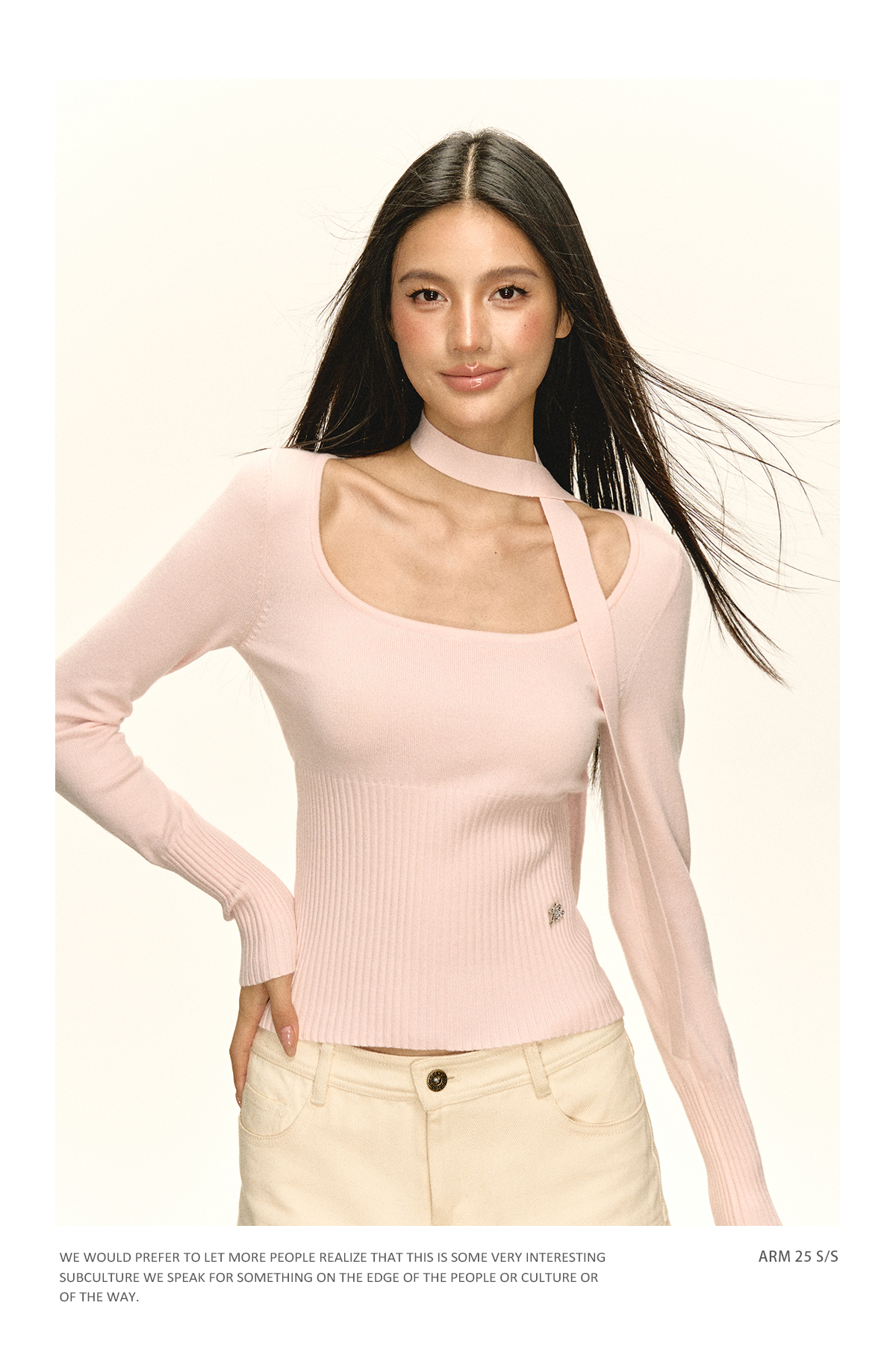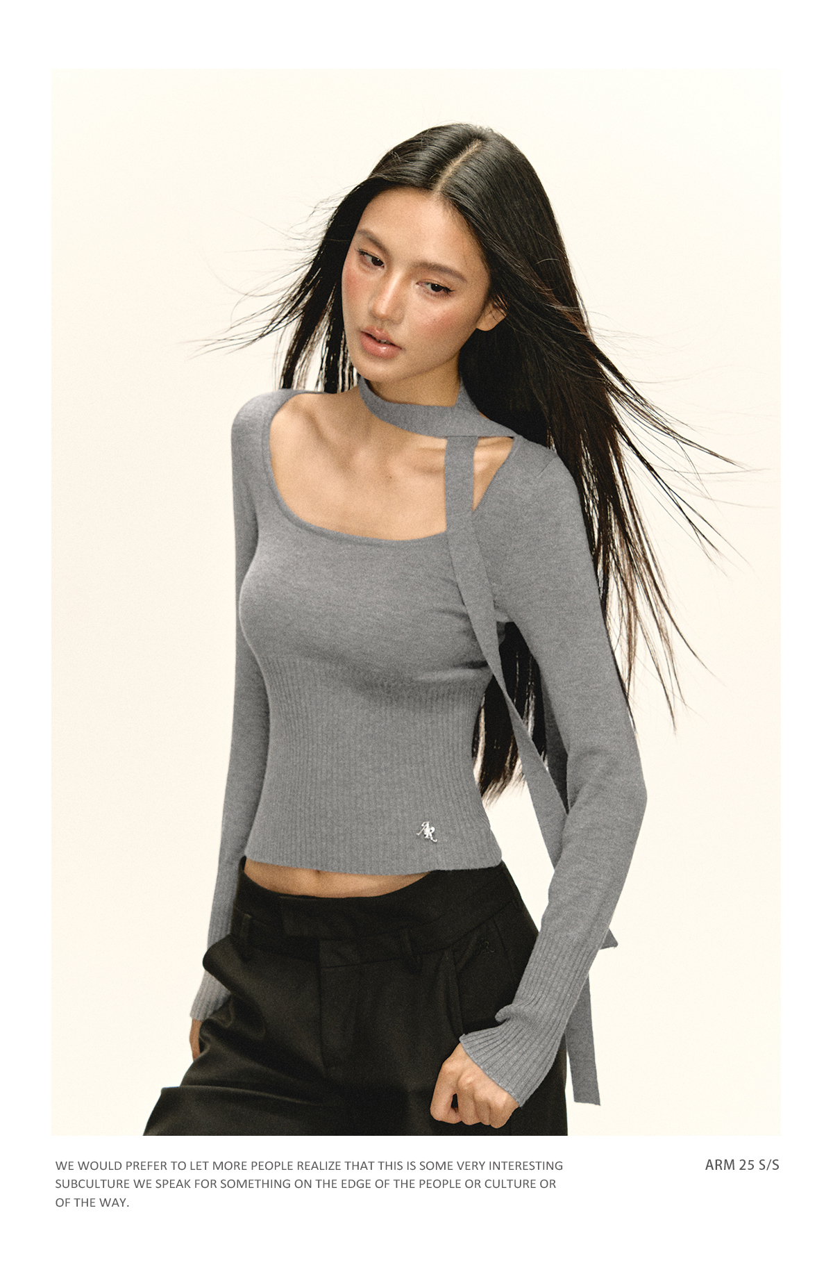 Ariseism 美式复古带围脖长袖针织衫女早秋新款修身上衣