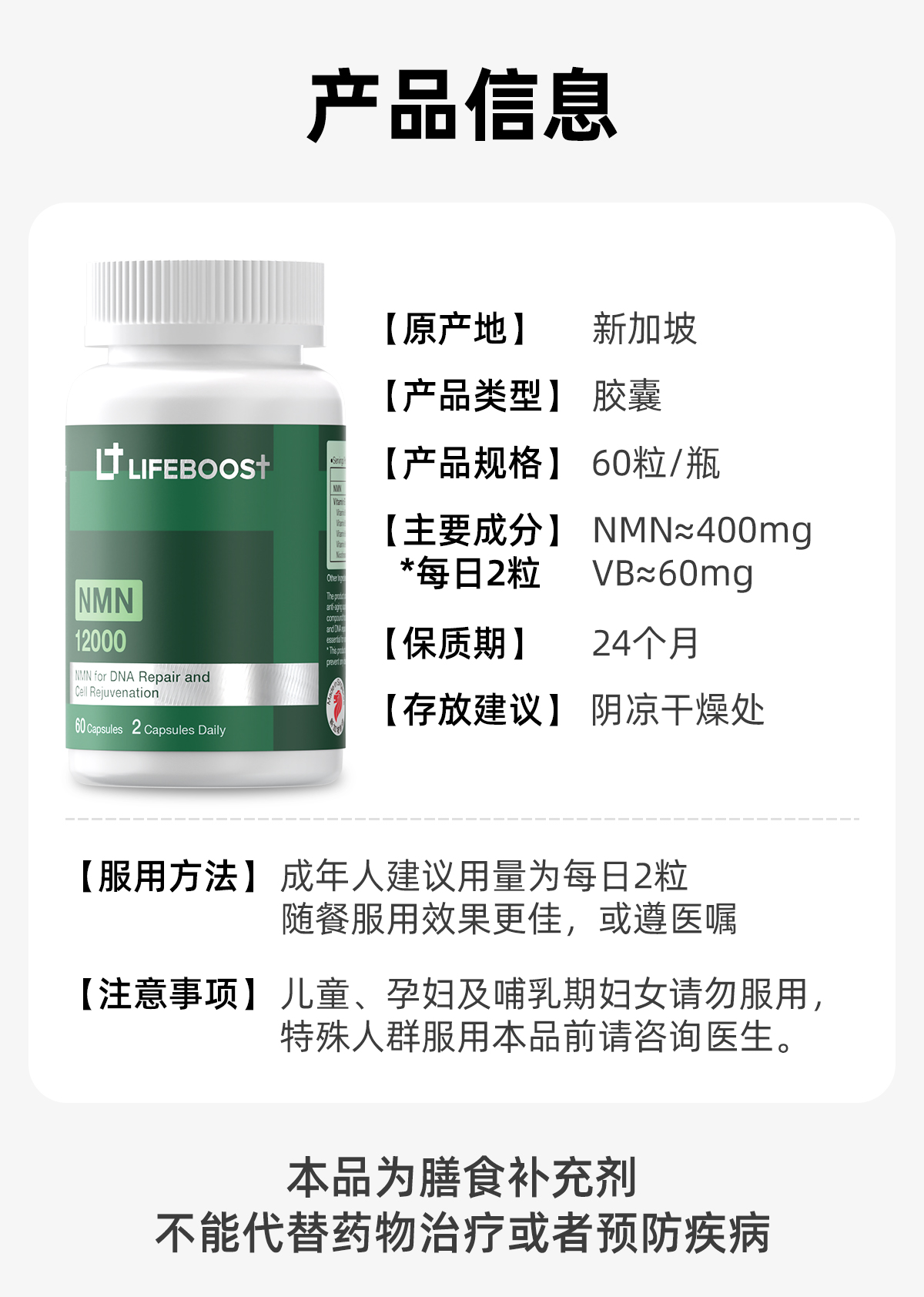 【NMN新加坡直邮】NMN12000 胶囊