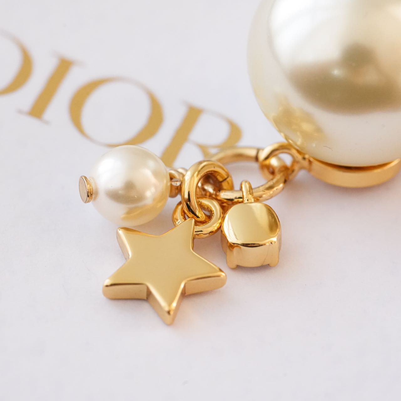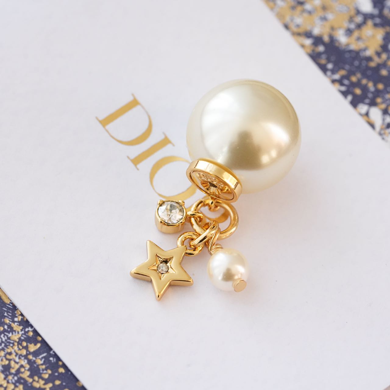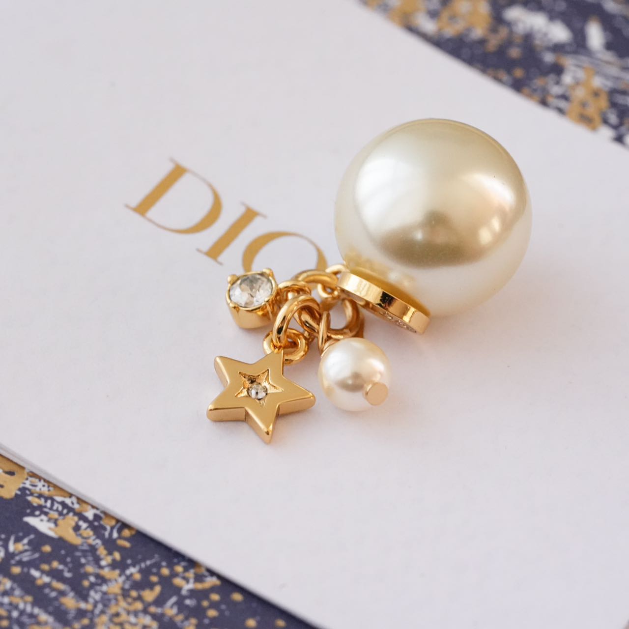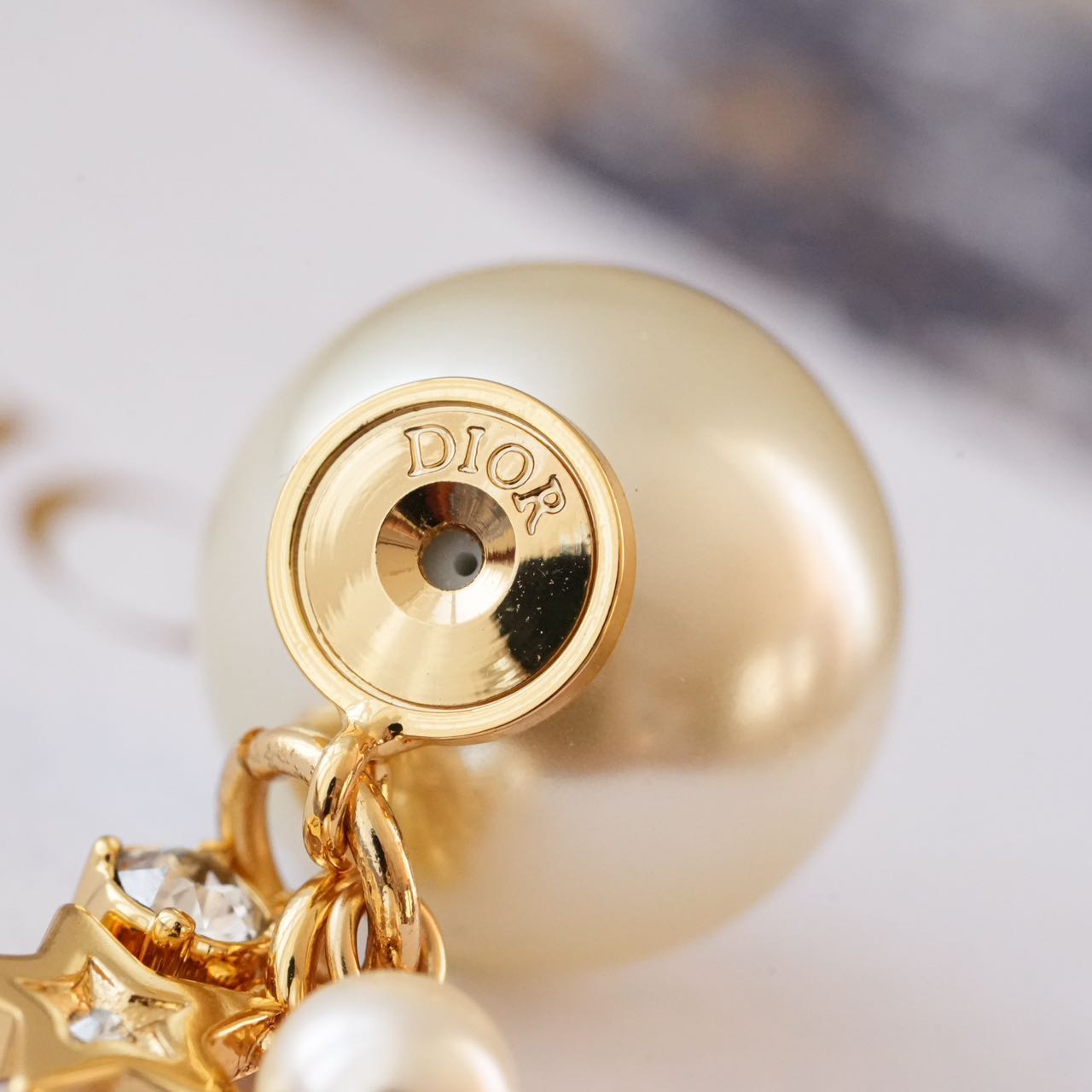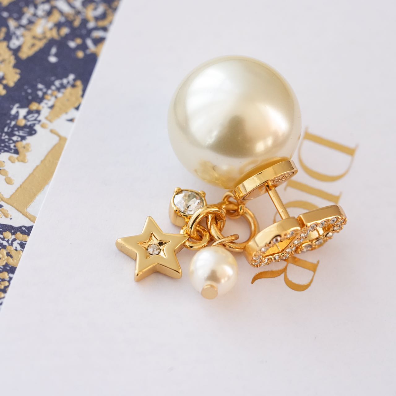 1️⃣【在款式设计上】: 经典的CDlogo基础上加上了星星造型,饰以奢华高贵的浅金色,既有圆润饱满的温柔气质,又有配冷冽的金属风范儿,整体低调奢华,设计个性又时尚,简约大方,日常搭配的点睛之笔!!无论点缀一袭优雅知性的连衣裙,还是帅气干练的通勤装,它仿佛自带一种魔力,高贵冷艳,优雅脱俗,恰到好处的点缀总是能呈现出女人的千面时尚!!真的是爱了,这CD标志、璀璨小星星、白色树脂珍珠、流苏设计、经典Tribales造型珍珠吊坠耳钉,让人上身的瞬间,一眼万年!!