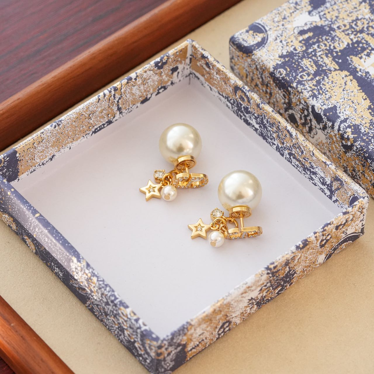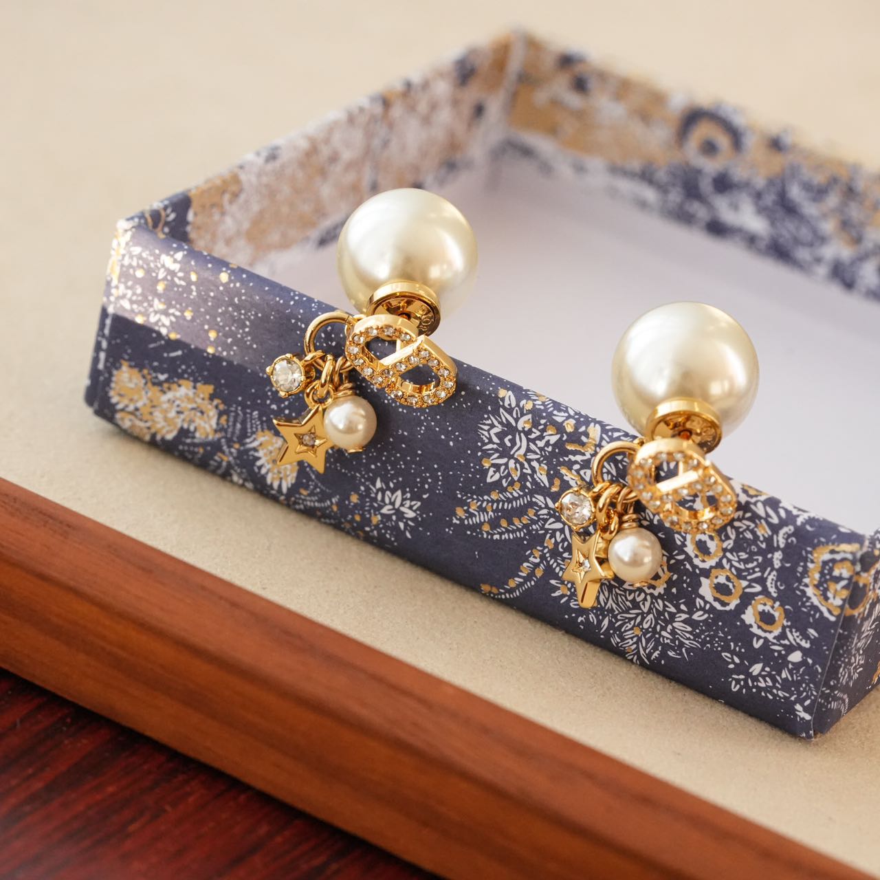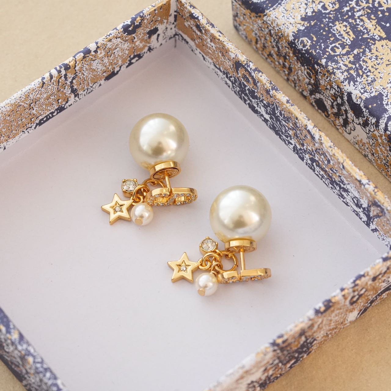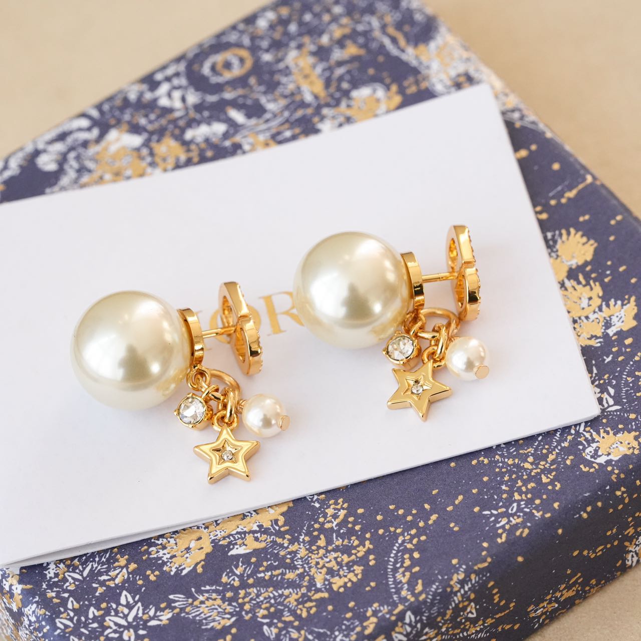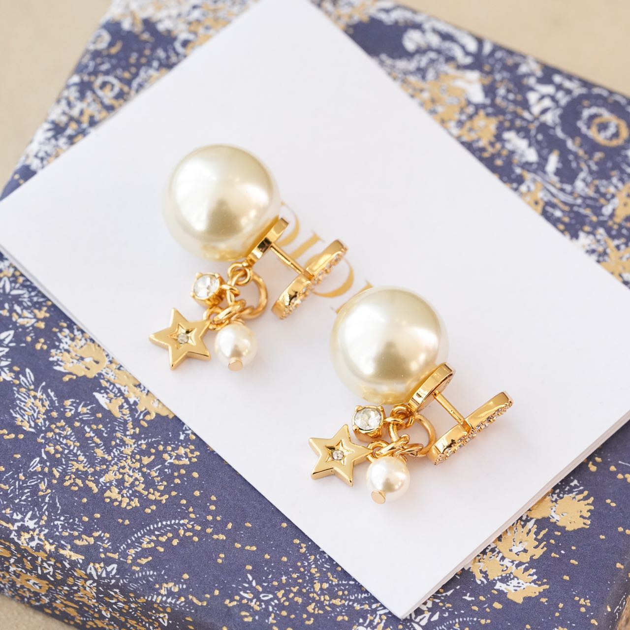 1️⃣【在款式设计上】: 经典的CDlogo基础上加上了星星造型,饰以奢华高贵的浅金色,既有圆润饱满的温柔气质,又有配冷冽的金属风范儿,整体低调奢华,设计个性又时尚,简约大方,日常搭配的点睛之笔!!无论点缀一袭优雅知性的连衣裙,还是帅气干练的通勤装,它仿佛自带一种魔力,高贵冷艳,优雅脱俗,恰到好处的点缀总是能呈现出女人的千面时尚!!真的是爱了,这CD标志、璀璨小星星、白色树脂珍珠、流苏设计、经典Tribales造型珍珠吊坠耳钉,让人上身的瞬间,一眼万年!!