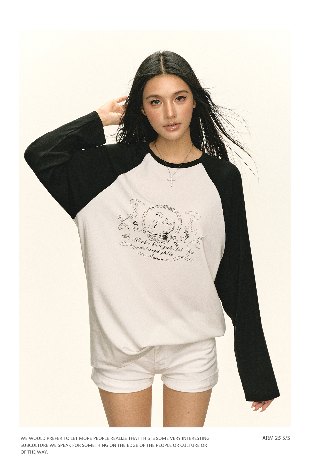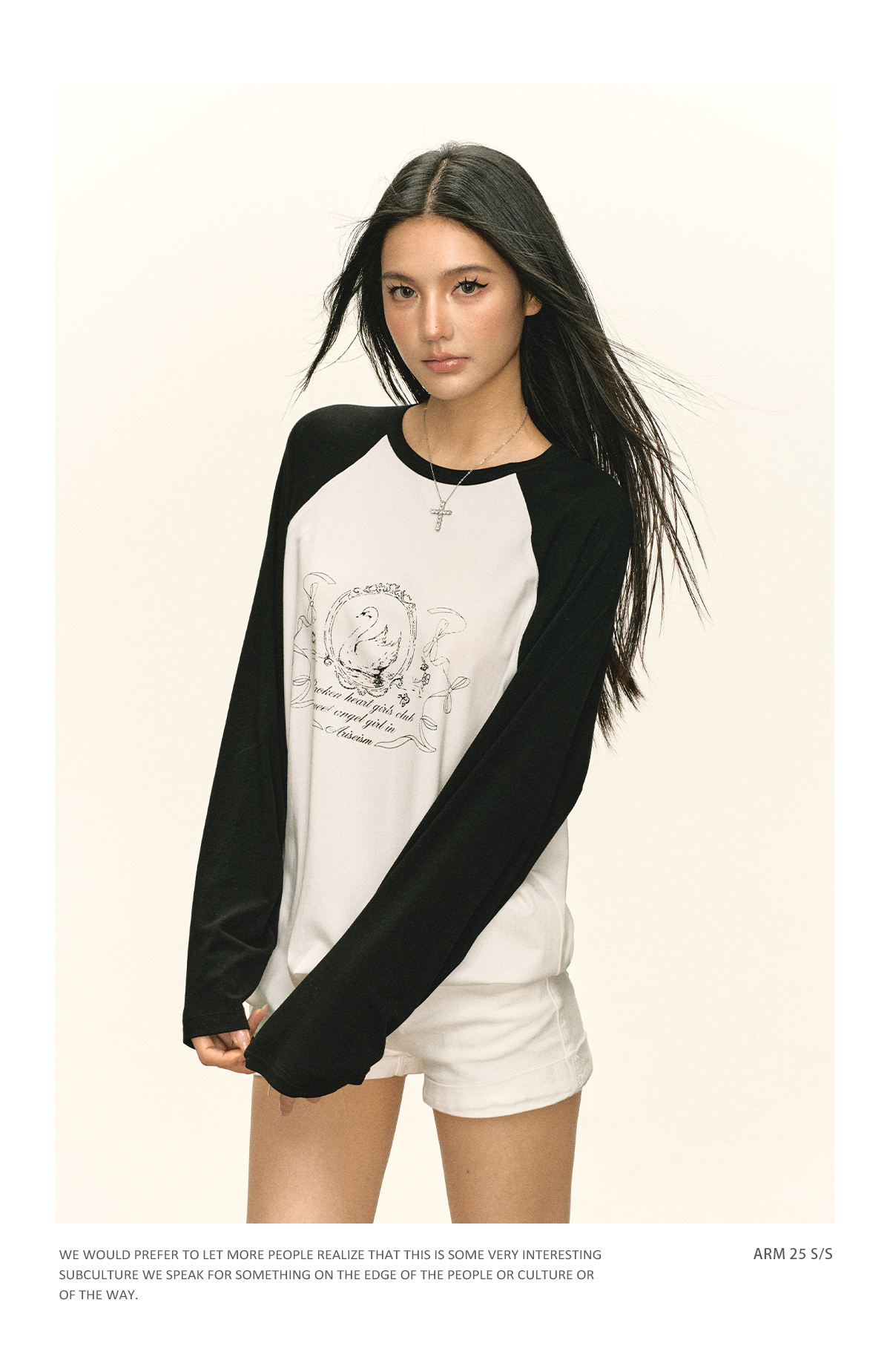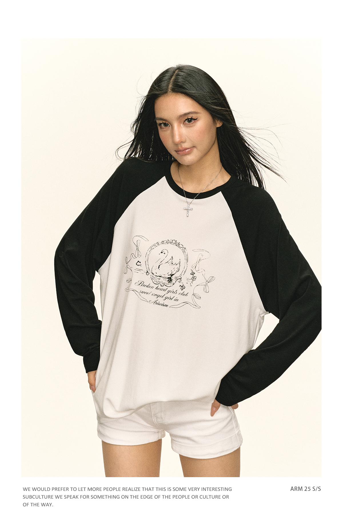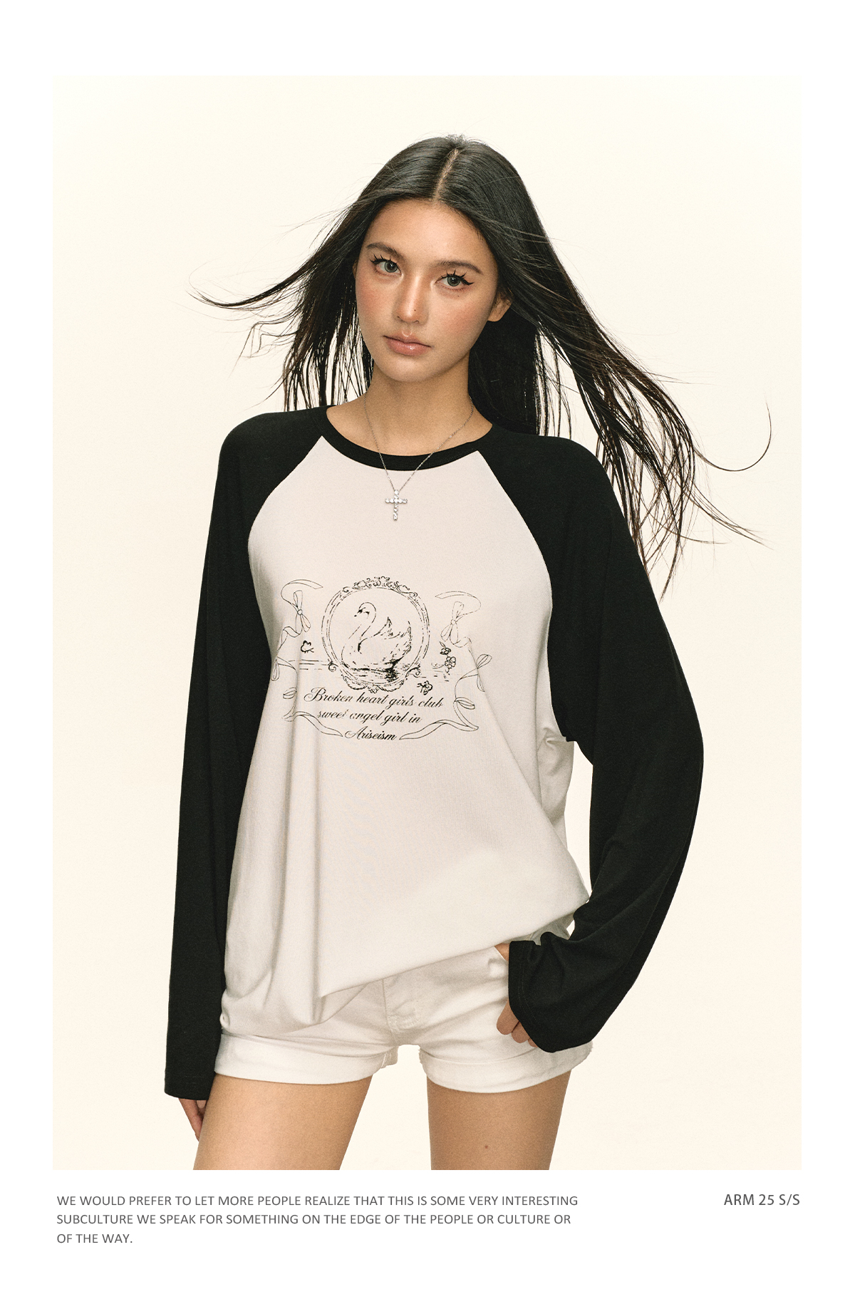 Ariseism 美式复古设计感印花长袖T恤女秋季新款插肩袖上衣