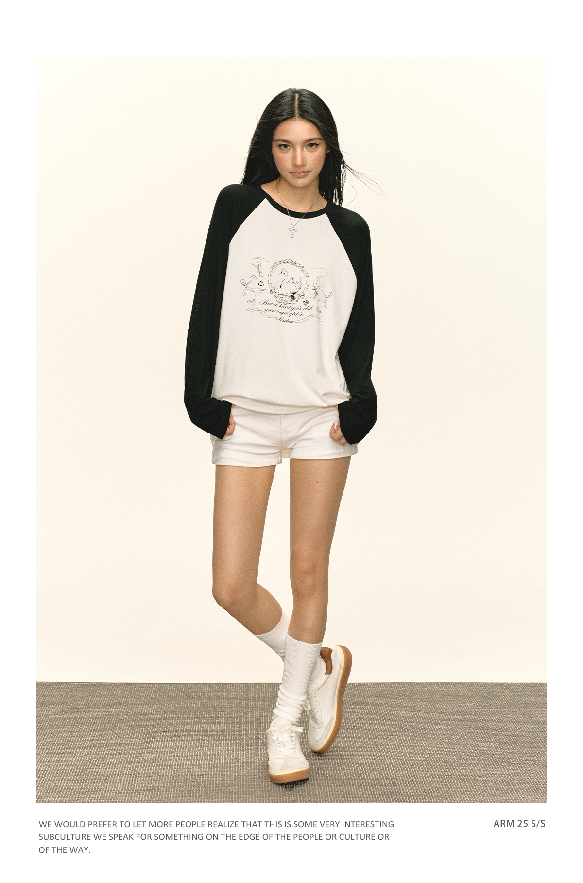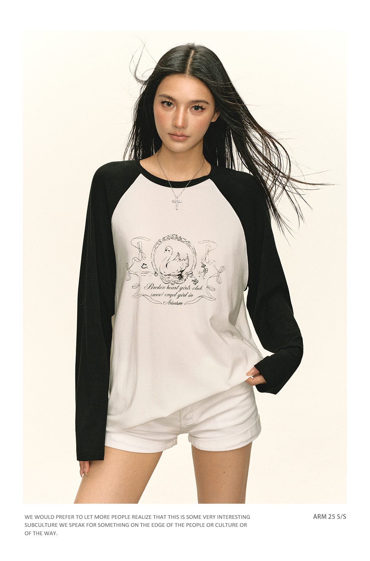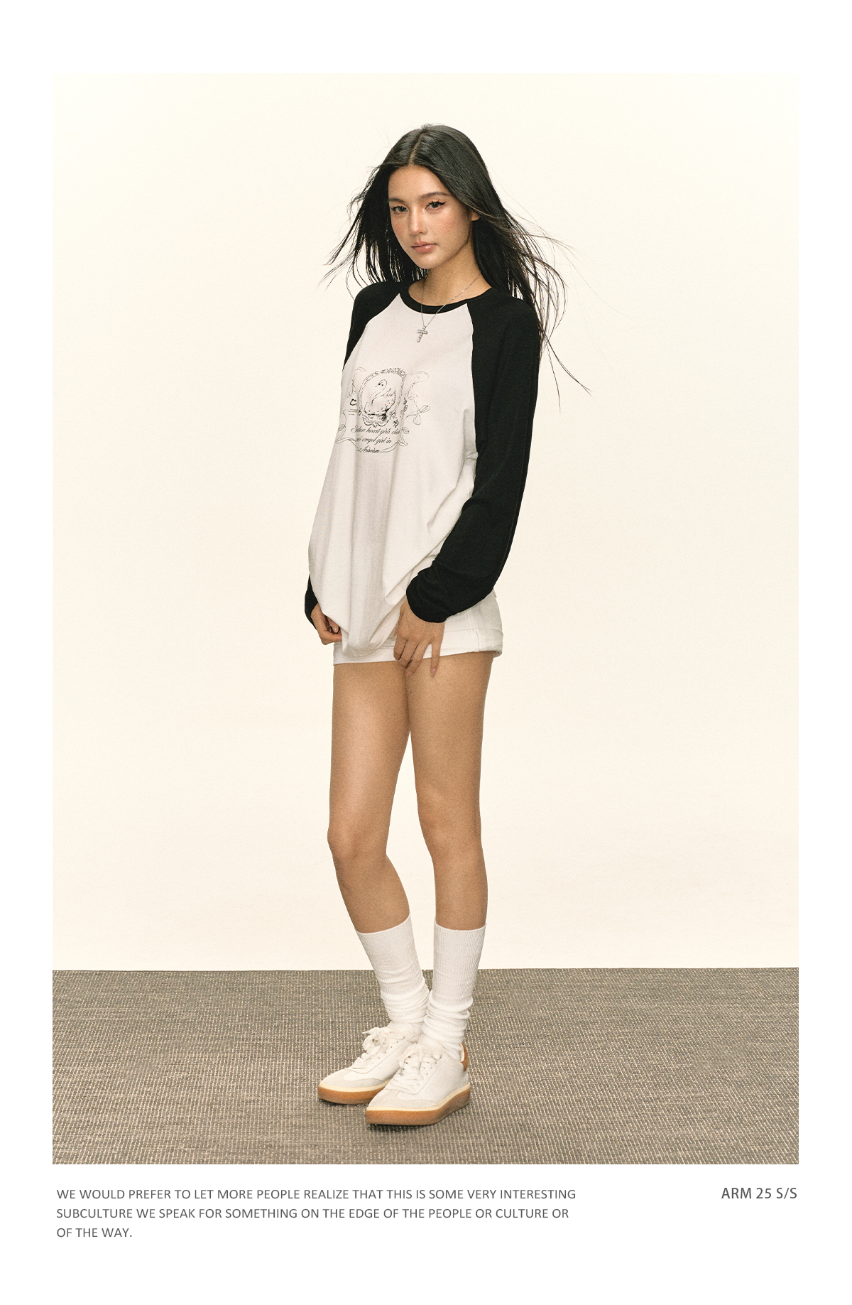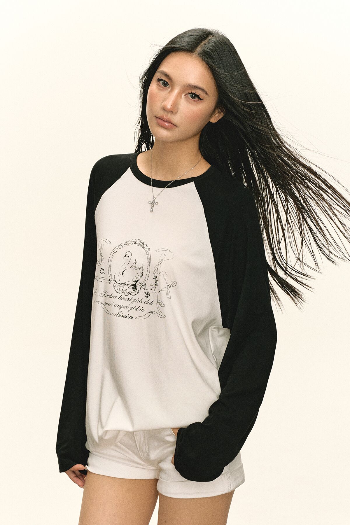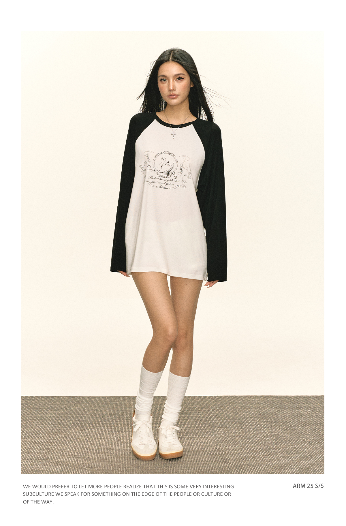 Ariseism 美式复古设计感印花长袖T恤女秋季新款插肩袖上衣