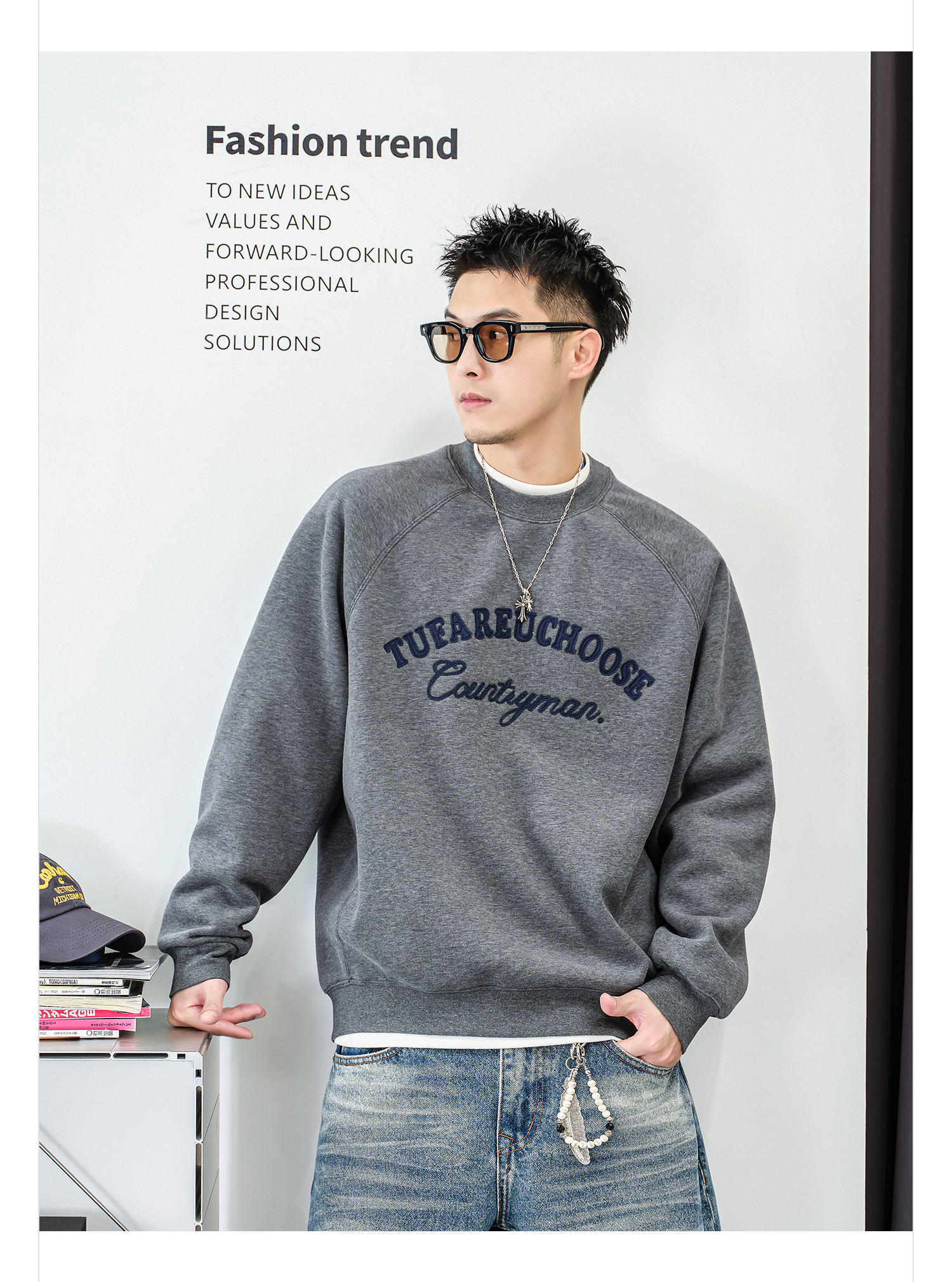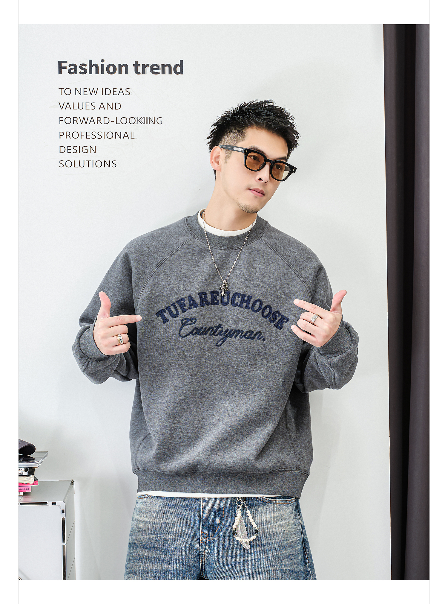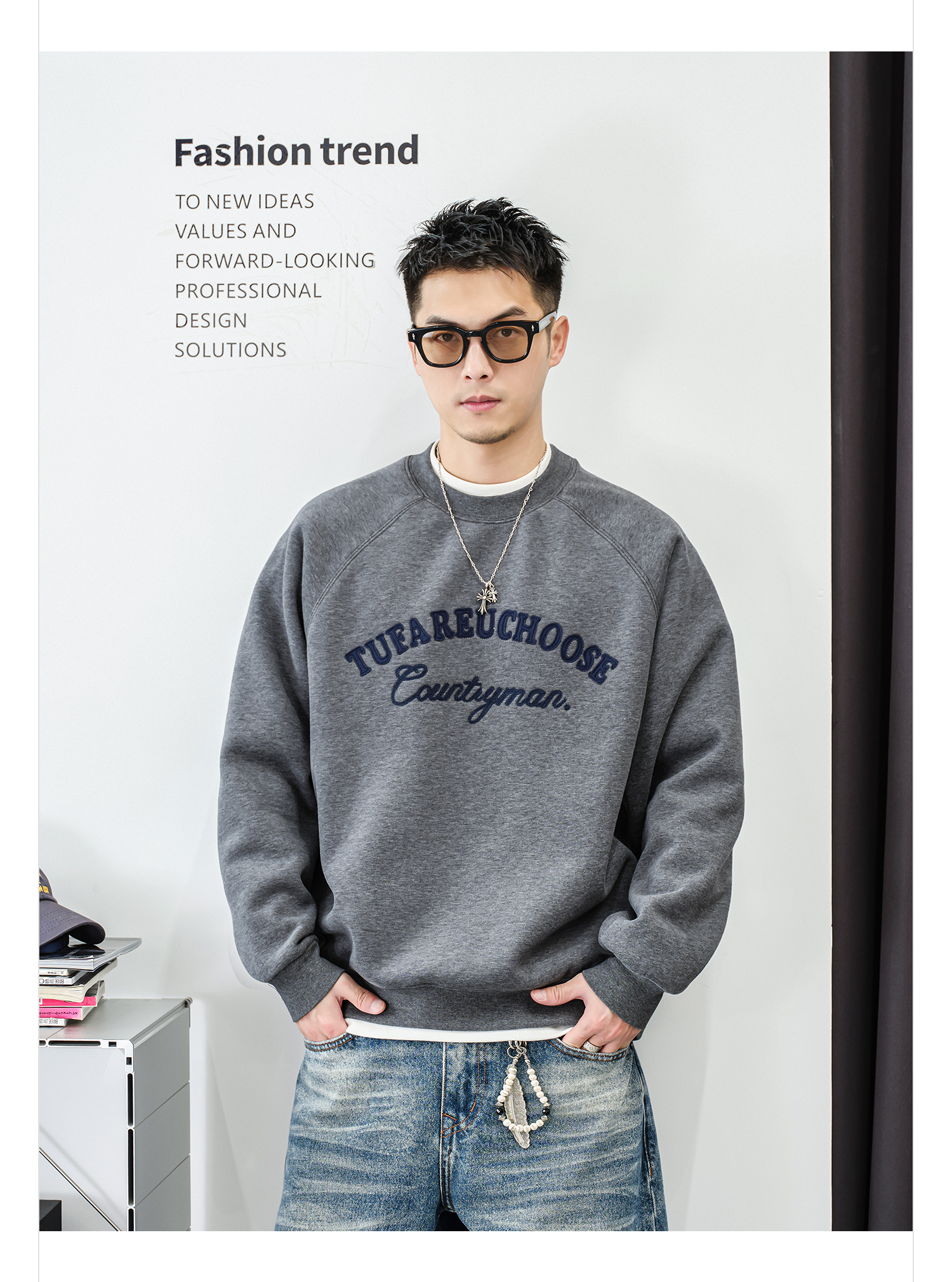 徐太浪【街头风 字母刺绣】加绒卫衣男秋冬款内搭休闲打底衫上衣
