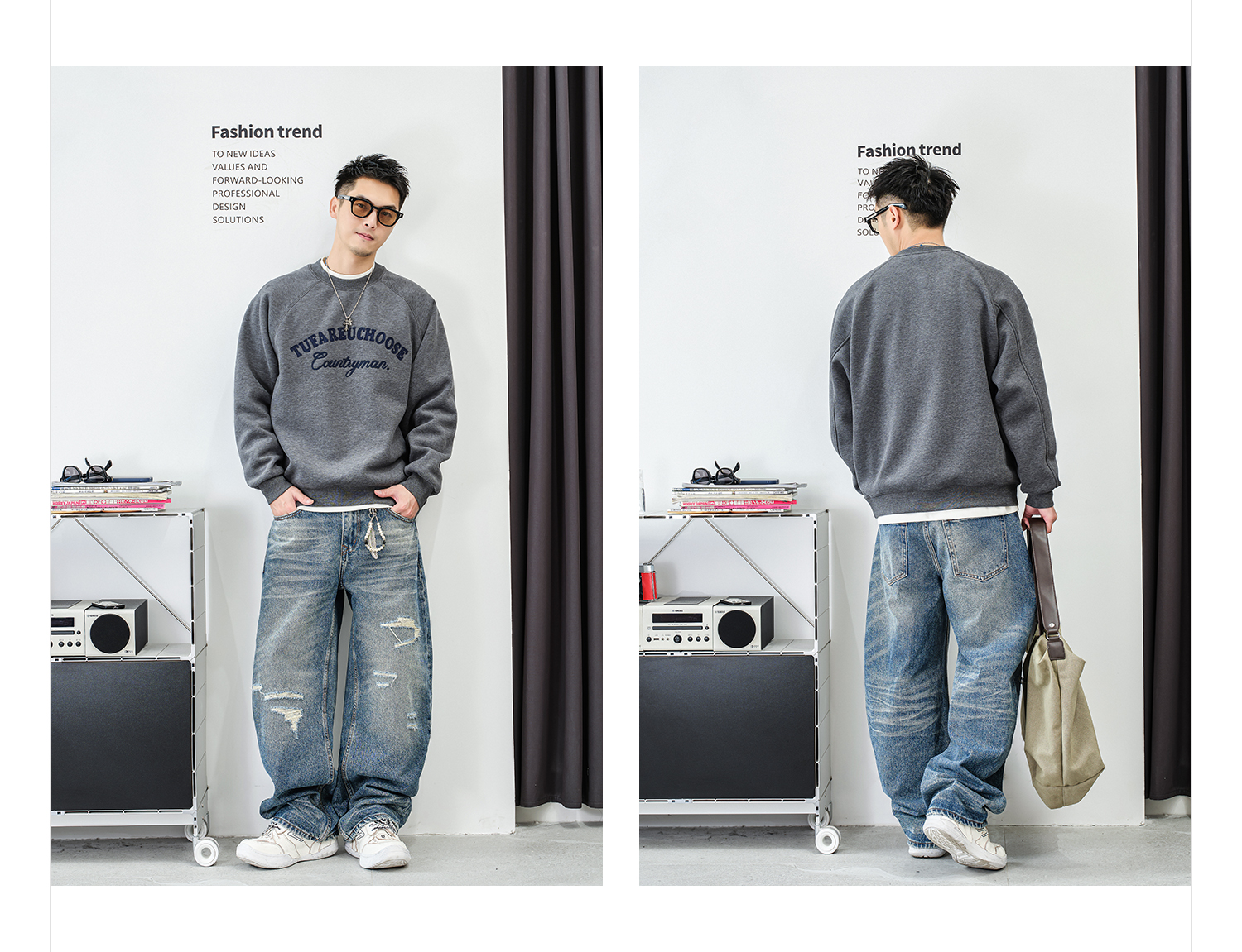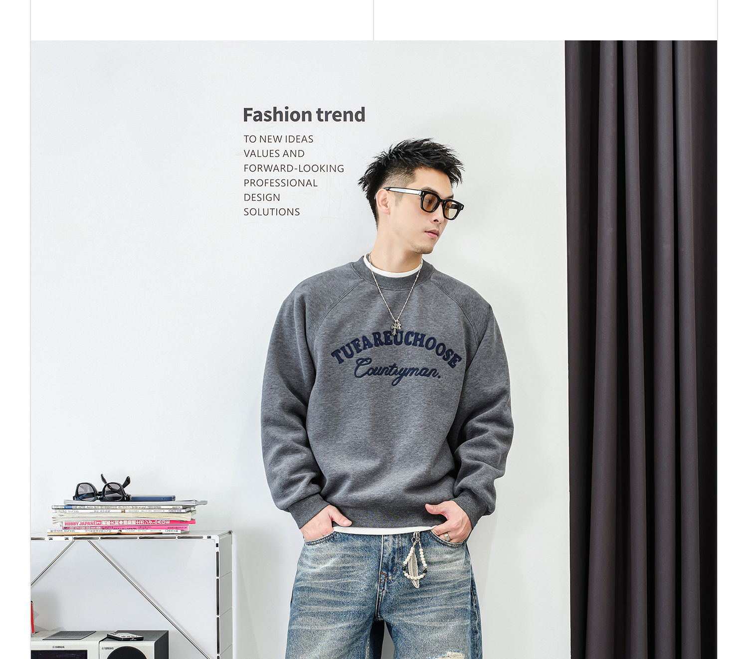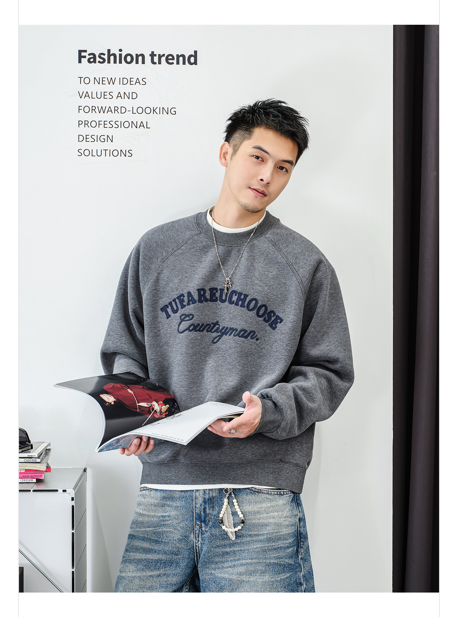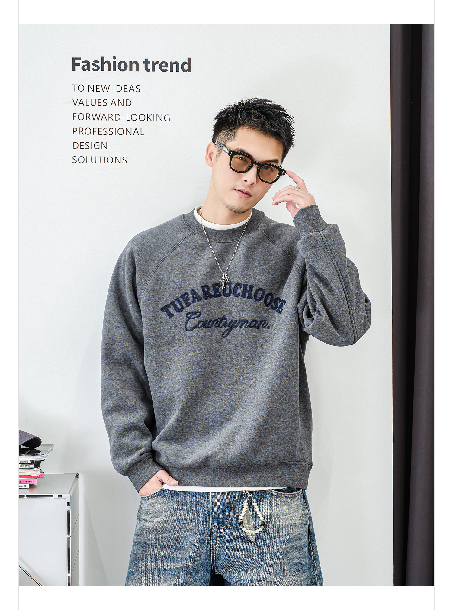 徐太浪【街头风 字母刺绣】加绒卫衣男秋冬款内搭休闲打底衫上衣