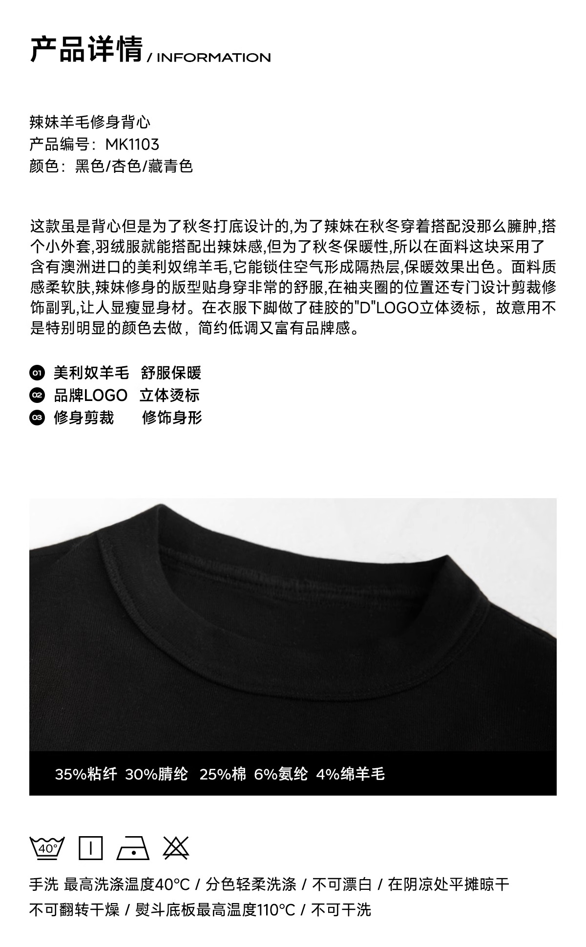 FDR 美利奴羊毛背心女修身保暖运动t恤紧身透气无袖上衣