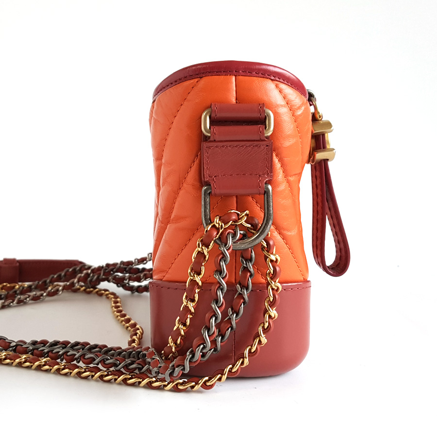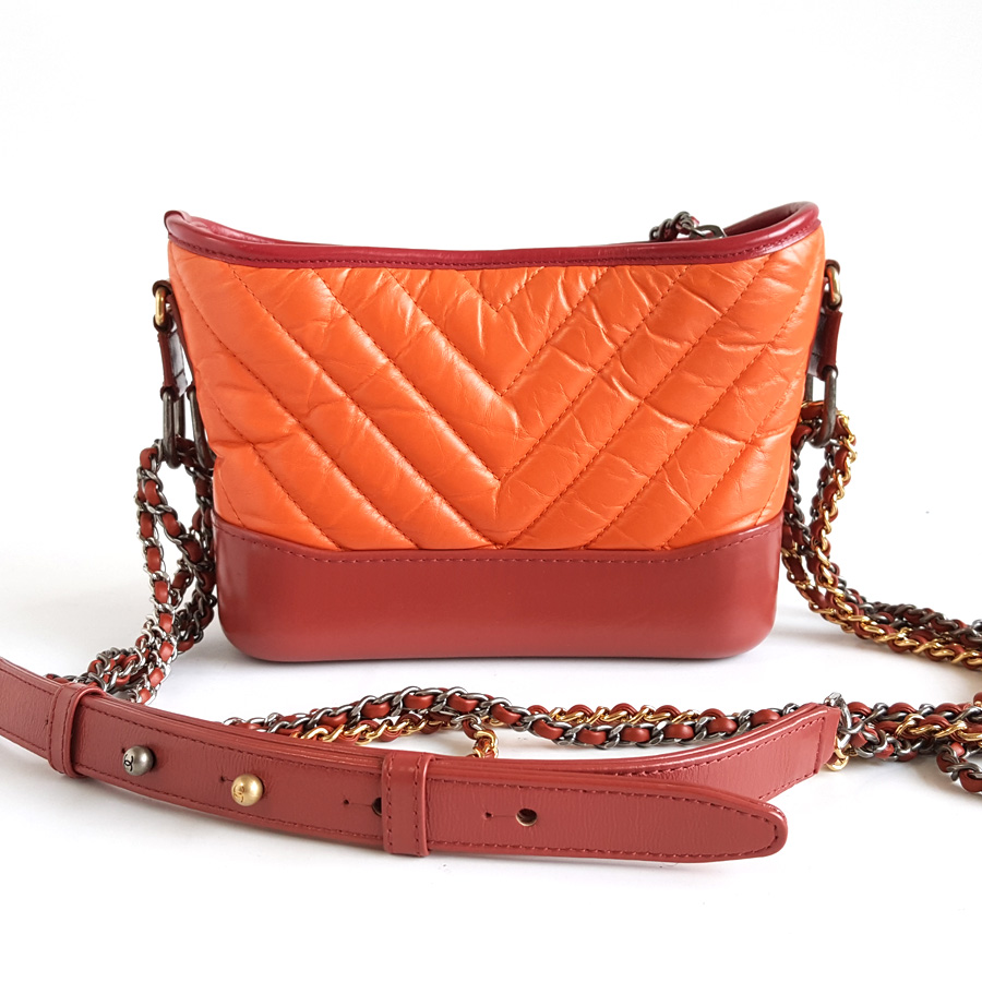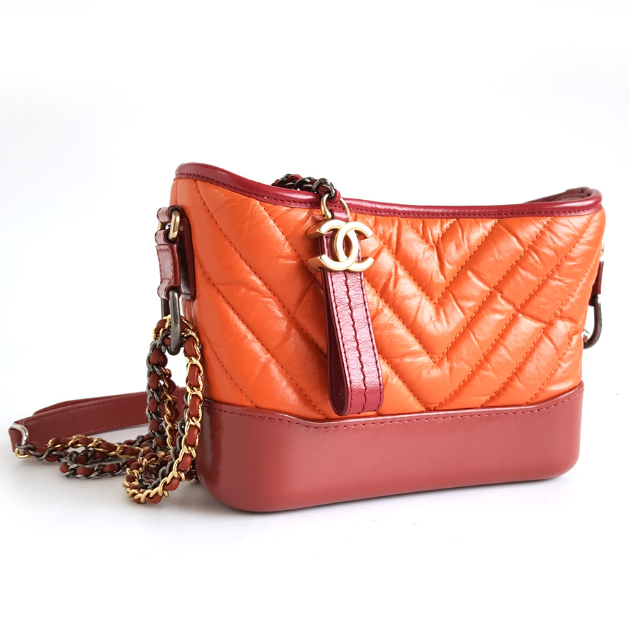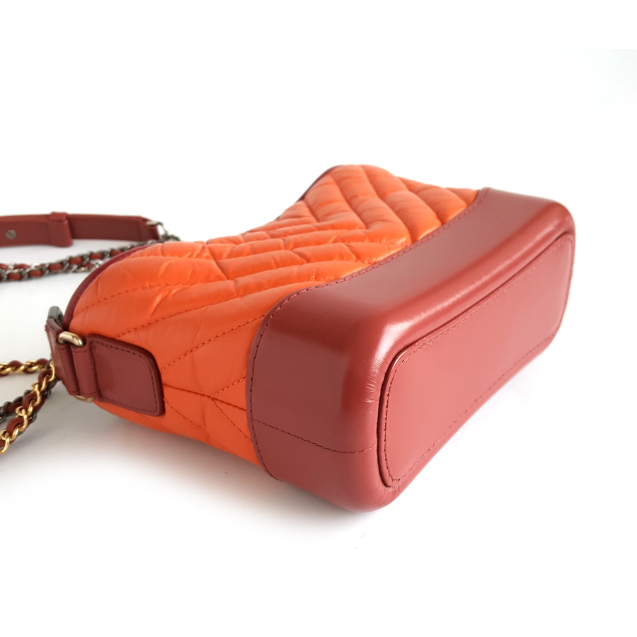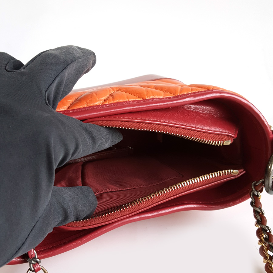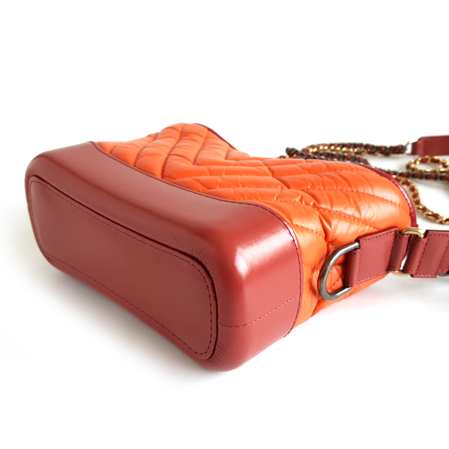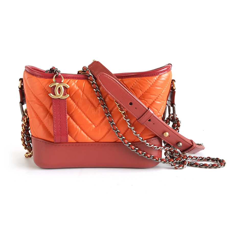 【95新】CHANEL香奈儿Gabrielle系列A91810 Y83983 K1164小号红橘拼色V纹Gabrielle流浪包单肩斜挎包女士 311225AK19