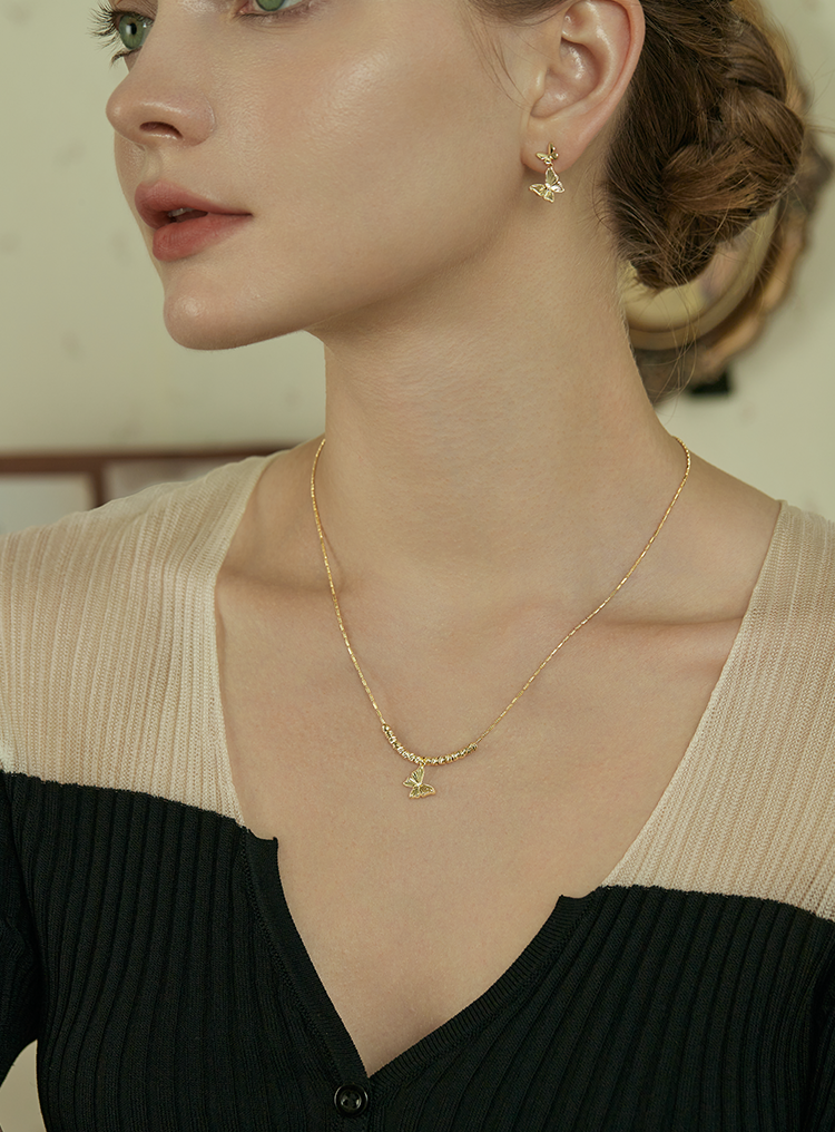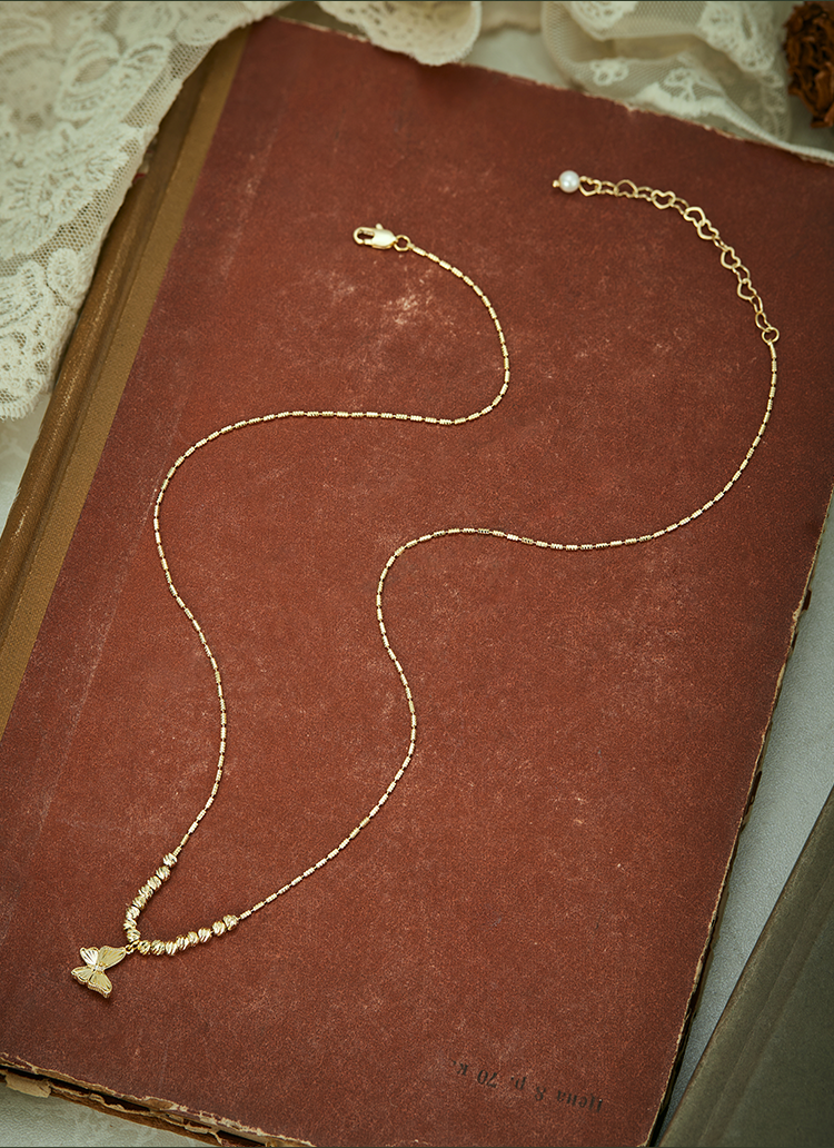 Oflye潮流饰品 金色蝴蝶项链新款轻奢设计感高级颈链配饰
