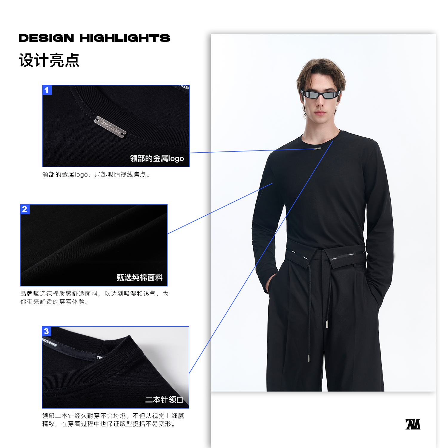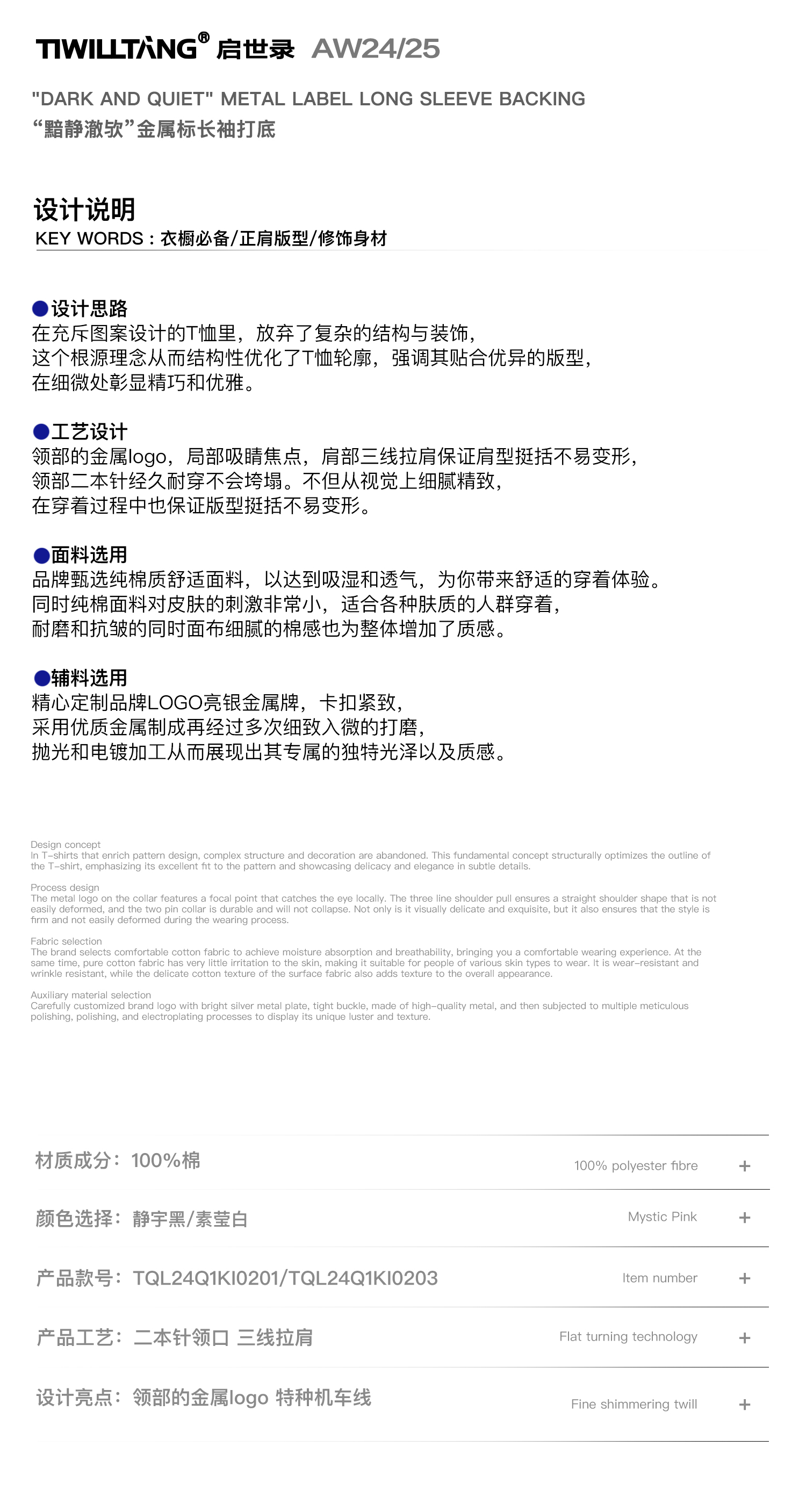 TIWILLTANG启世录“黯静澈欤”基础升级长袖上衣宽松打底T恤薄款
