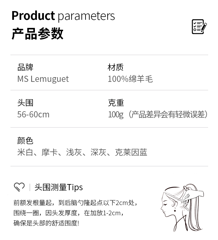 【第二件立减10元】MS Lemuguet 羊毛针织帽 | 柔软亲肤保暖锁温 佩戴舒适 双层加厚加大 男女可戴