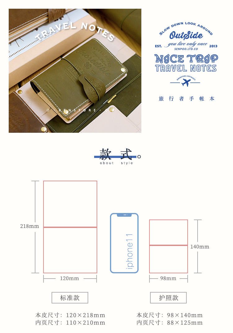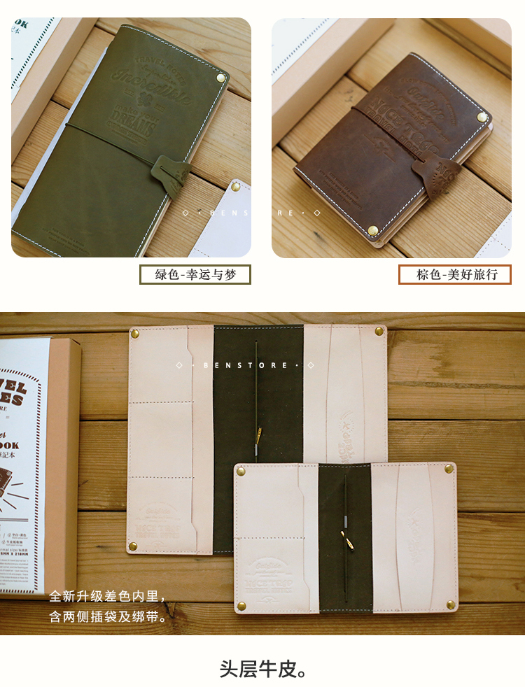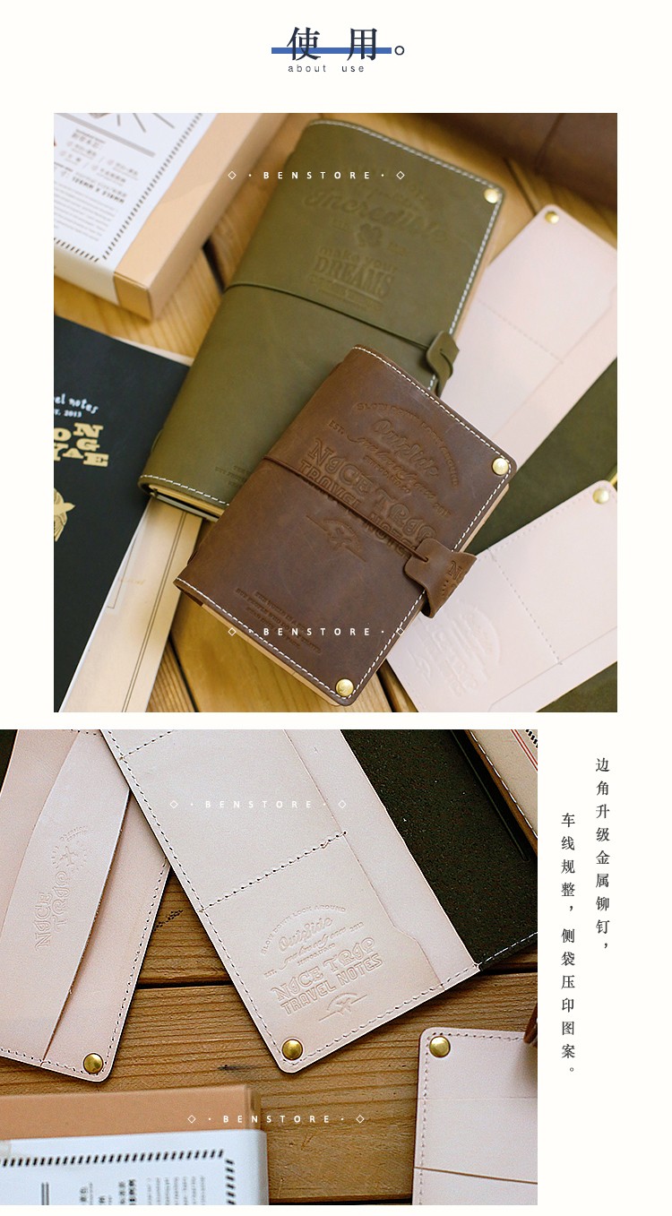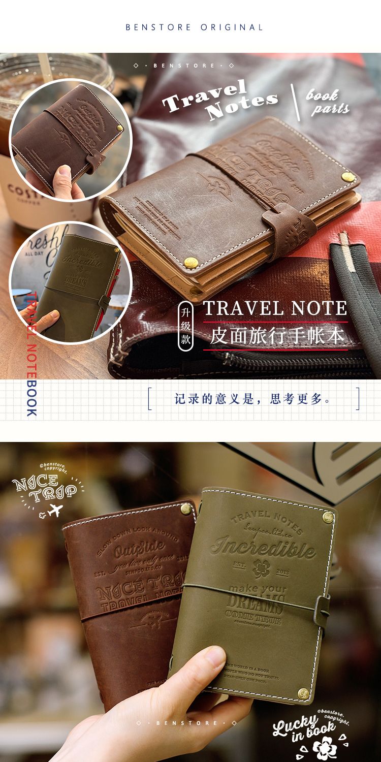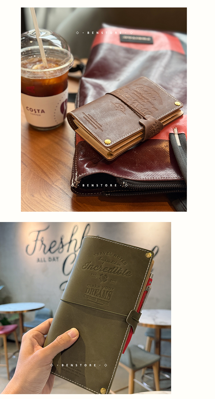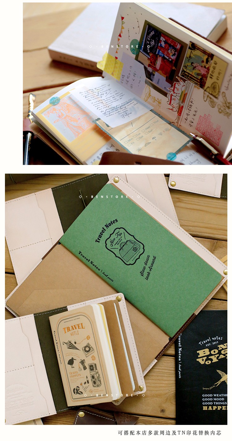 本子事多 真皮TN改造款旅行护照夹手账本 植鞣牛皮日记手帐笔记本