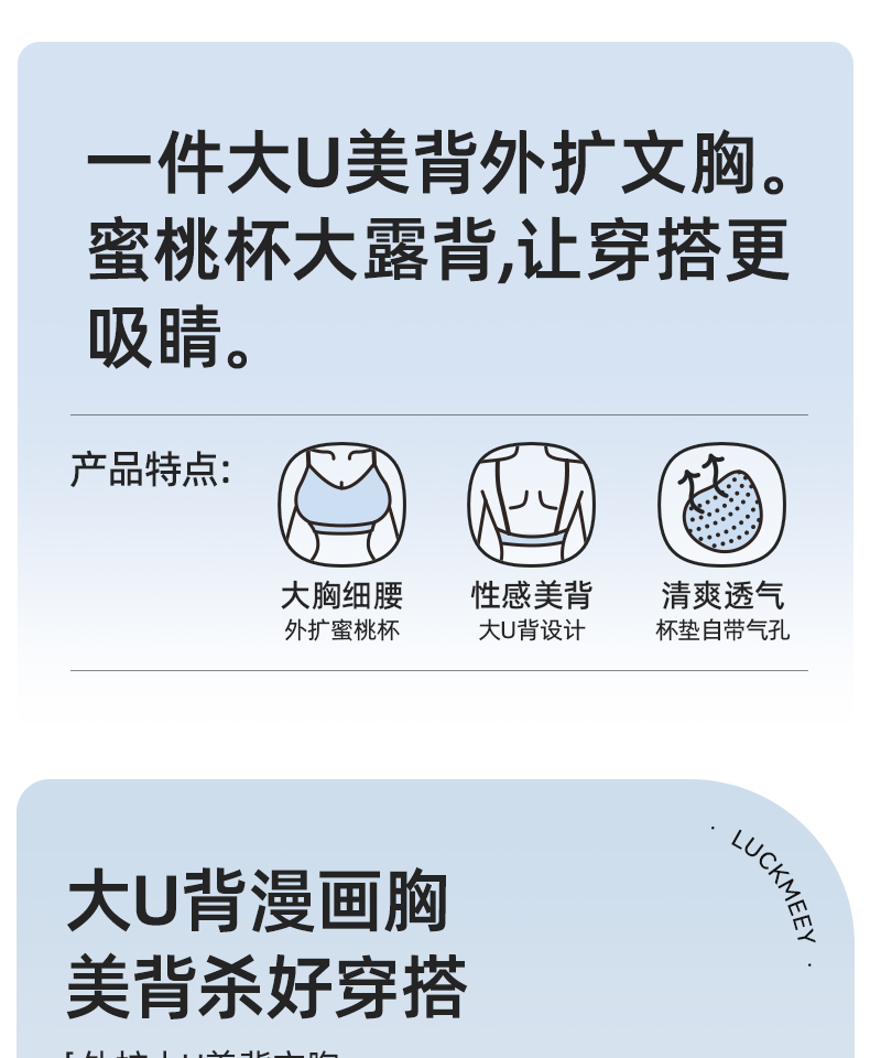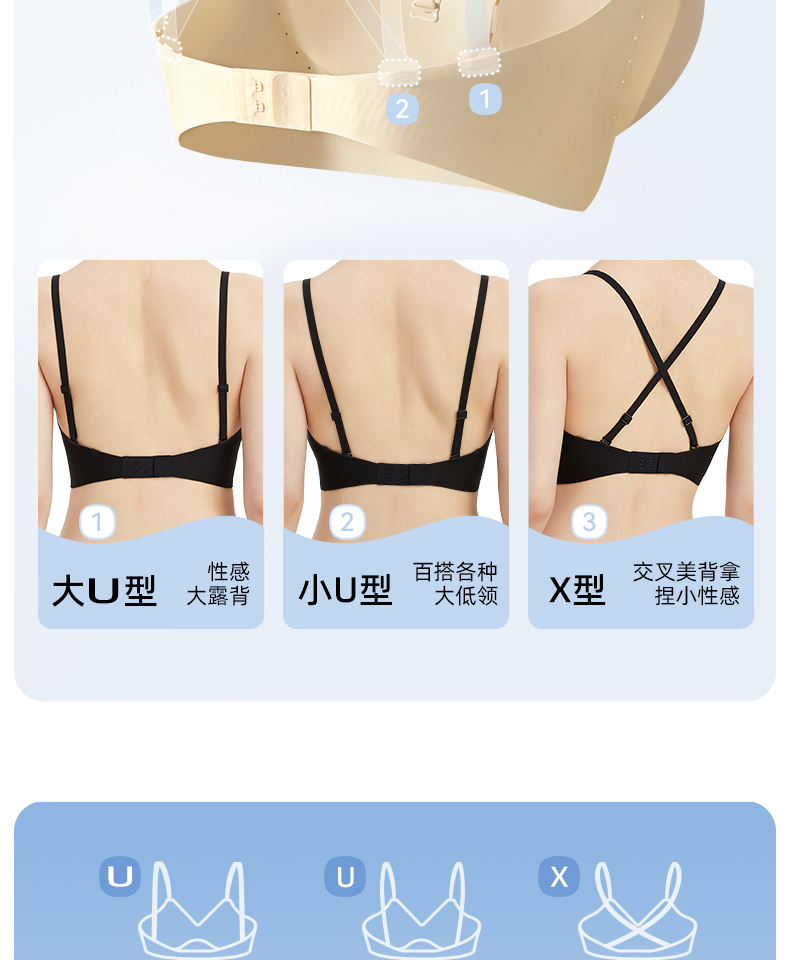 幸棉 Soft系列外扩大U背无痕内衣 透气美背文胸