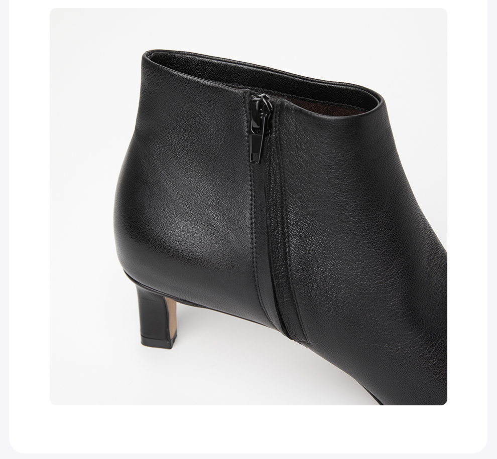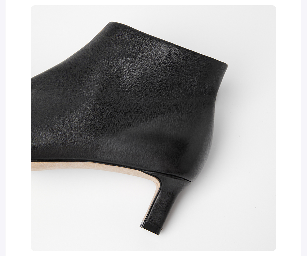 ROMI STUDIO“法式气场”羊皮羊京侧拉链尖头方根短靴 RWCWP36767
