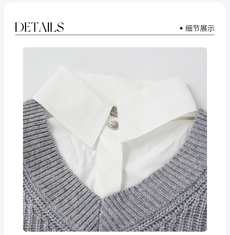 ROMI STUDIO学院风衬衫领可拆卸的羊毛毛衣R29M121