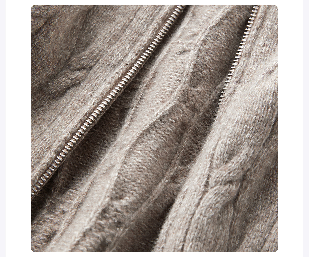 ROMI STUDIO“老钱风”12针羊毛桑蚕丝麻花毛织拉链外套 RWCWSG5602