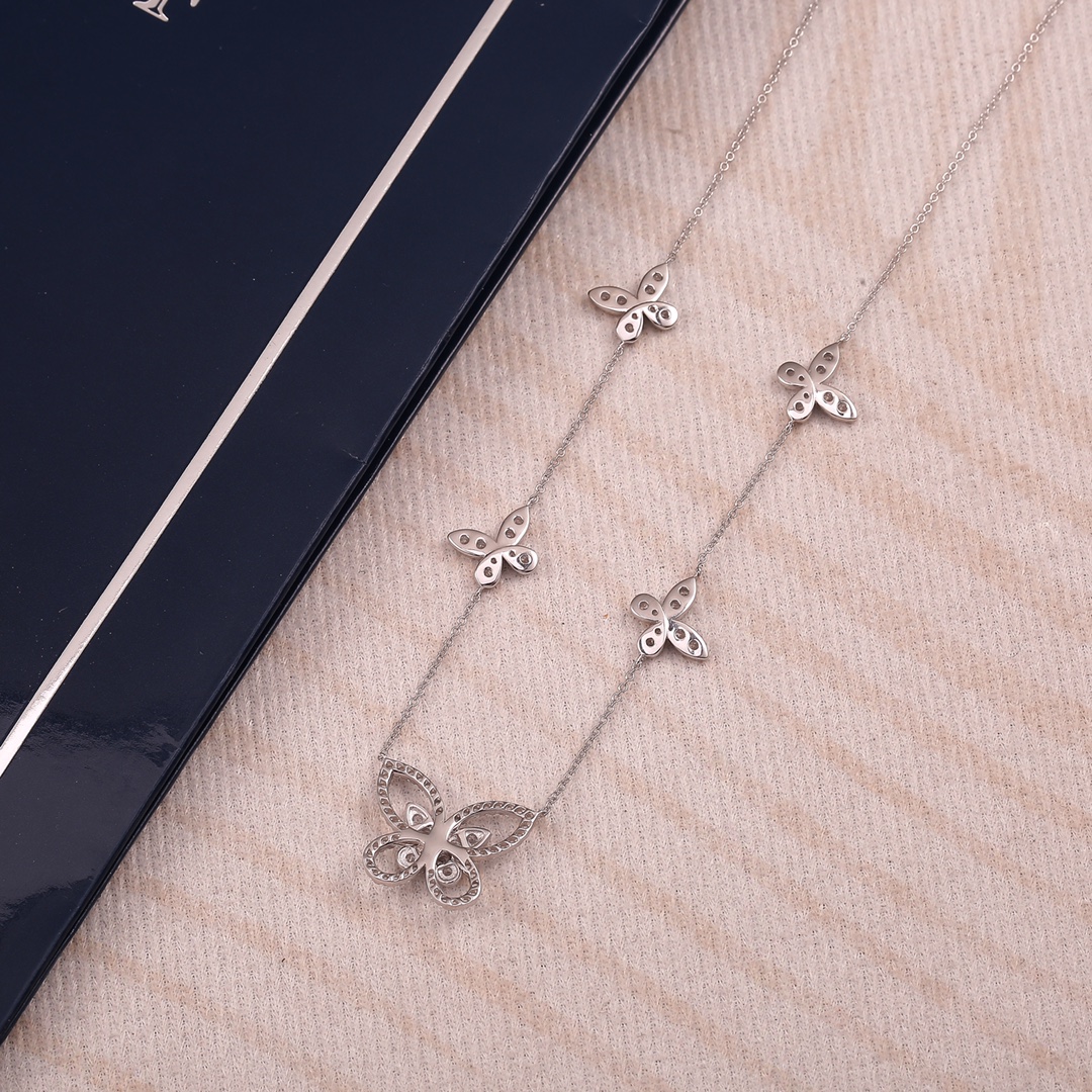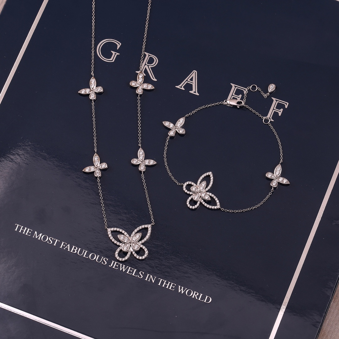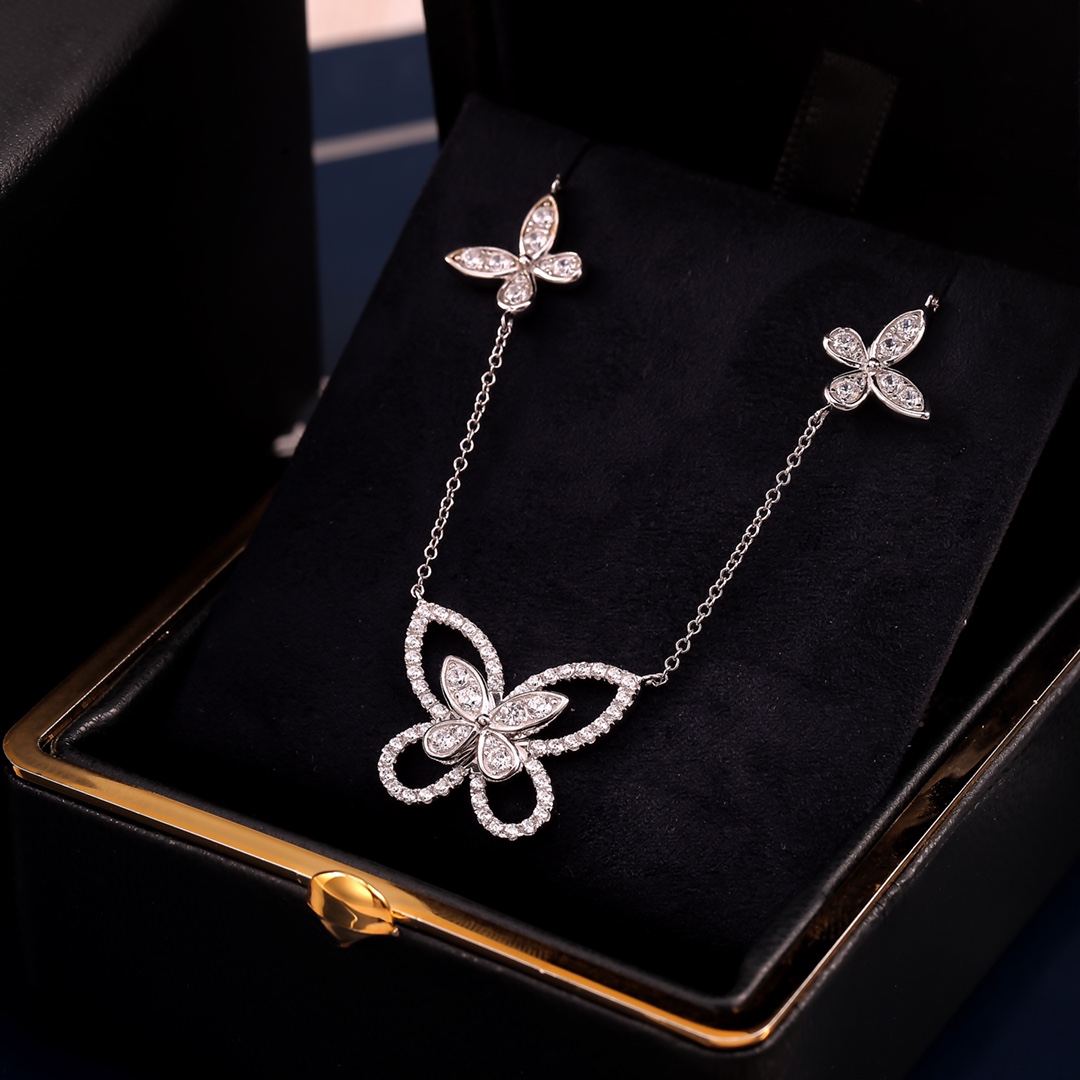 Princess满钻蝴蝶项链 GR@FF的款,高级珠宝的设计大气耐看,很精美的一款蝴蝶项链,翩翩姿态,优雅高贵。镂空仙子能够成就你成为高级仙子,四个小蝴蝶组成,灵动闪现💓幻影蝴蝶作为G家标志性款式,款式的美感毋庸置疑。上身是比较有存在感的一款项链,大小适中不浮夸,搭配裙装超级美。通体925银材质,镶嵌定制进口仿真钻 配精美包装