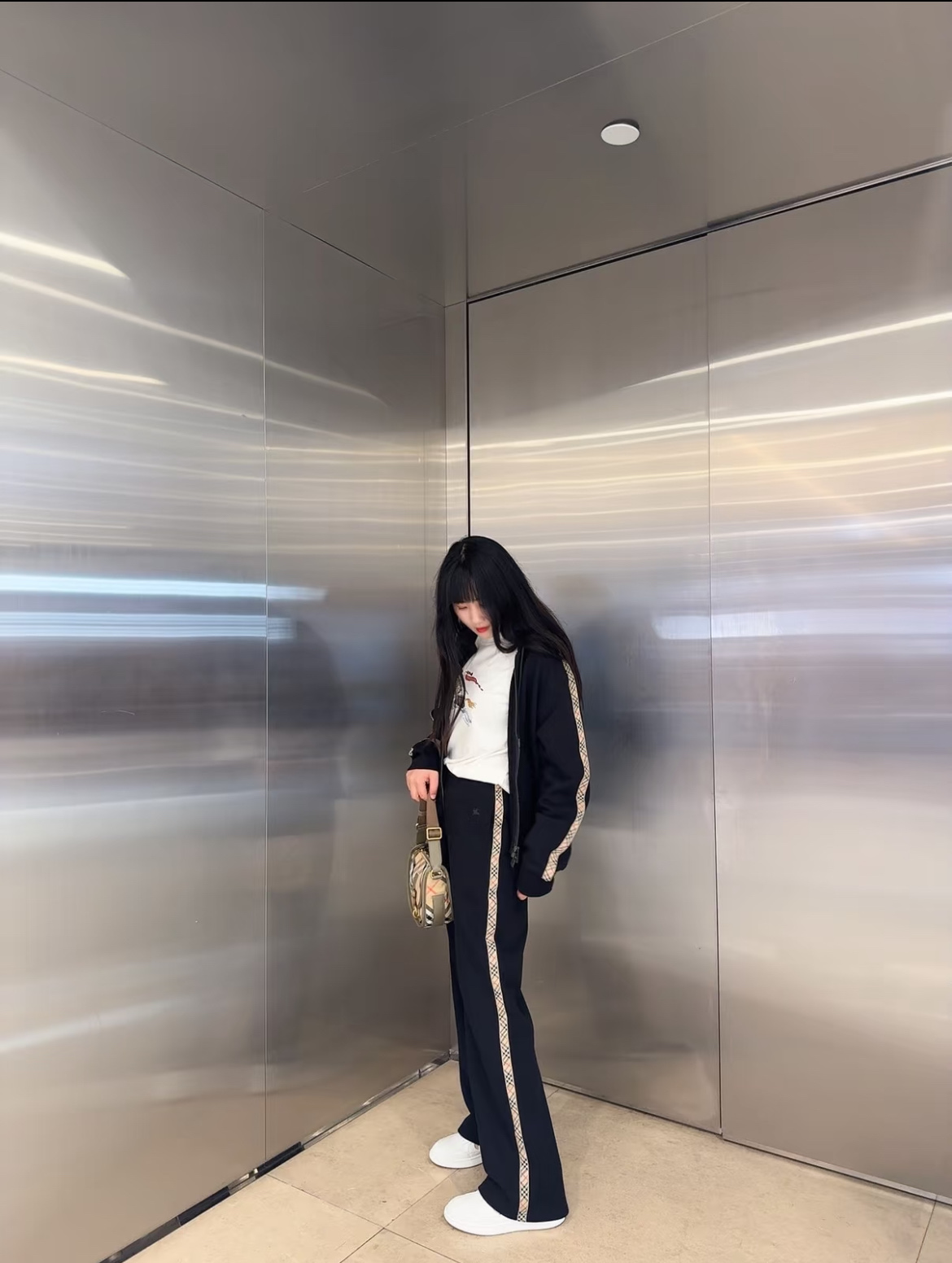 全新系列运动裤 惊喜上市,微喇裤脚设计,搭配精致提花针织格纹饰边,一眼心动,面料质感高级,简约舒适,日常百搭不挑身材,显瘦遮肉,包容性超好,上身无束缚感~版型可塑性极强,轻松穿出大长腿效果,高级感拉满,时髦度爆表,轻松解锁不费力的时尚风格✔️建议成套入手,搭配更出彩👍🏻姐妹们快冲~💨码数SML