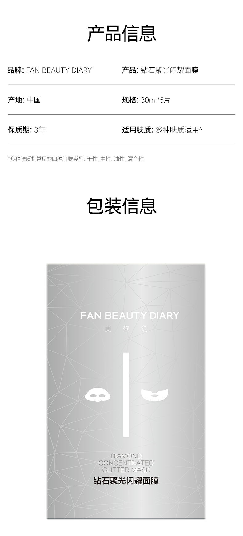 FAN BEAUTY DIARY钻石聚光闪耀面膜5片/盒
