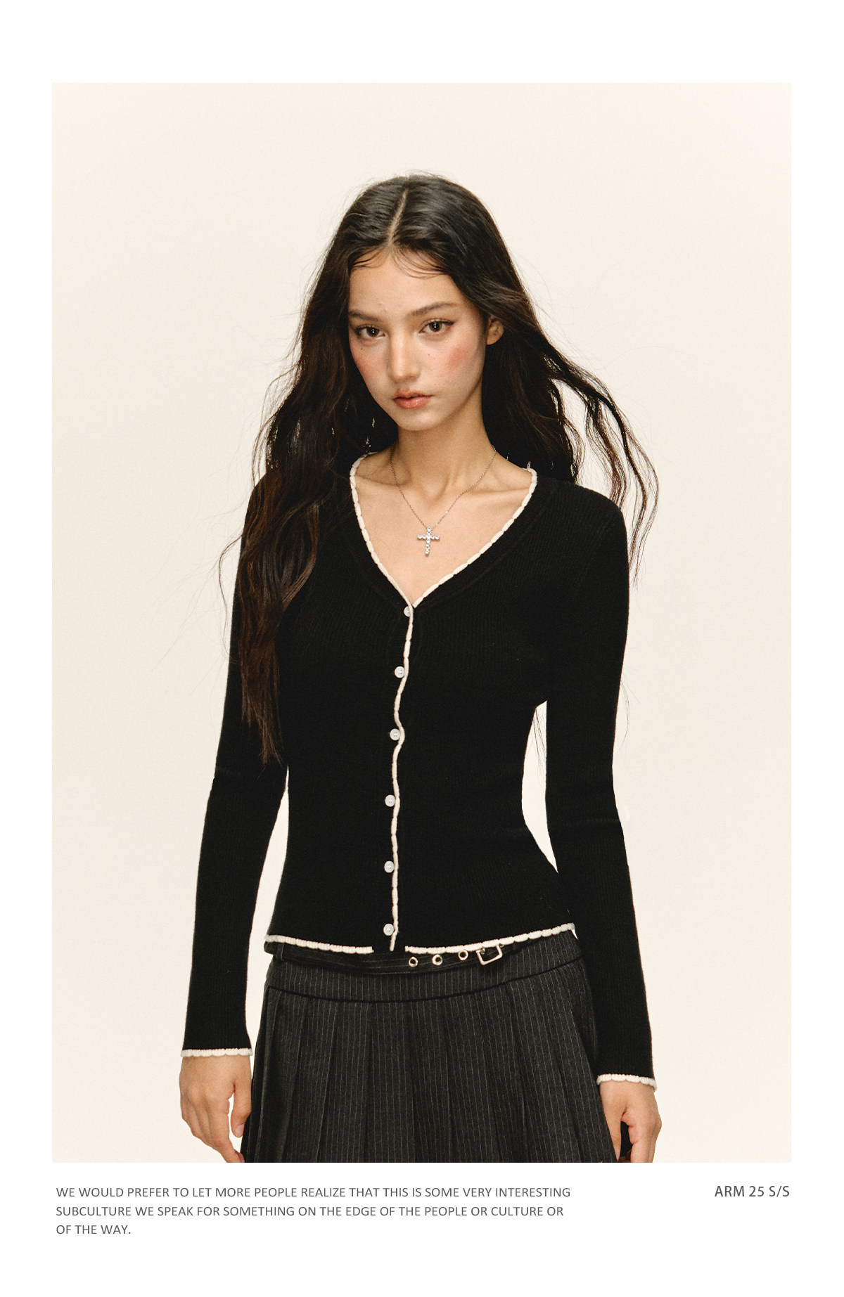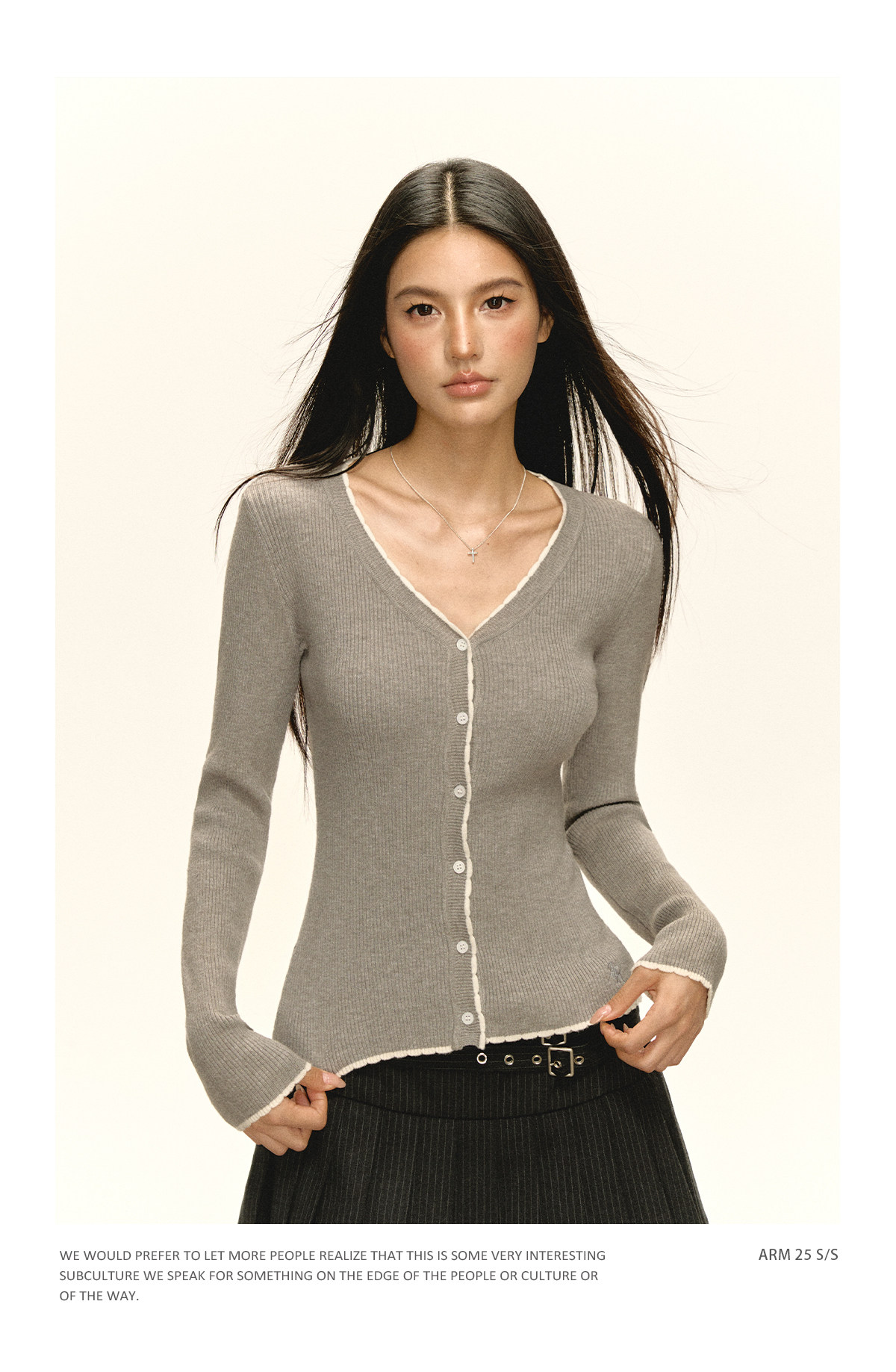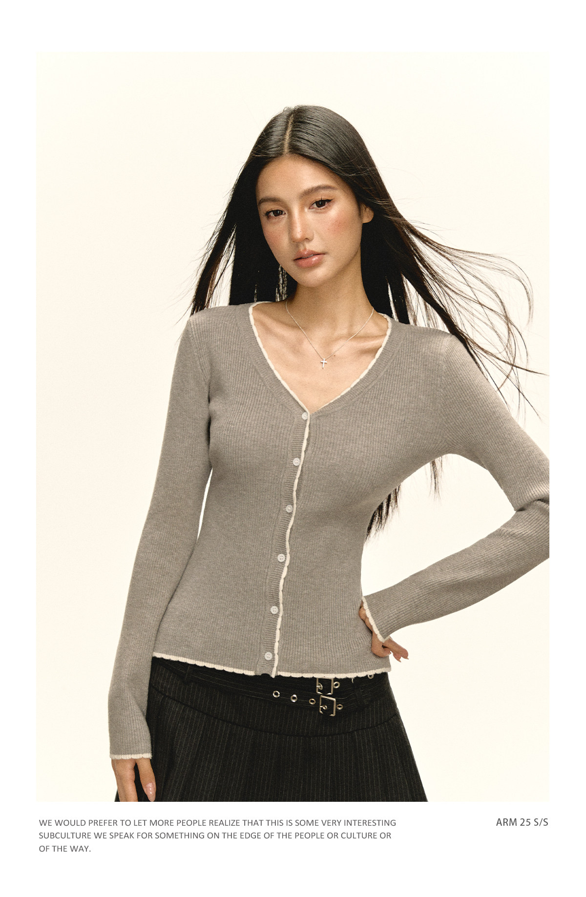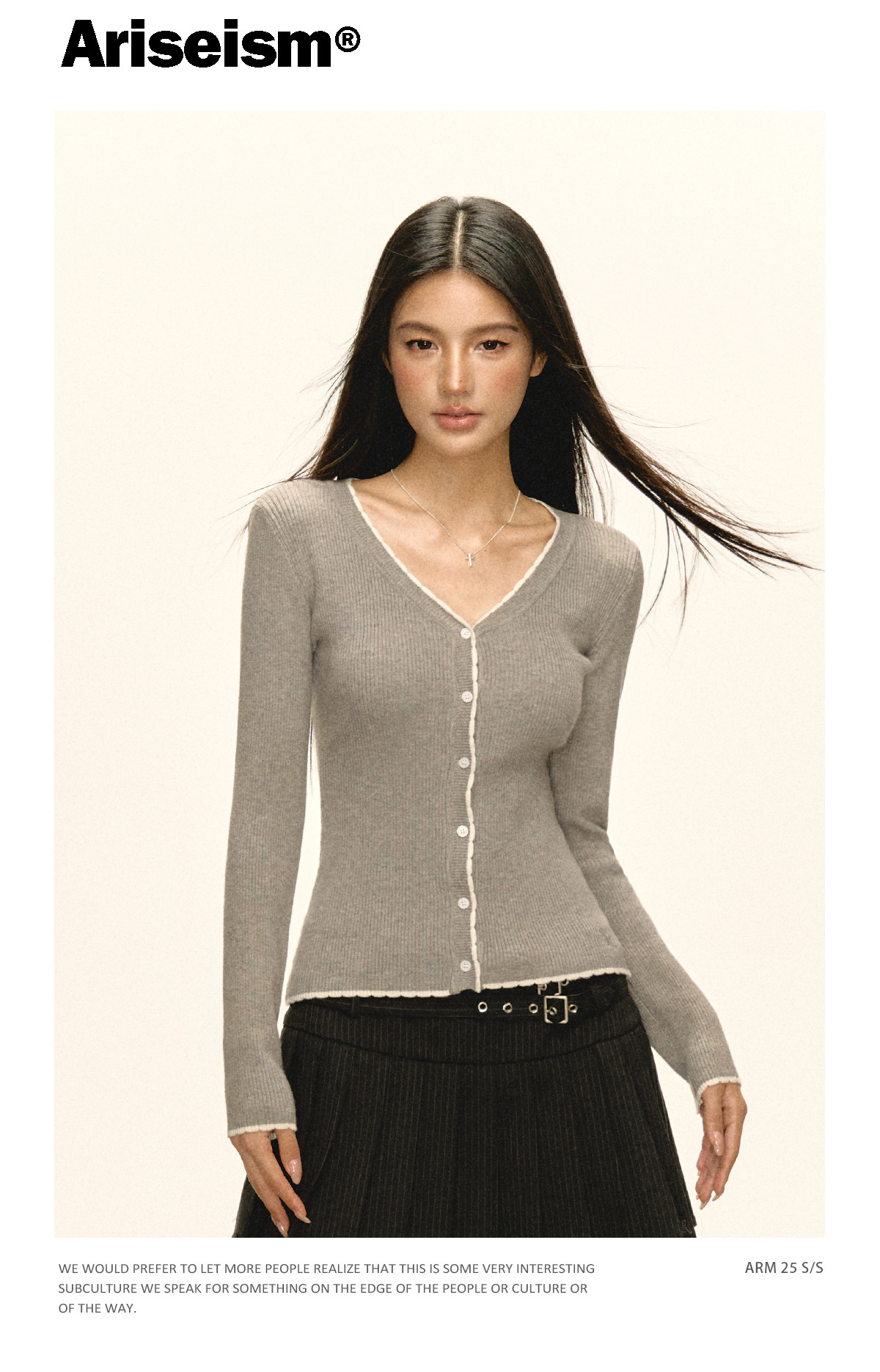 Ariseism 美式复古纯色薄款针织开衫女2025春季新款百搭修身上衣