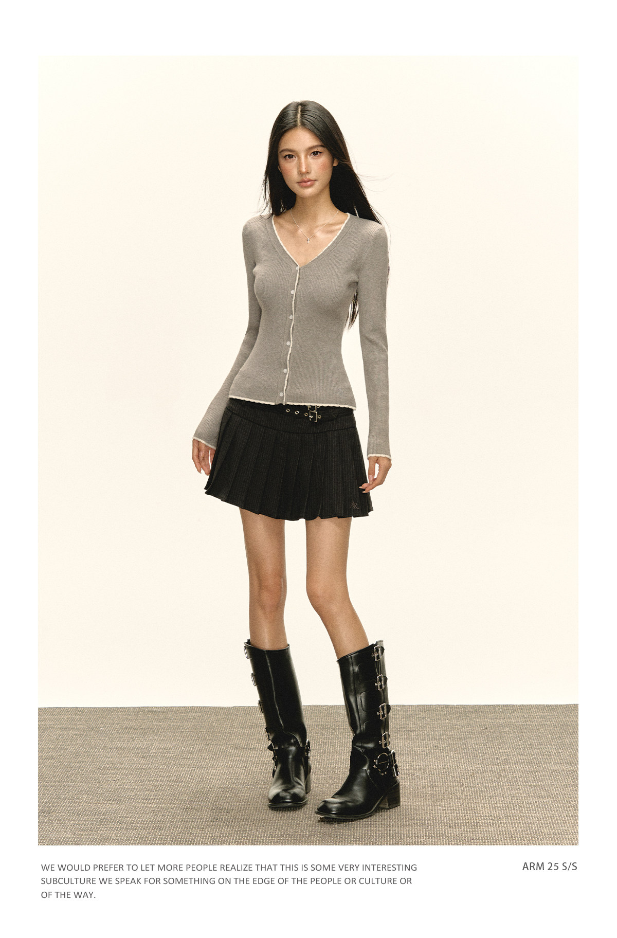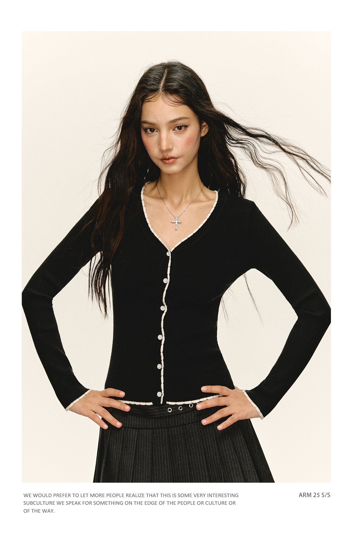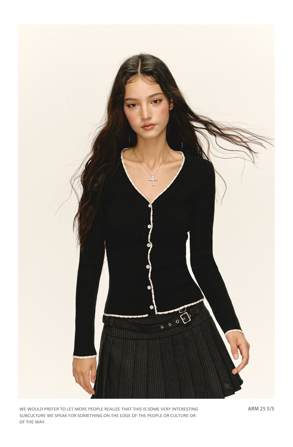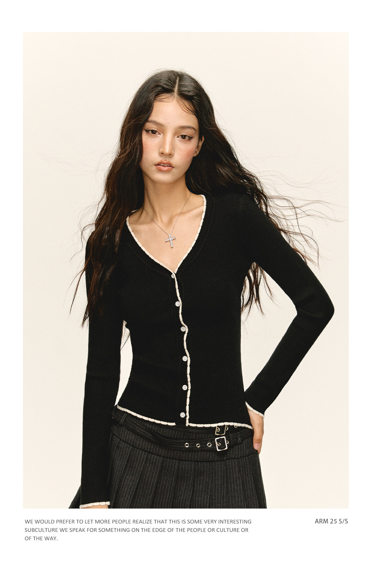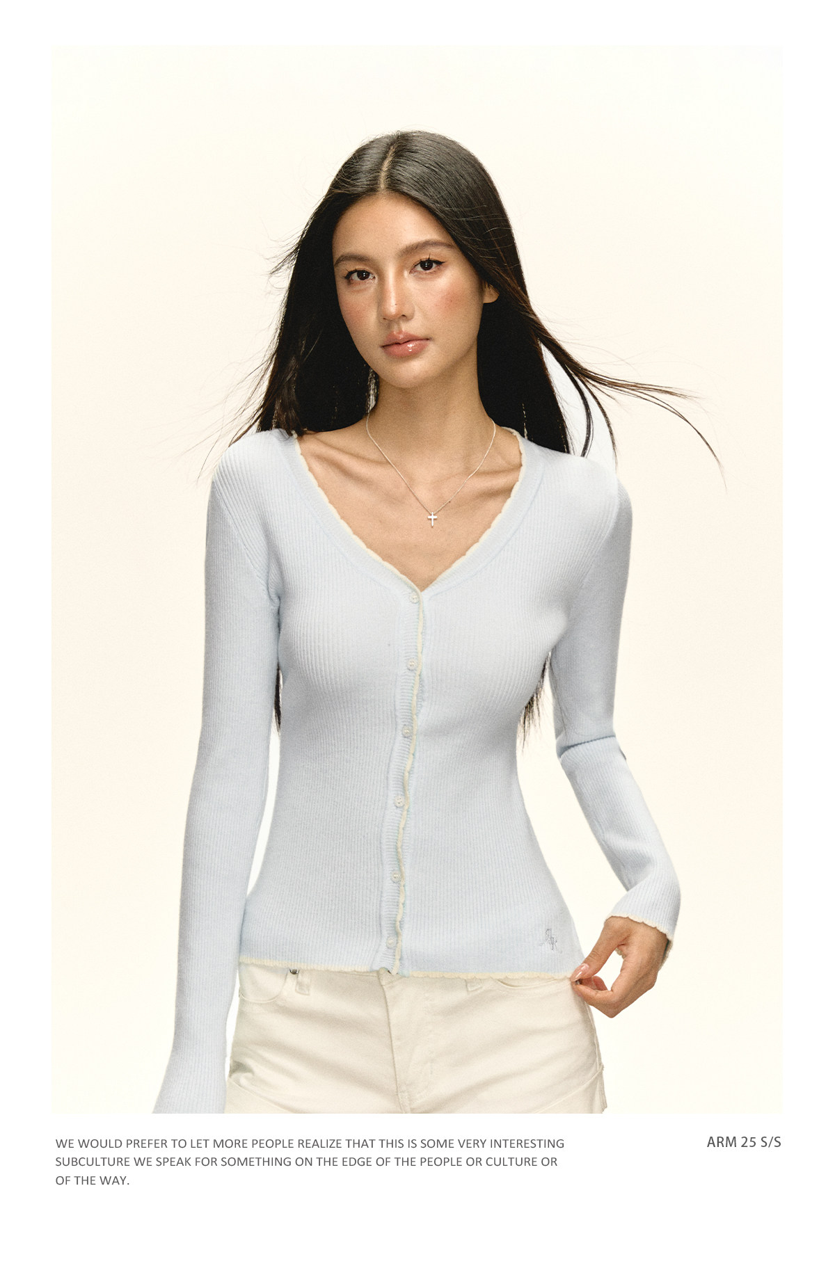 Ariseism 美式复古纯色薄款针织开衫女2025春季新款百搭修身上衣