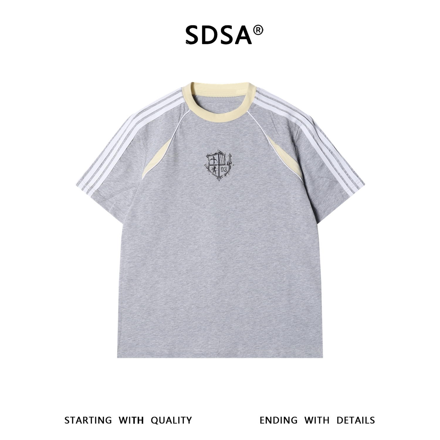 SDSA男装2026新款高贵轻奢复古宽松拼接条纹印花圆领短袖T恤百搭