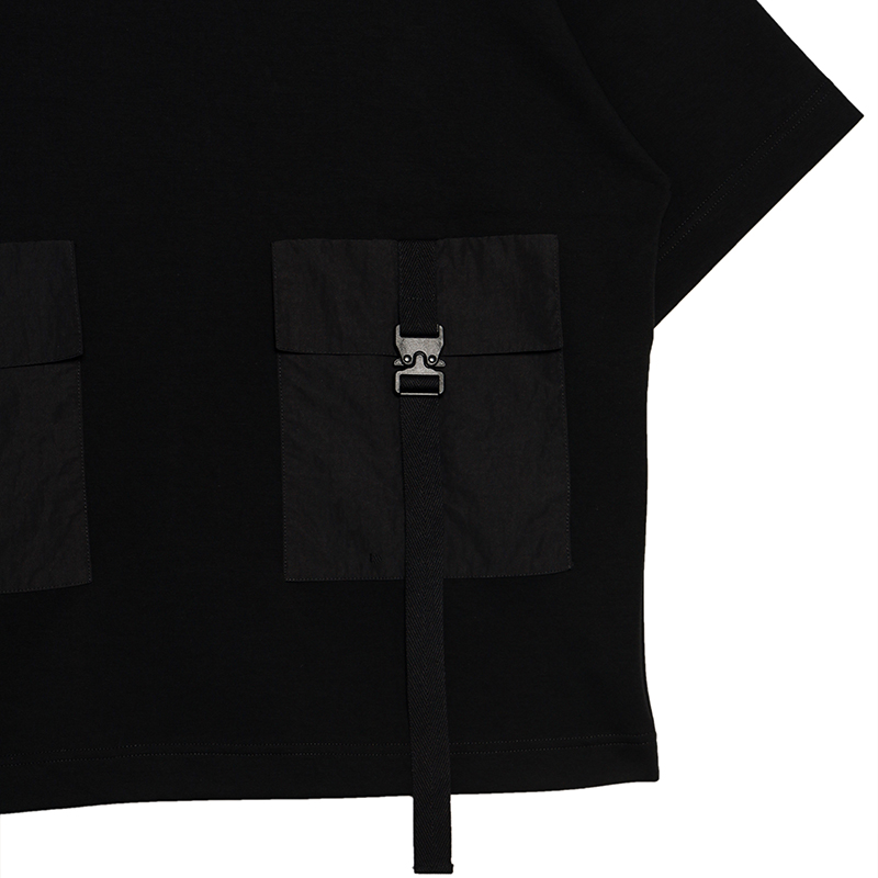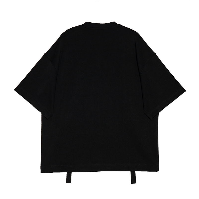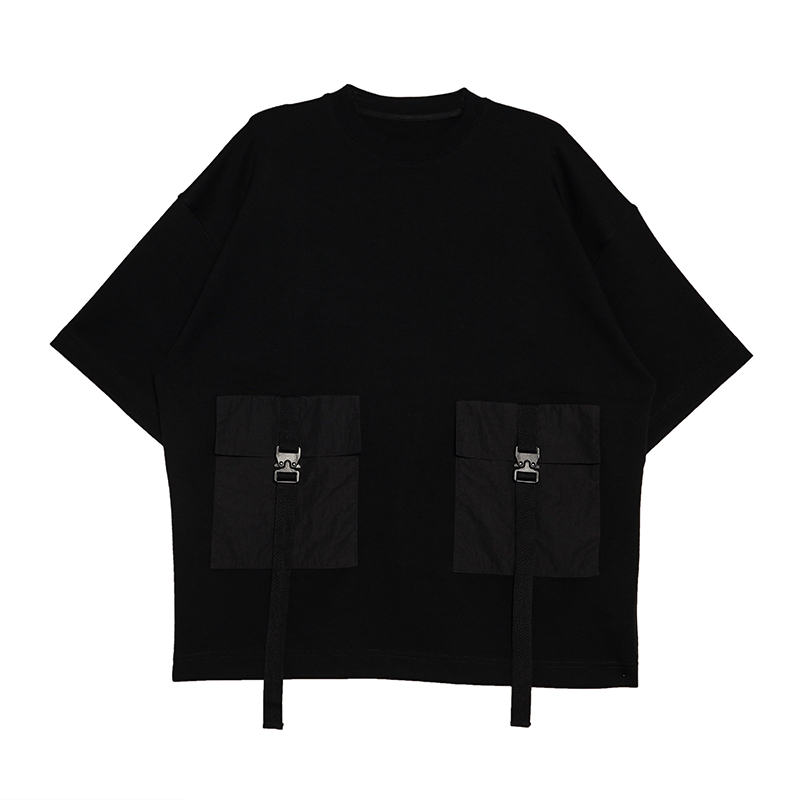 WZ39春夏新款纯色短袖飘绳口袋设计日常休闲宽松潮流百搭T恤