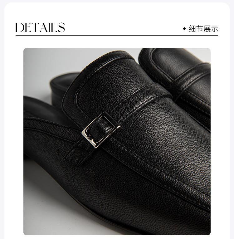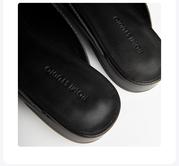 ROMI STUDIO【高定系列】复古法式 经典优雅方头黑色穆勒拖S3196